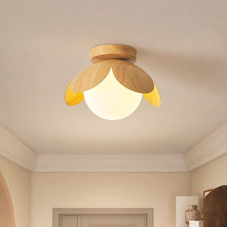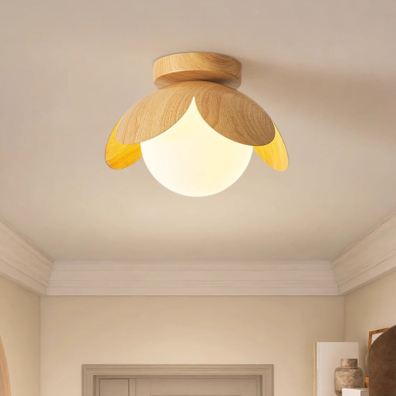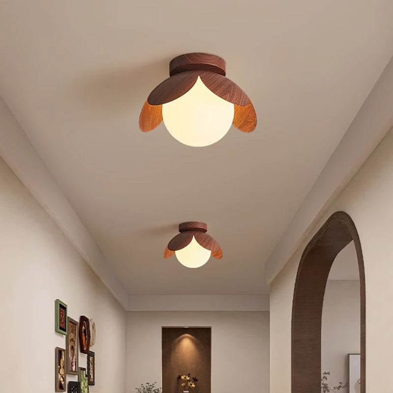 Traditional Japanese Globe Iron Glass 1-Light Semi-Flush Mount Ceiling Light For Living Room