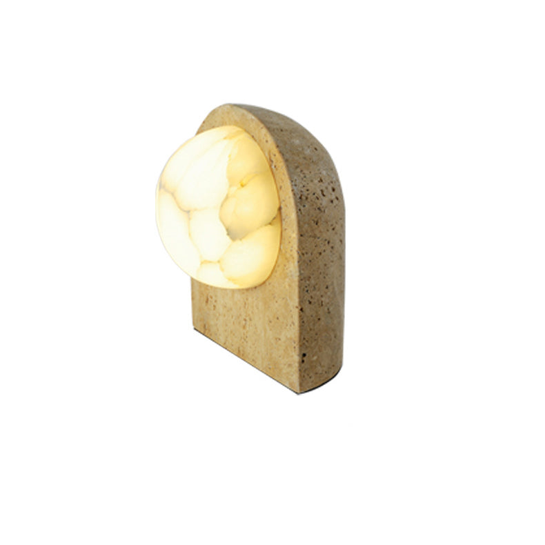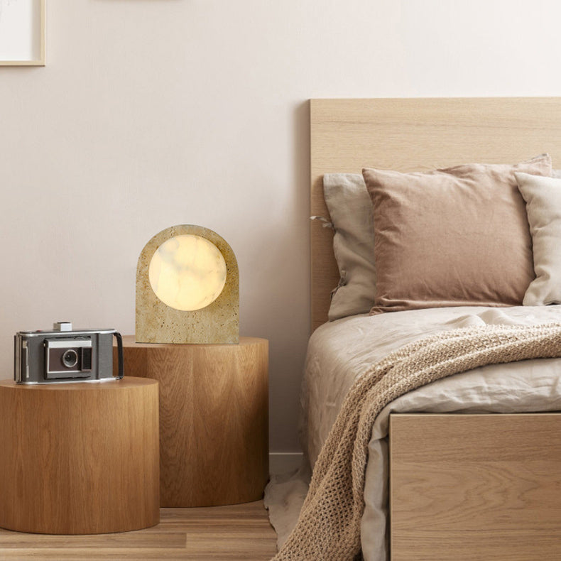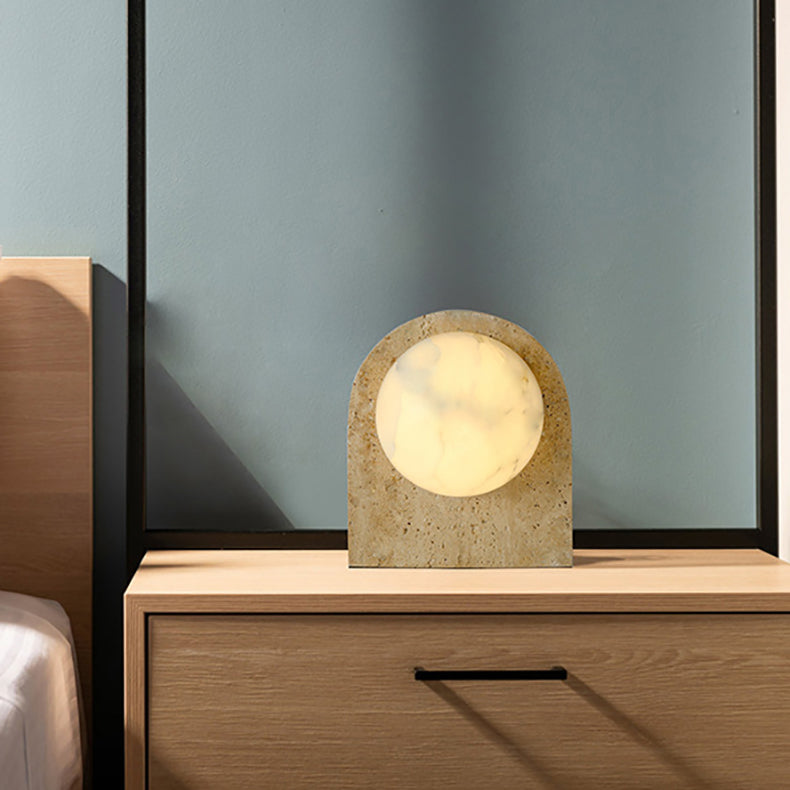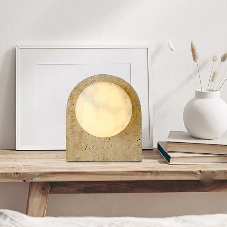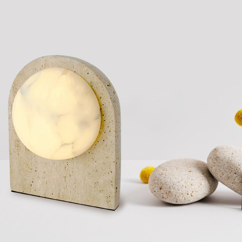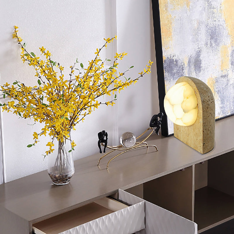 Traditional Japanese Oval Stone 1-Light Table Lamp For Living Room