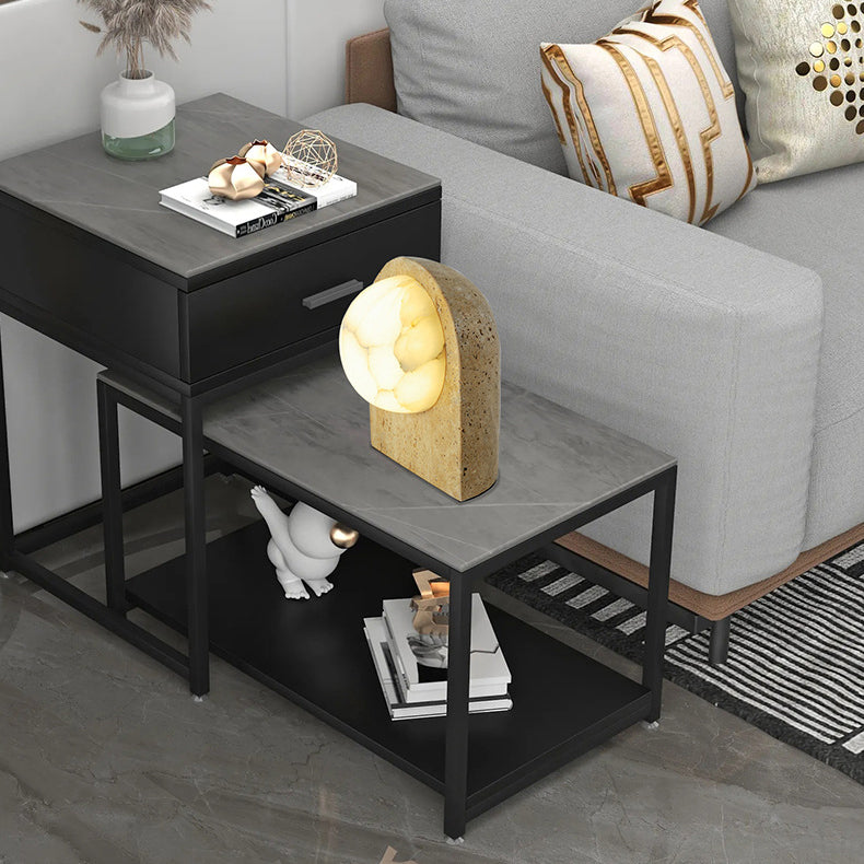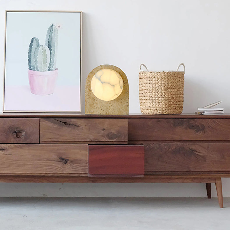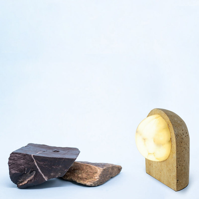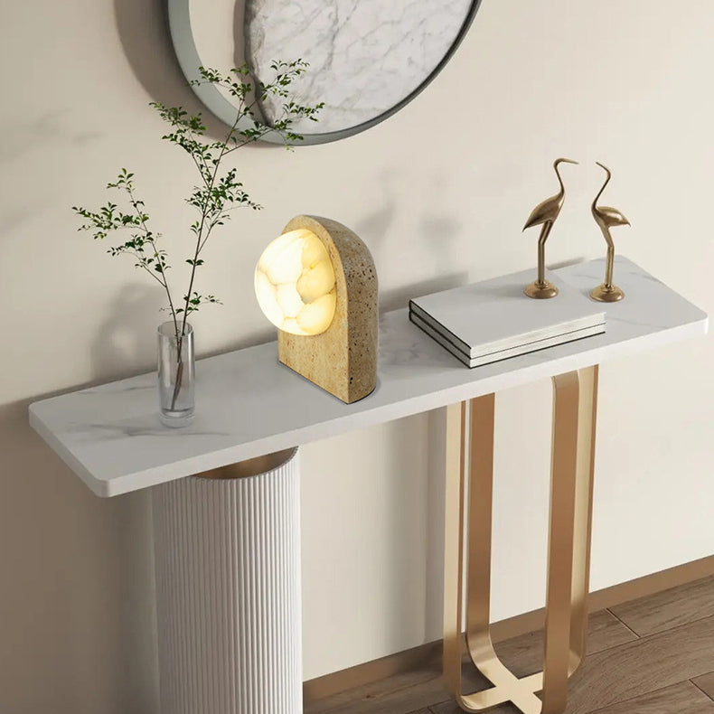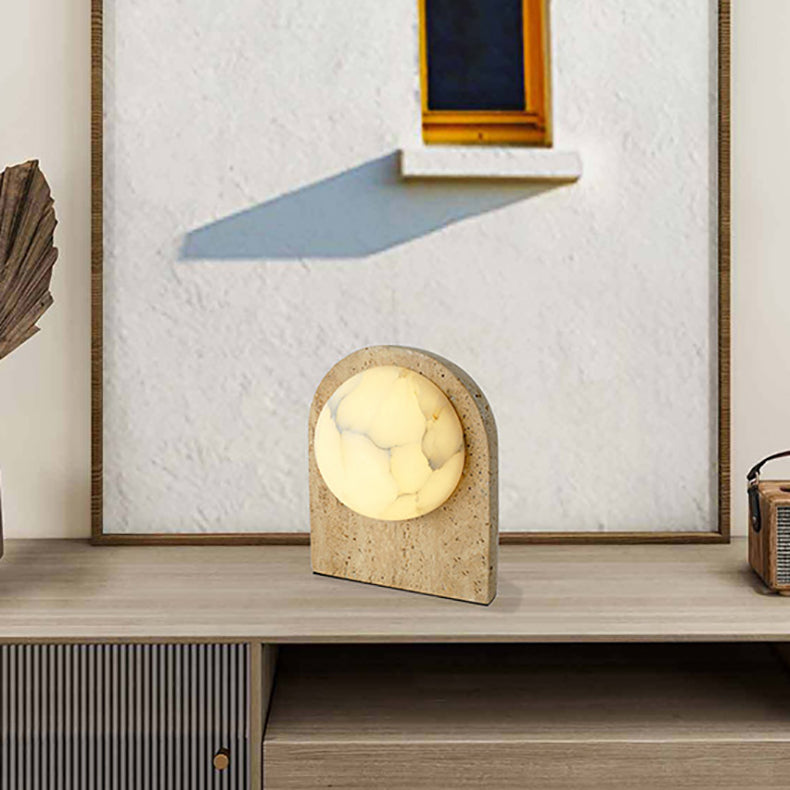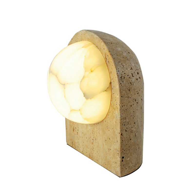 Traditional Japanese Oval Stone 1-Light Table Lamp For Living Room