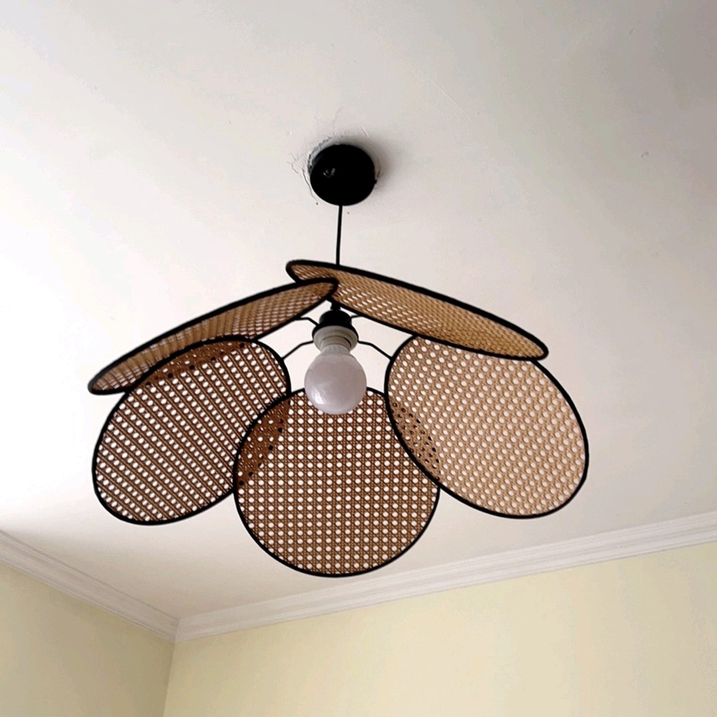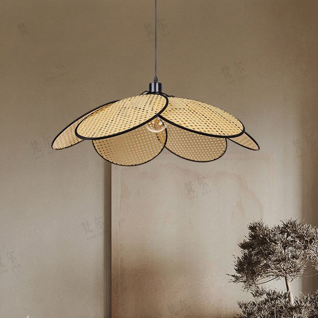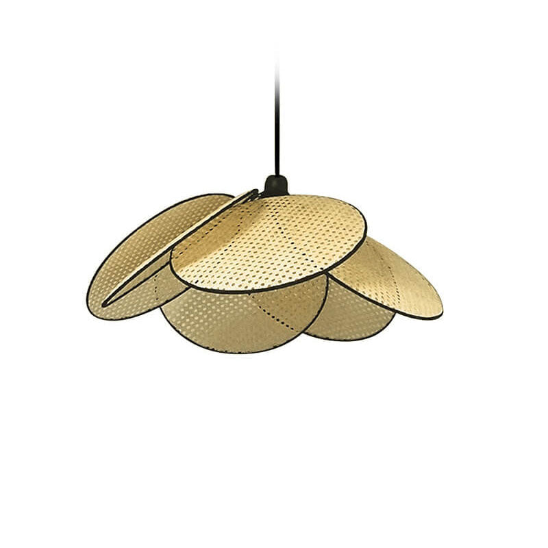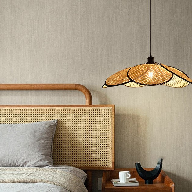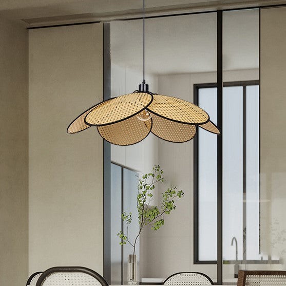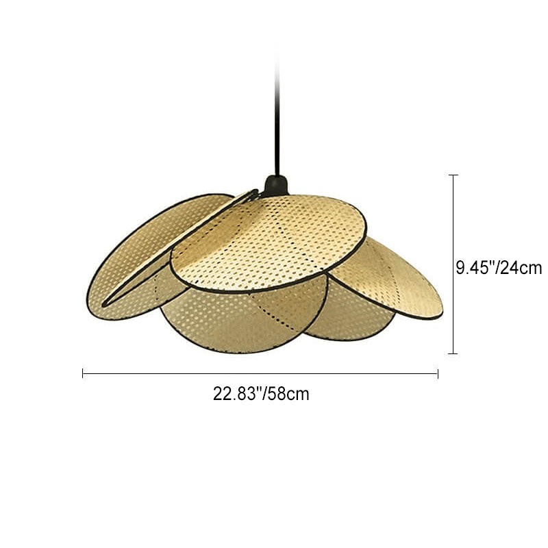 Traditional Japanese Rattan Flower Shape 1-Light Pendant Light For Living Room