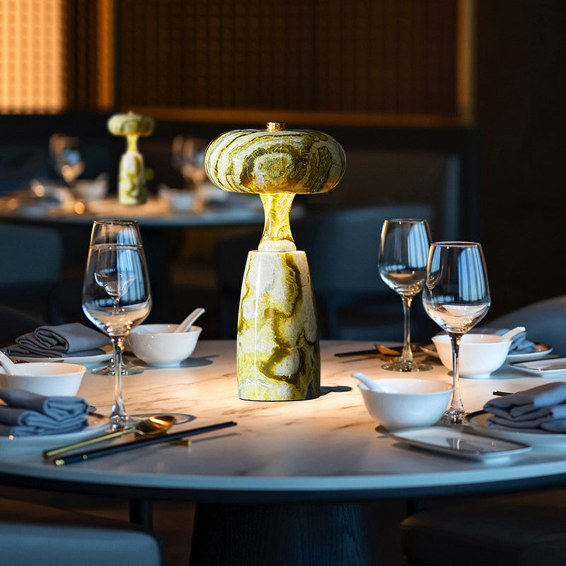 Traditional Japanese Rechargeable Marble Pattern Acrylic Column LED Table Lamp For Bedside