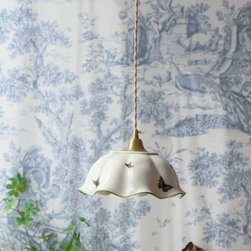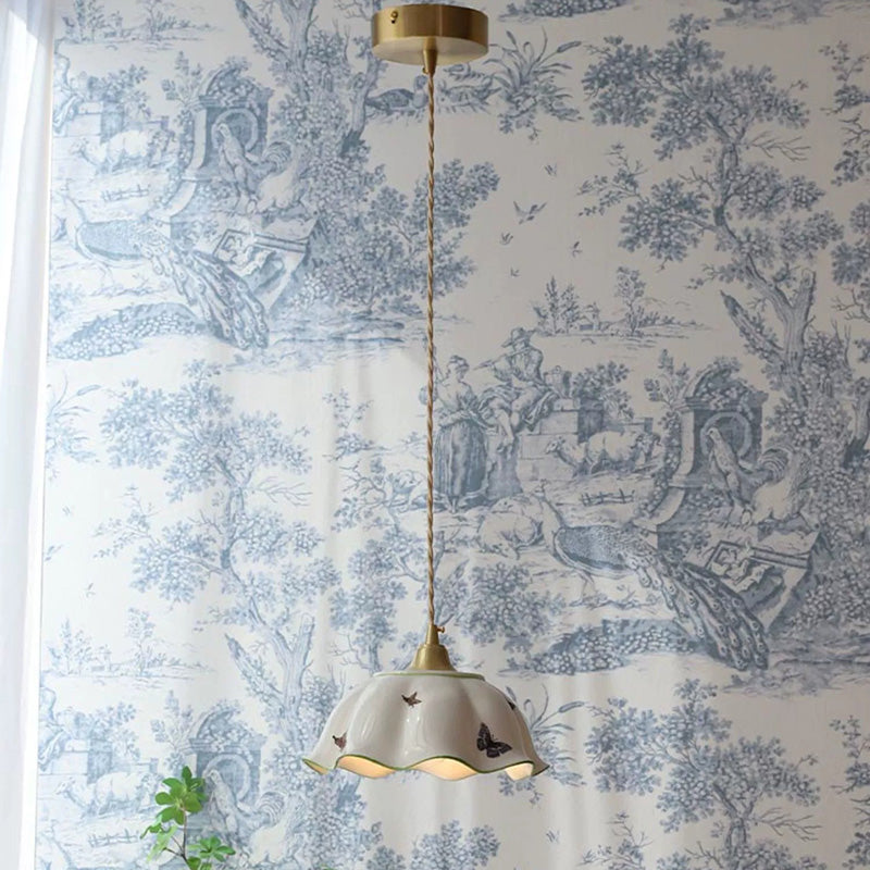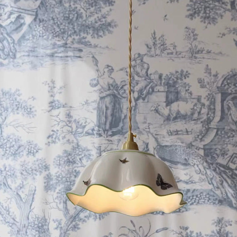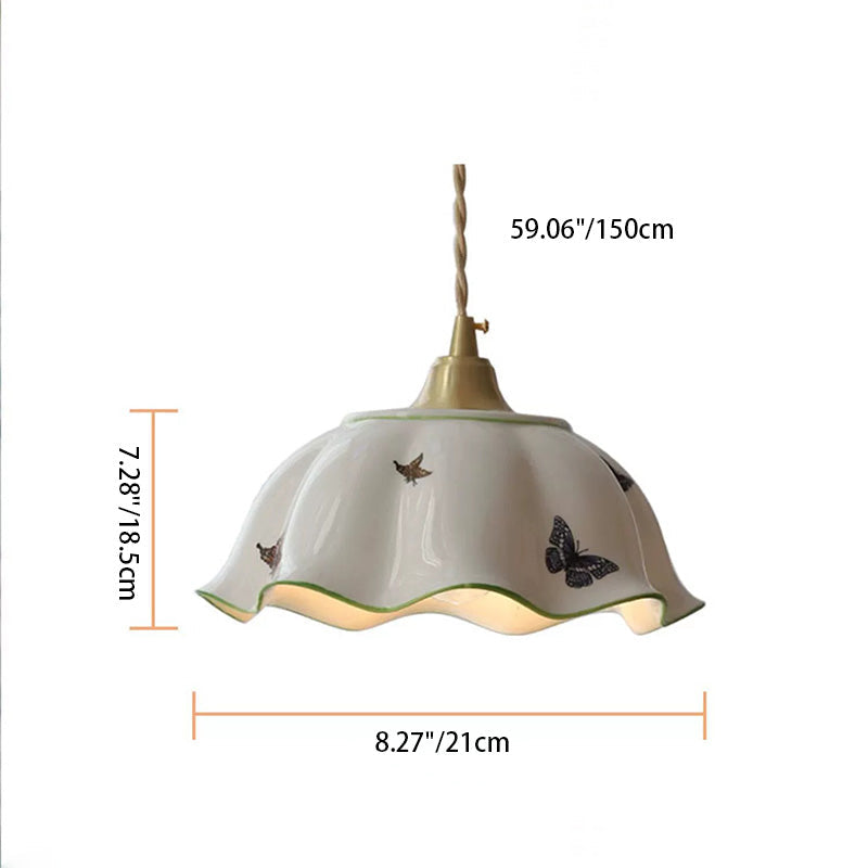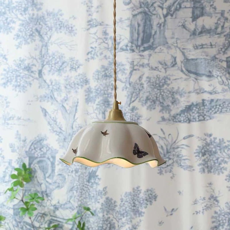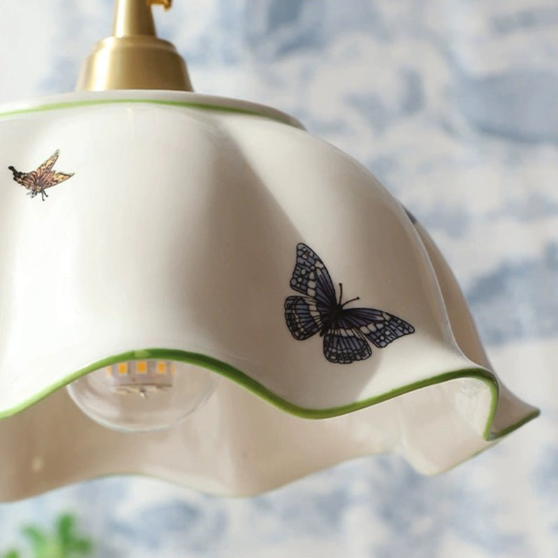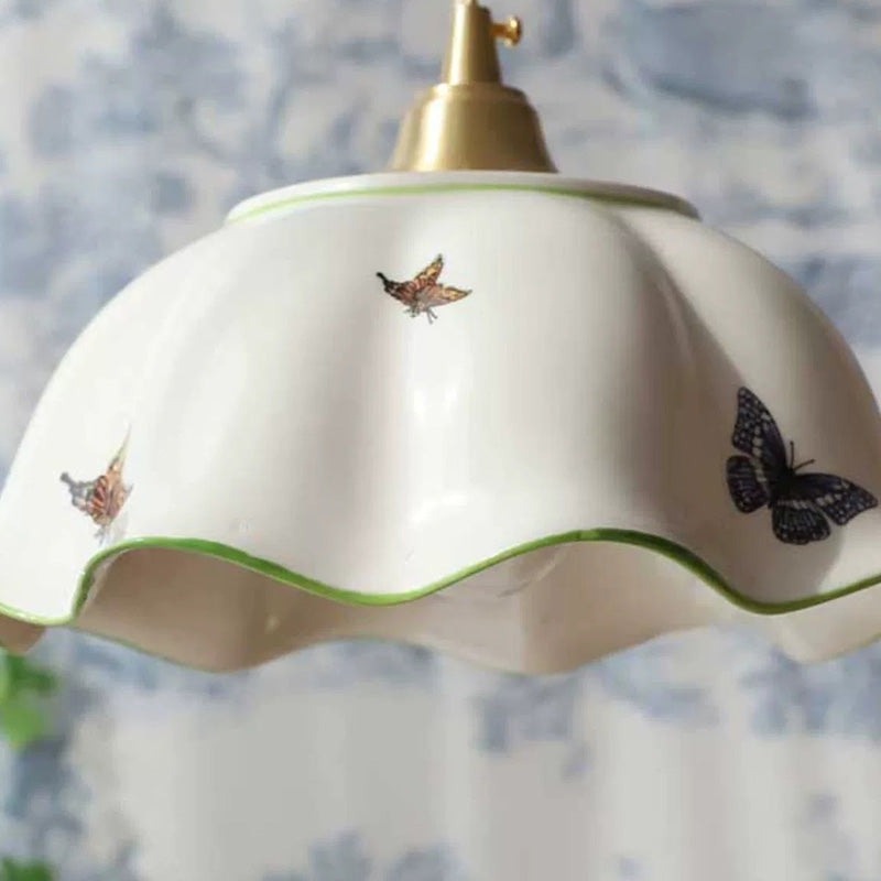 Traditional Japanese Skirt Butterfly Ceramic Copper 1-Light Pendant Light For Living Room