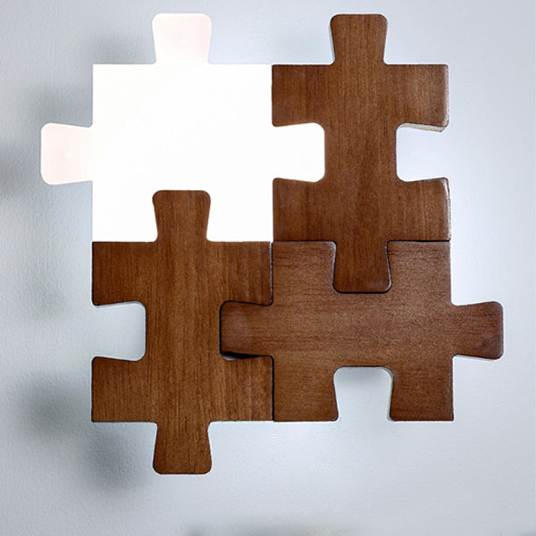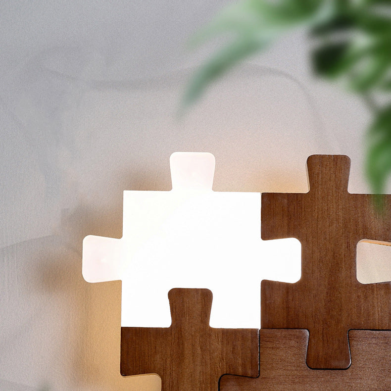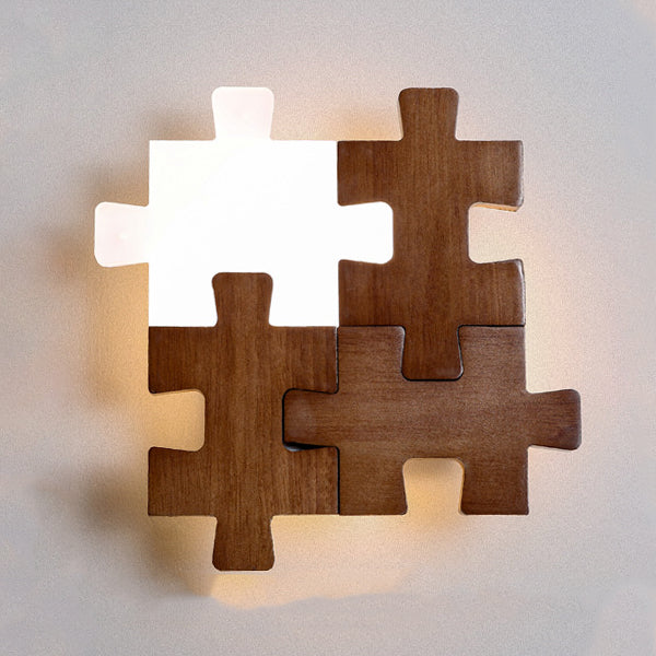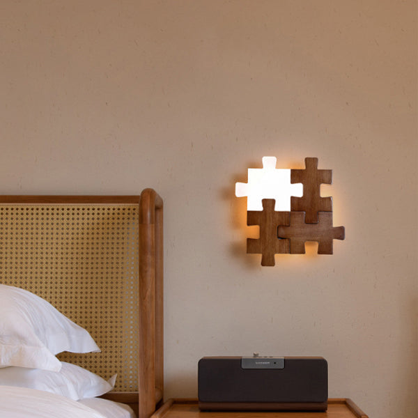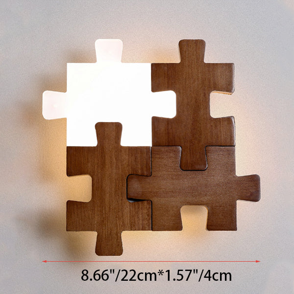 Traditional Japanese Solid Wood Acrylic Block Puzzle LED Wall Sconce Lamp For Living Room