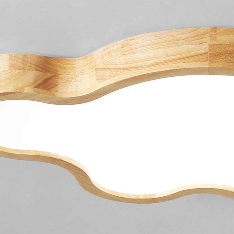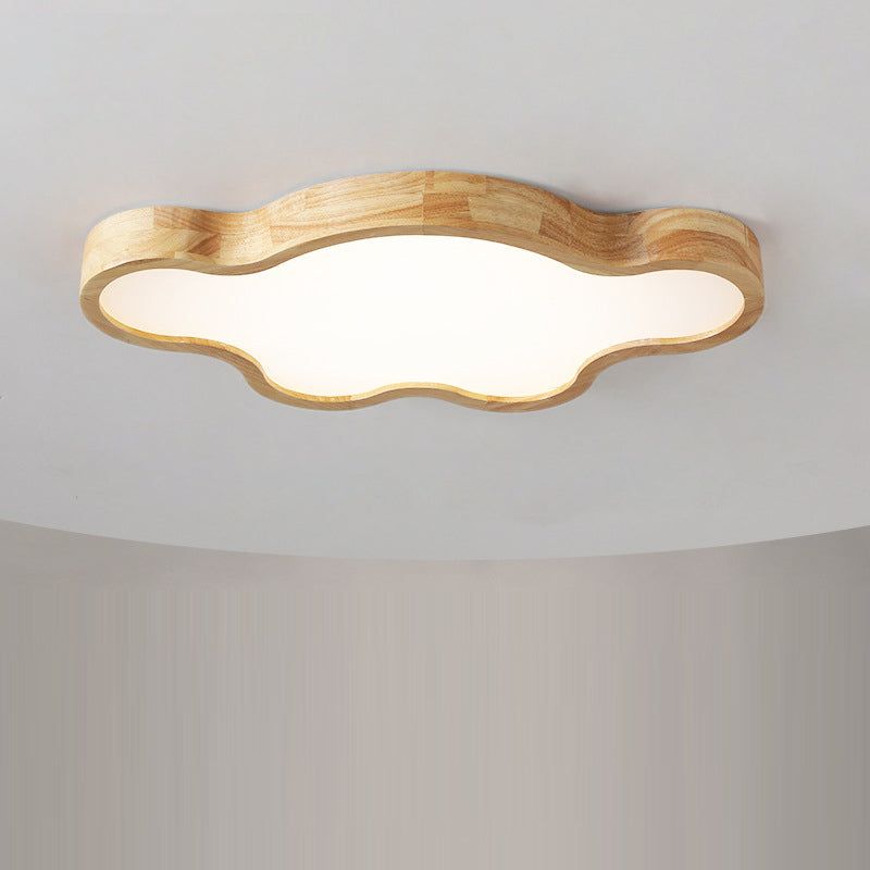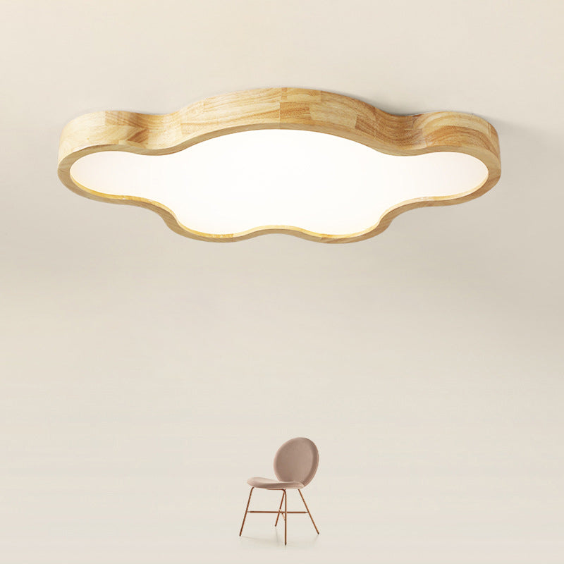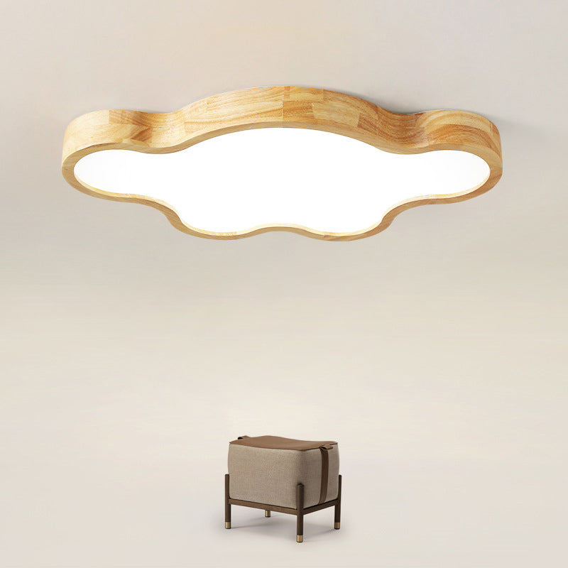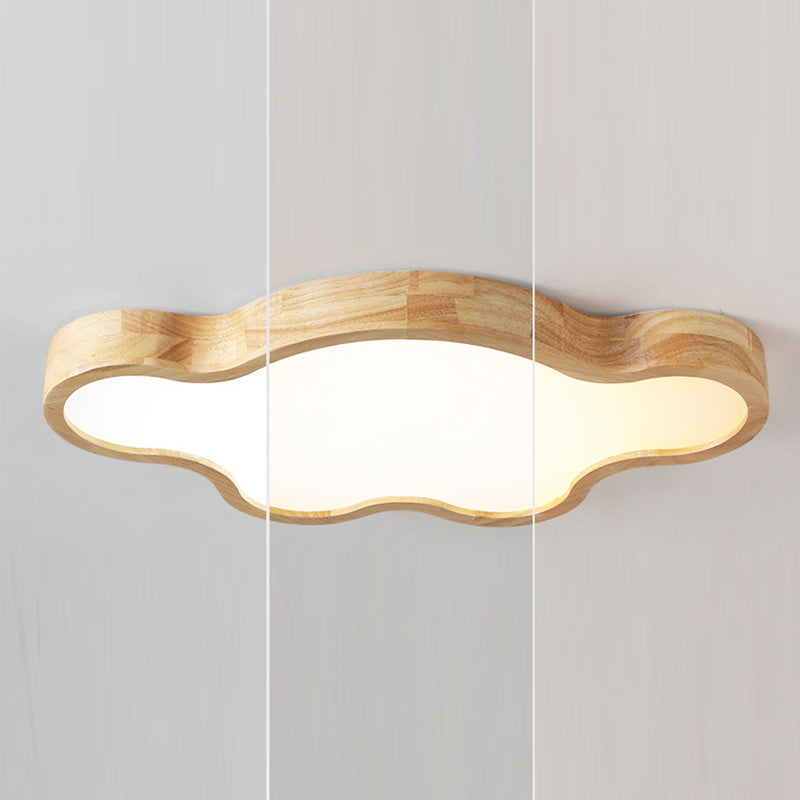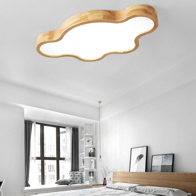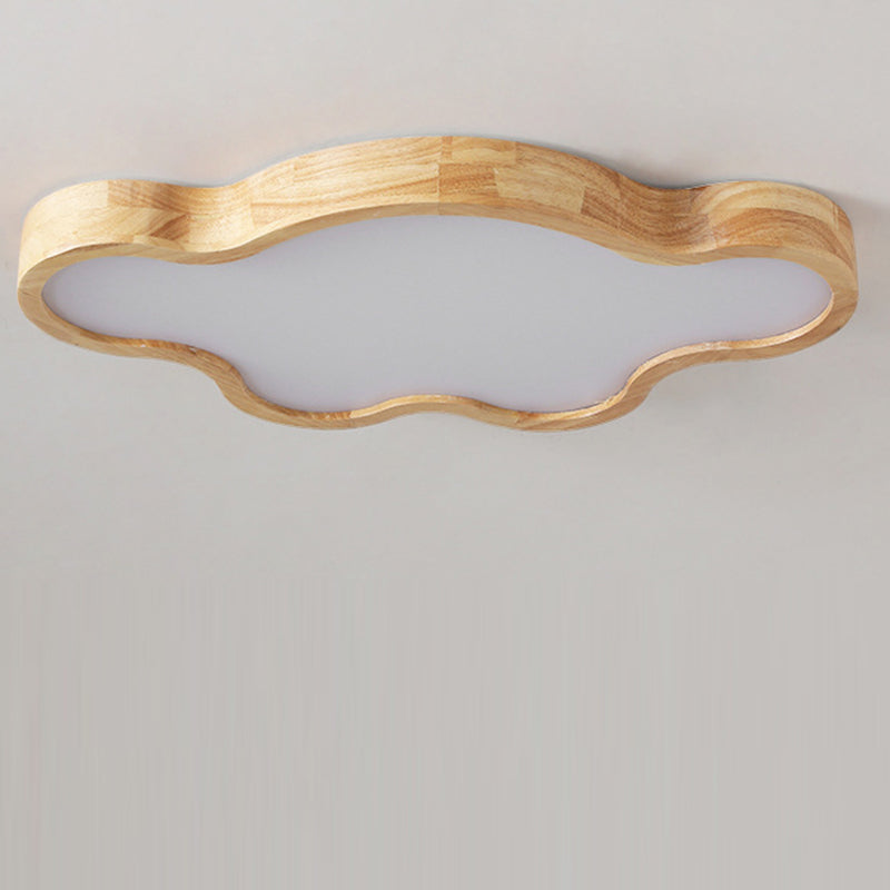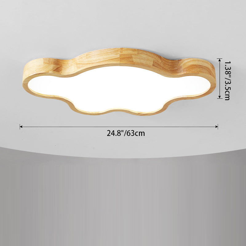 Traditional Japanese Solid Wood Acrylic Cloud Shade LED Flush Mount Ceiling Light For Living Room