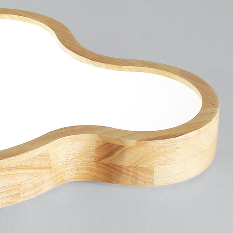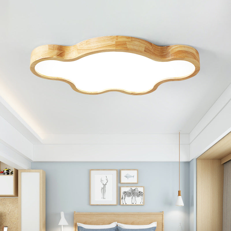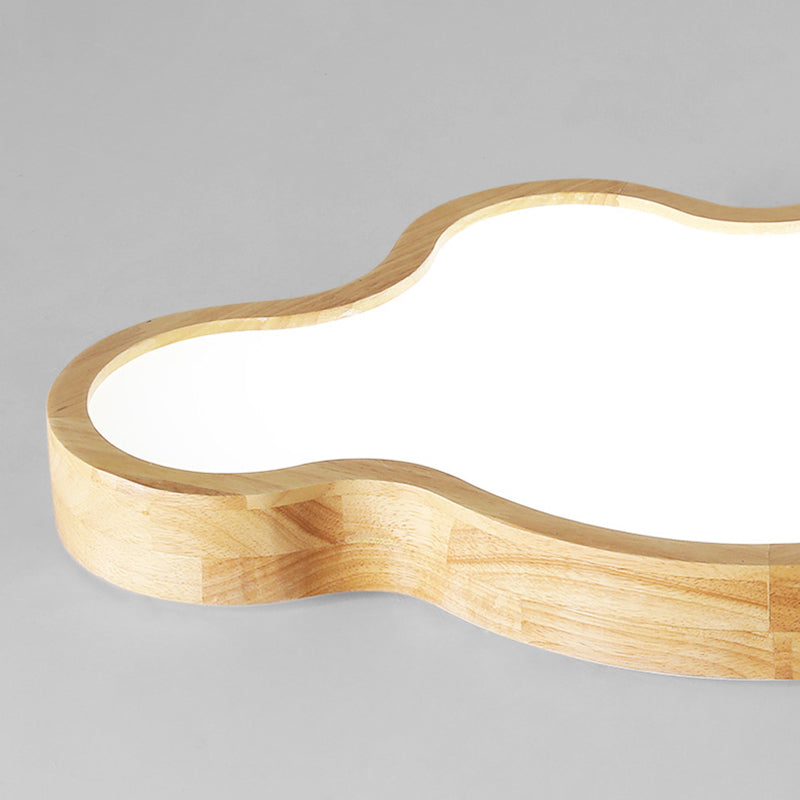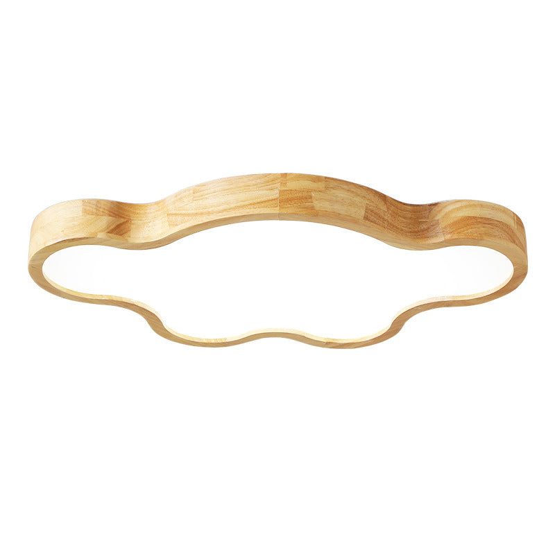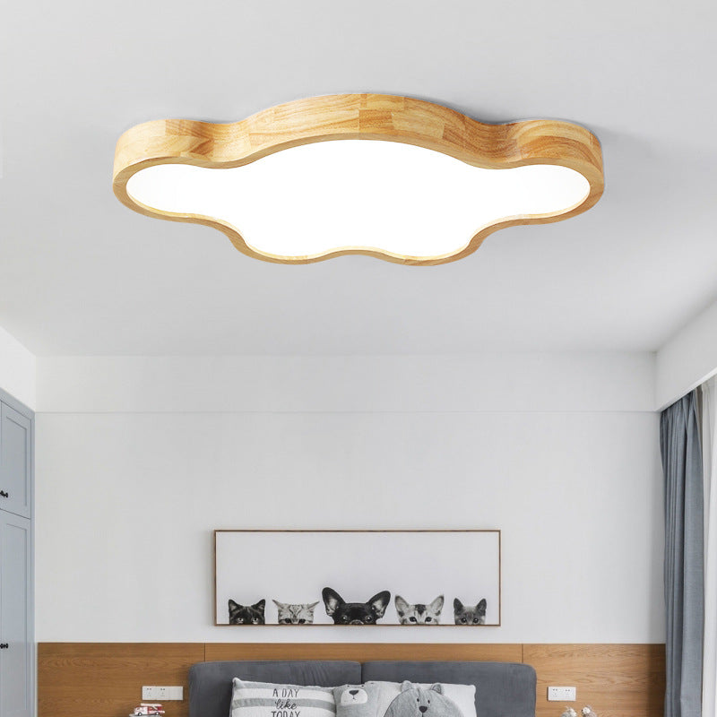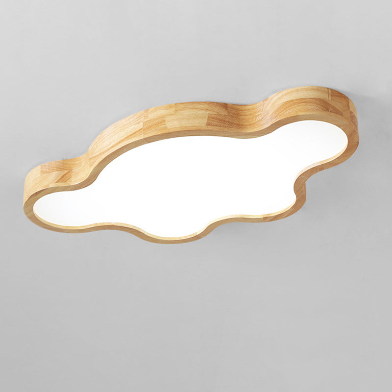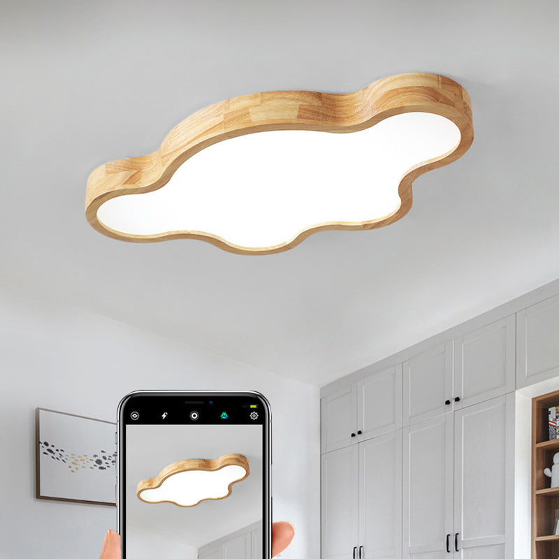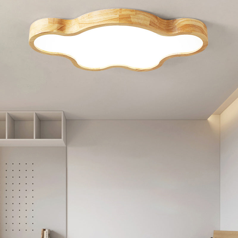 Traditional Japanese Solid Wood Acrylic Cloud Shade LED Flush Mount Ceiling Light For Living Room