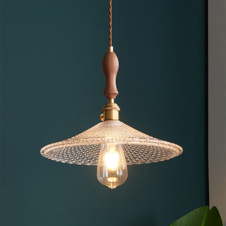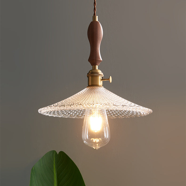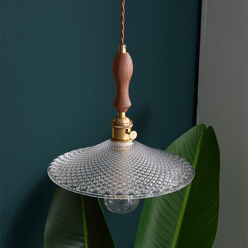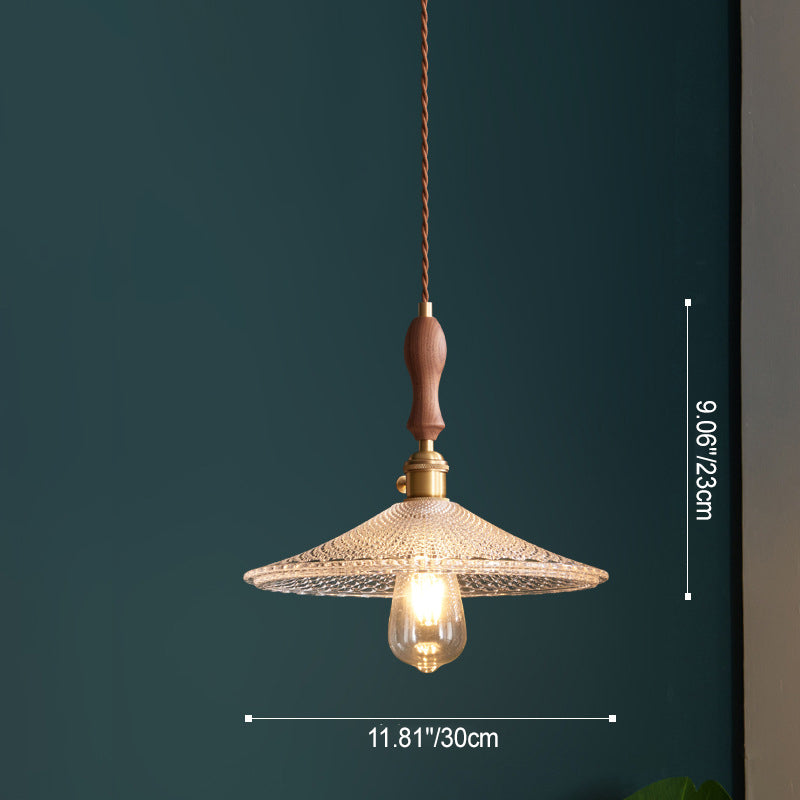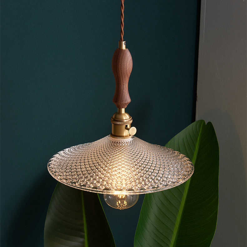 Traditional Japanese Solid Wood Glass Shade Round 1-Light Pendant Light For Bedroom