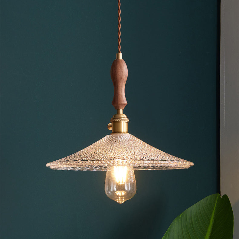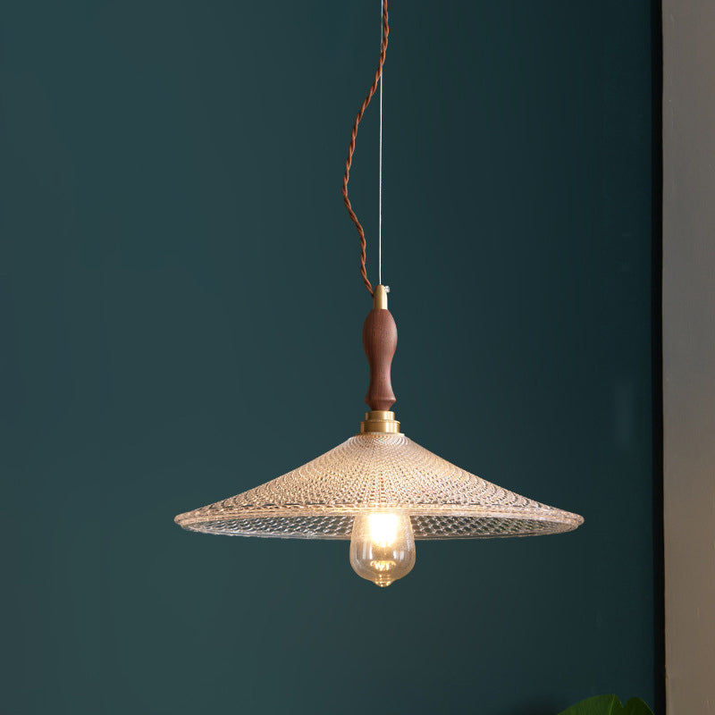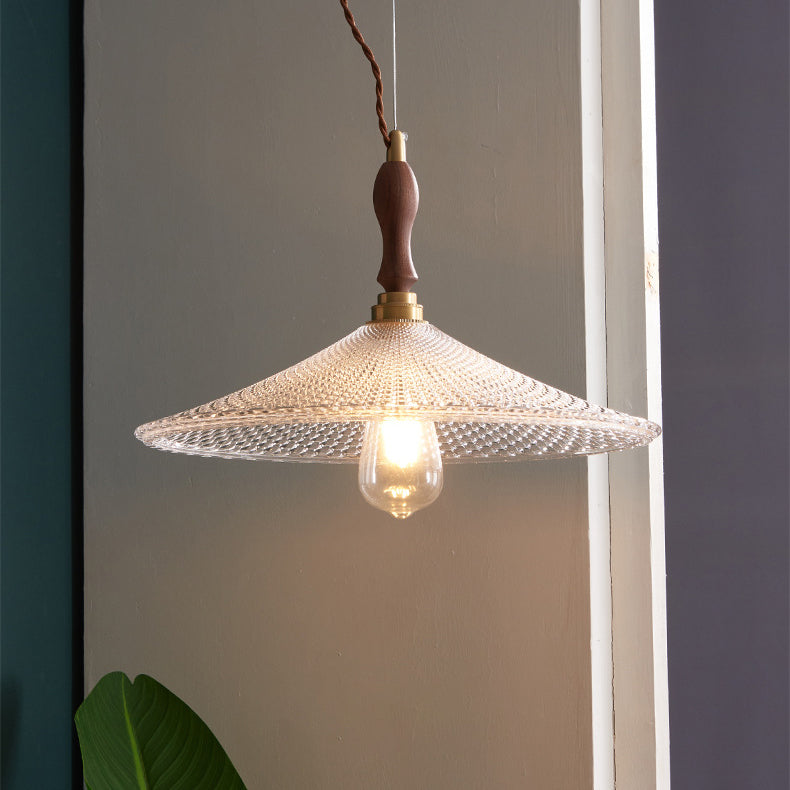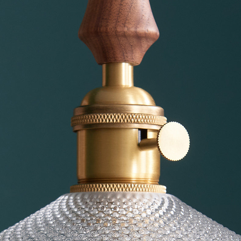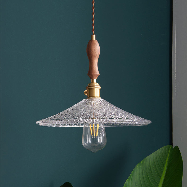 Traditional Japanese Solid Wood Glass Shade Round 1-Light Pendant Light For Bedroom