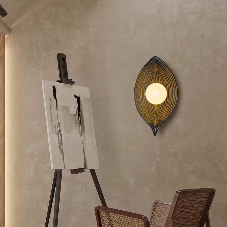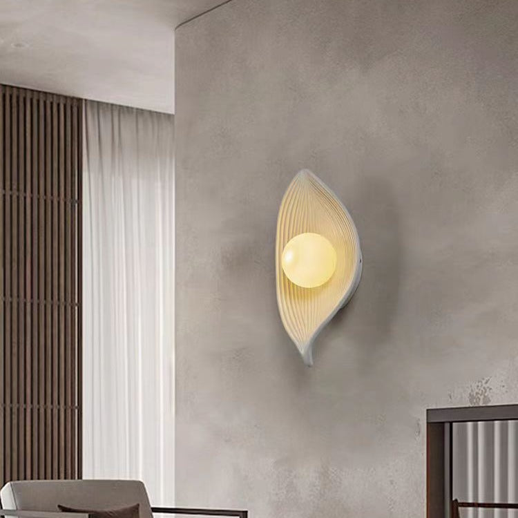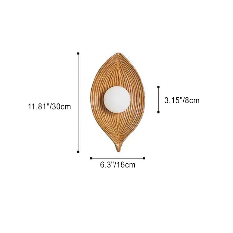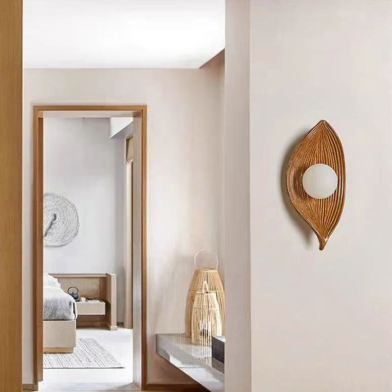 Traditional Japanese Textured Leaf Resin Plastic 1-Light Wall Sconce Lamp For Bedroom