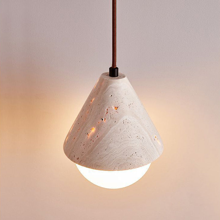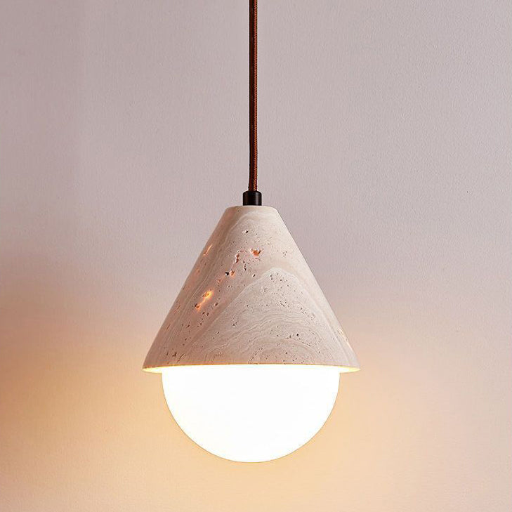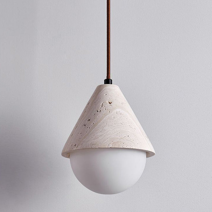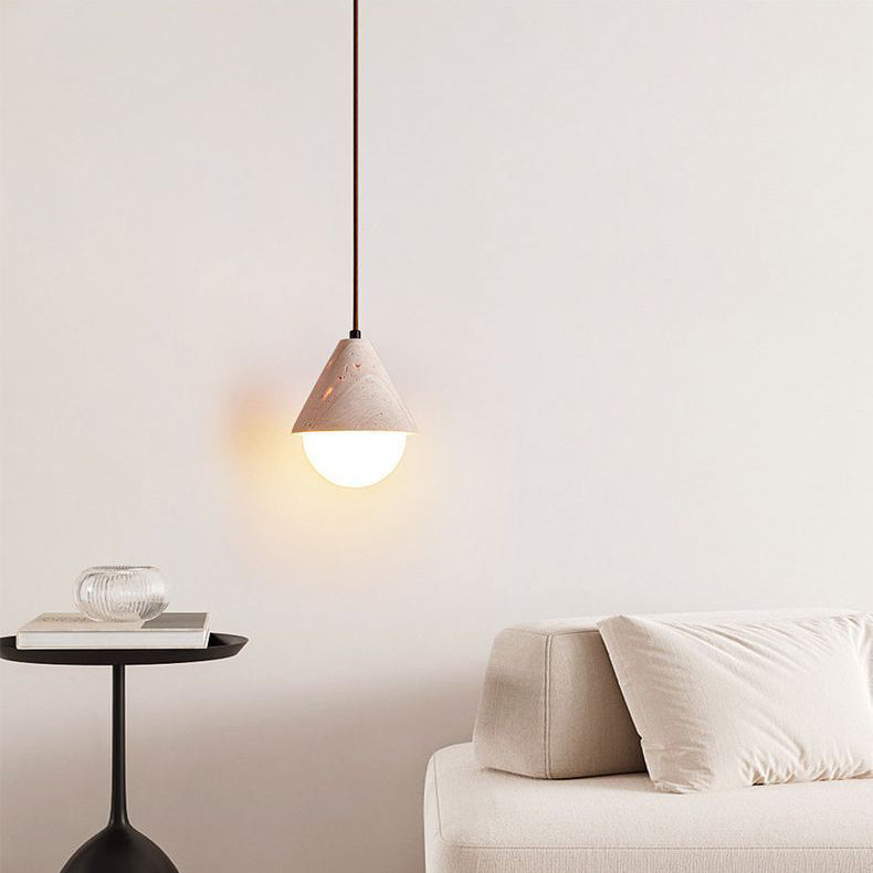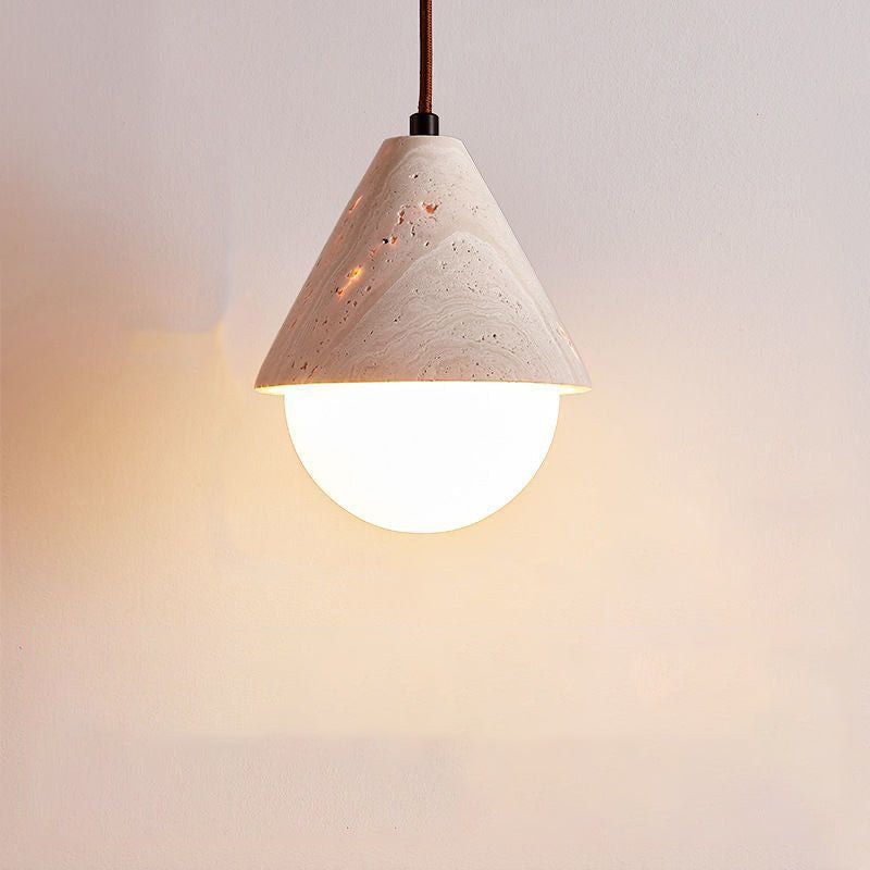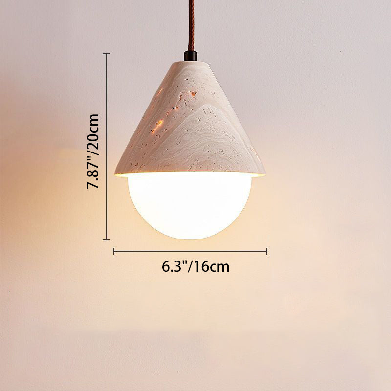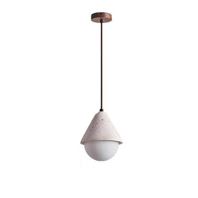 Traditional Japanese Travertine Conic Ball 1-Light Pendant Light For Dining Room