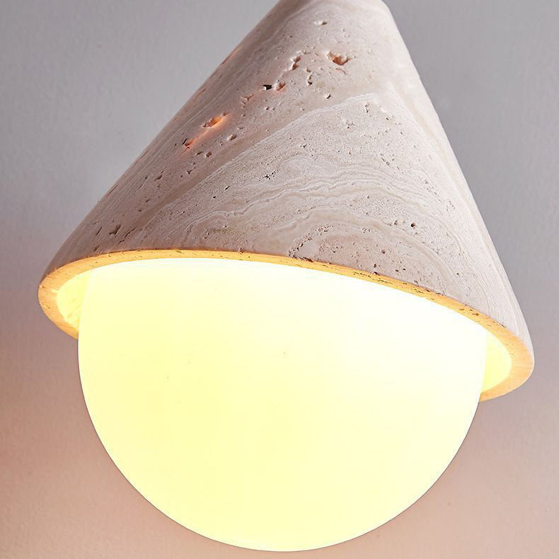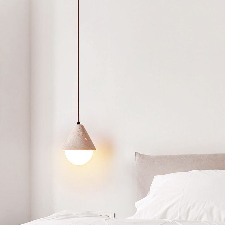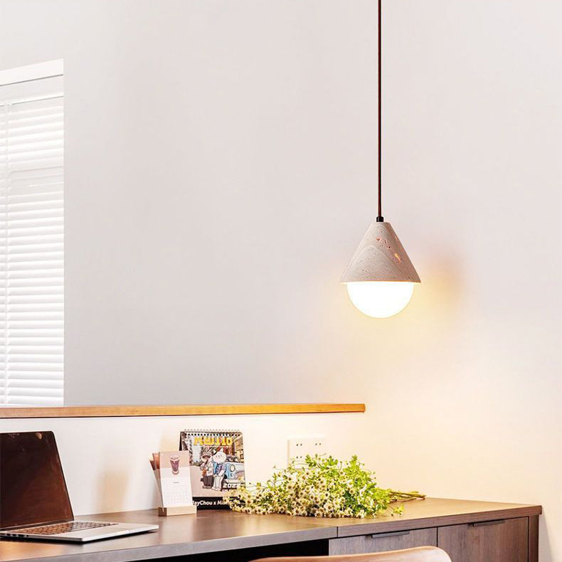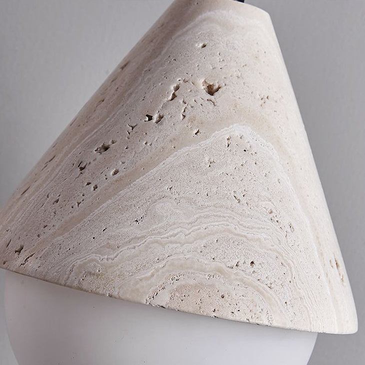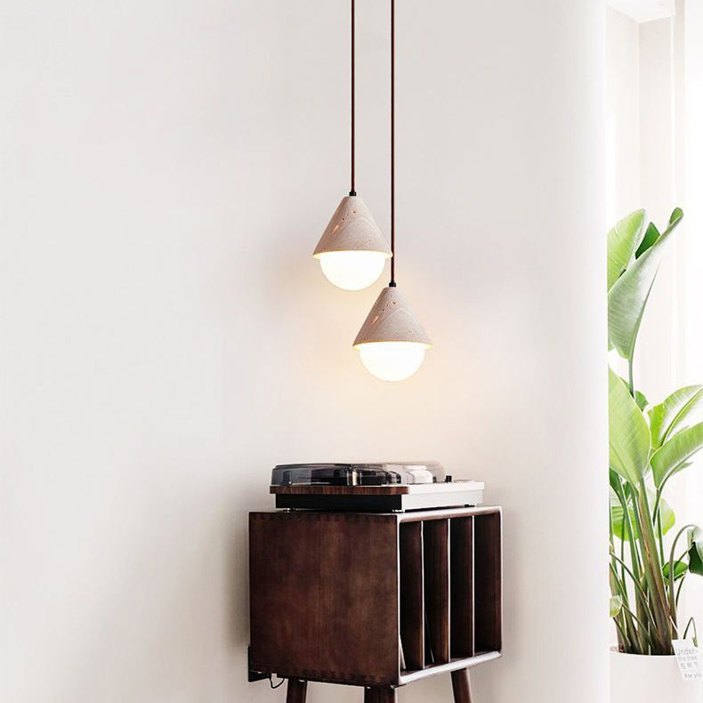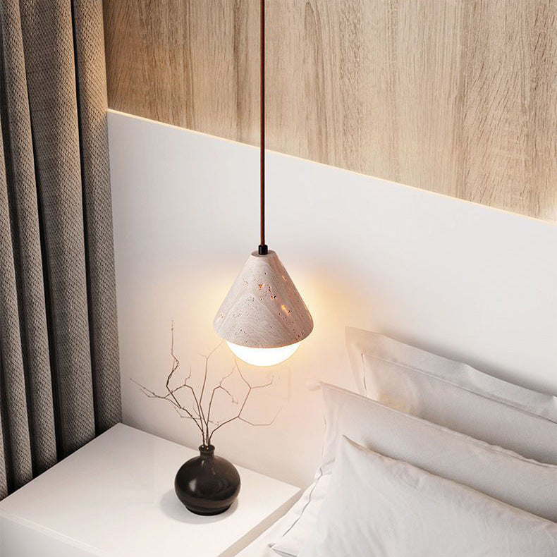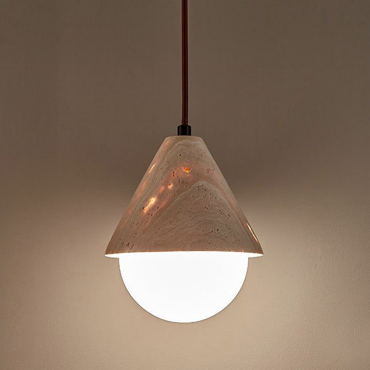 Traditional Japanese Travertine Conic Ball 1-Light Pendant Light For Dining Room