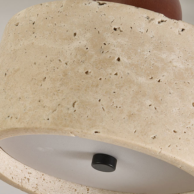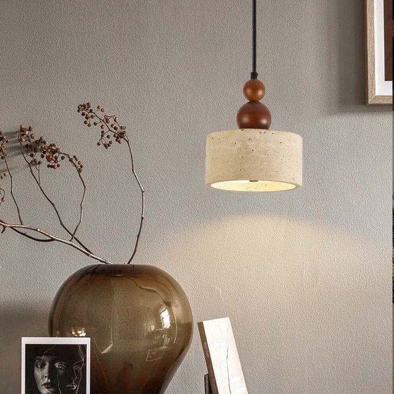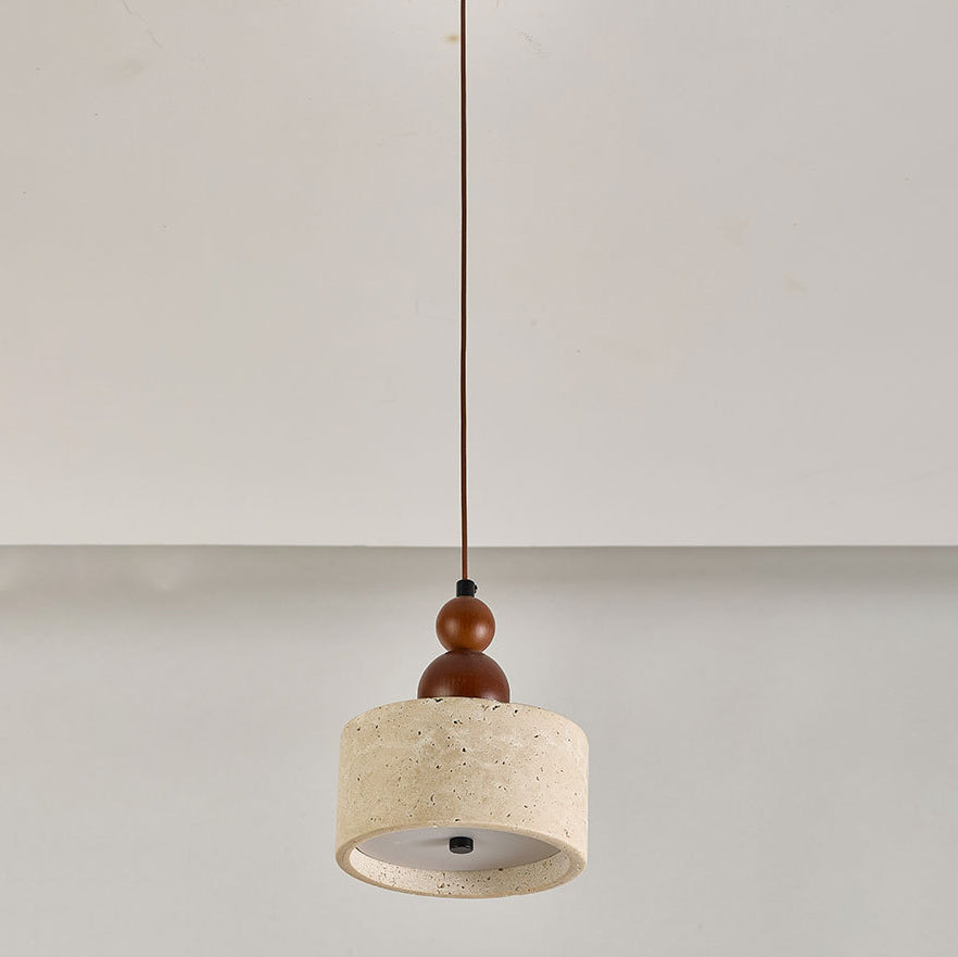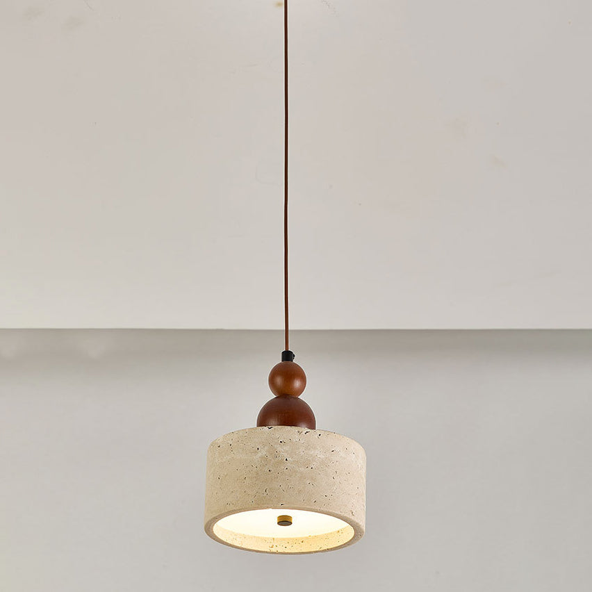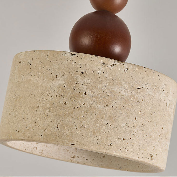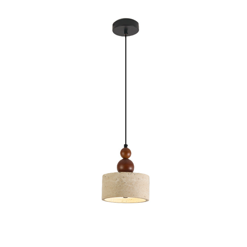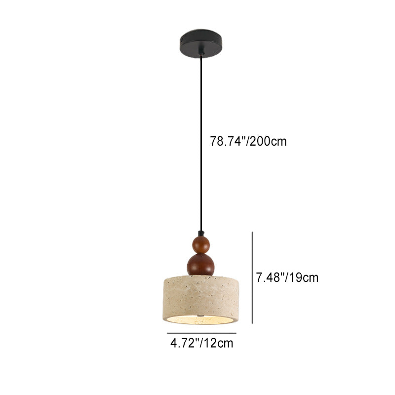 Traditional Japanese Travertine Cylinder Shade Solid Wood LED Pendant Light For Living Room