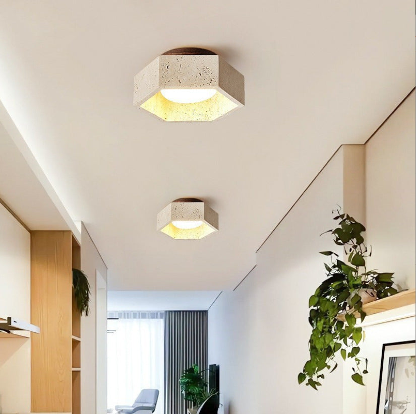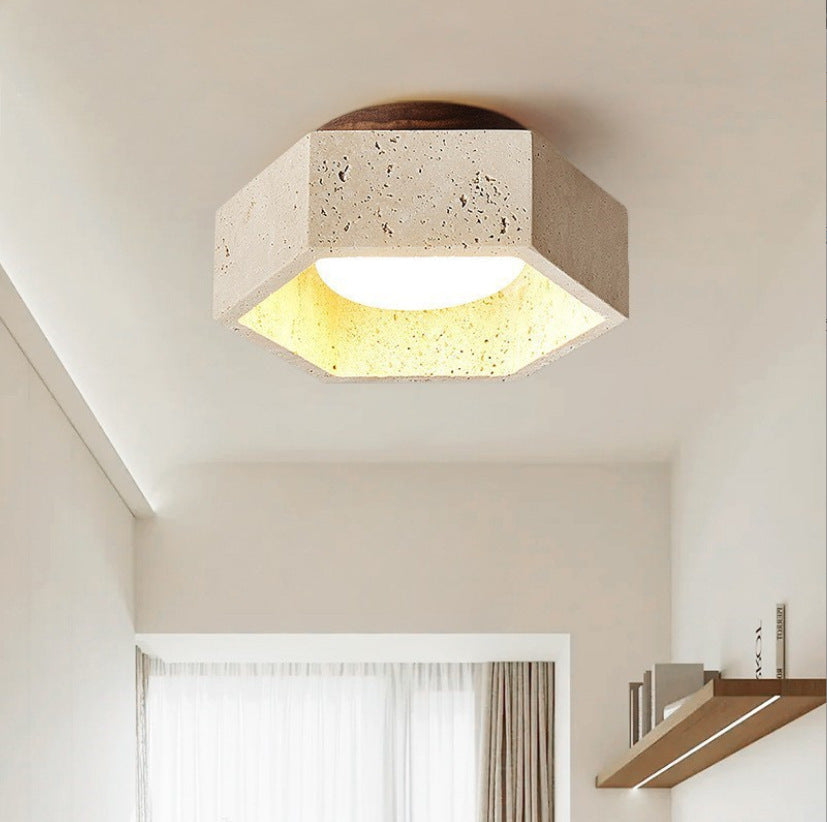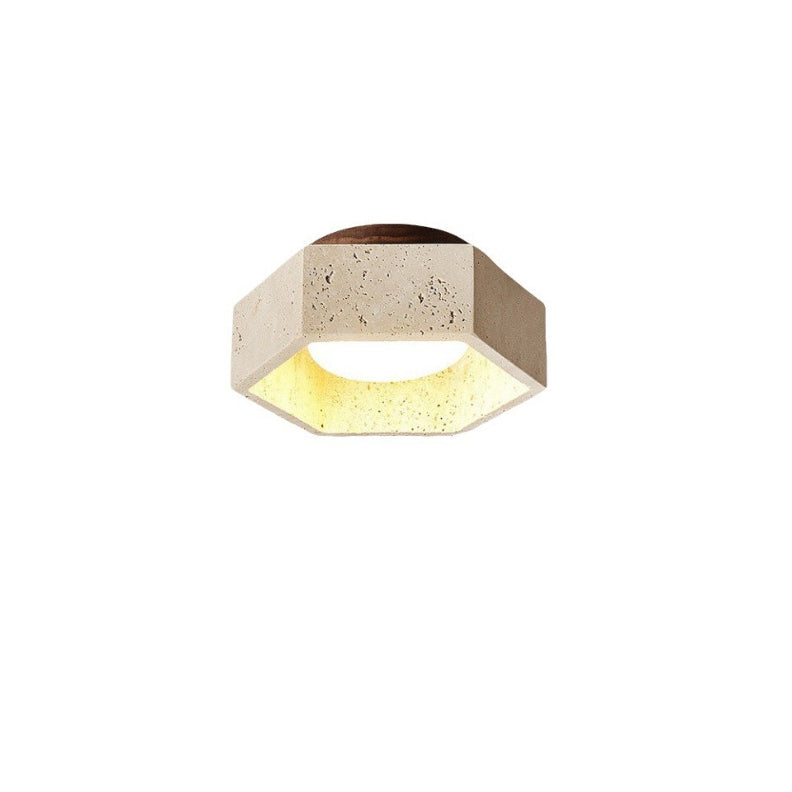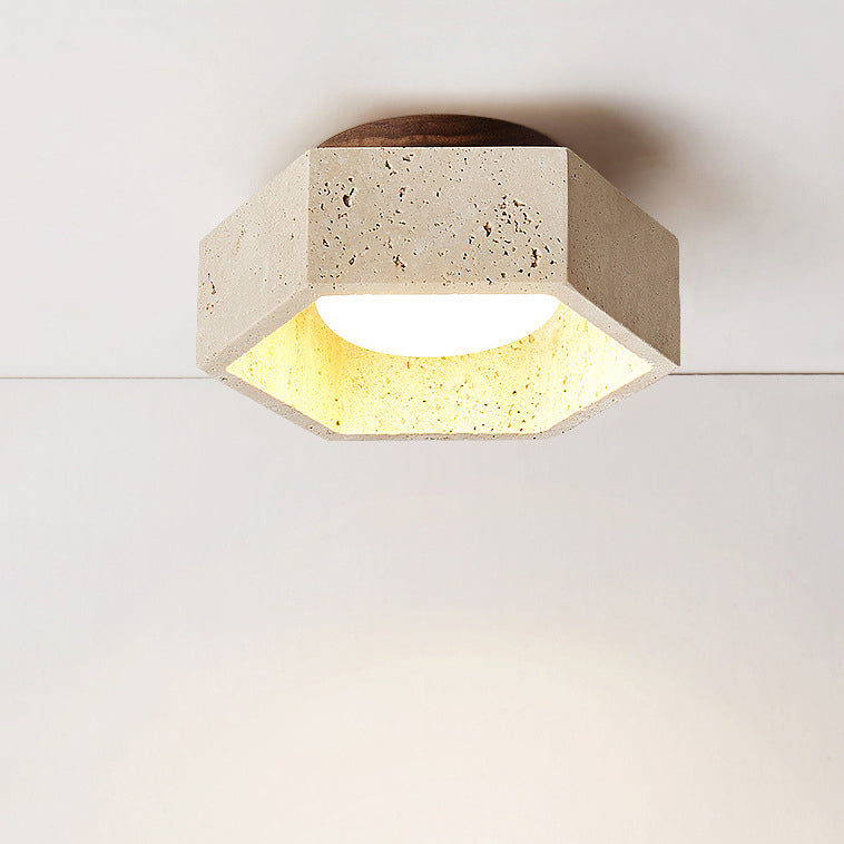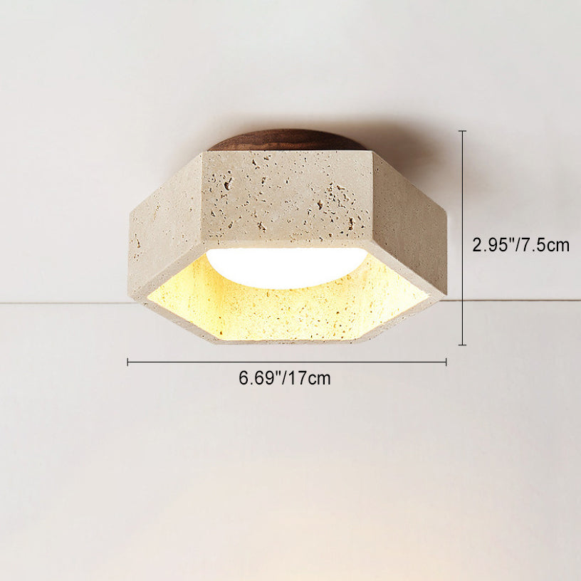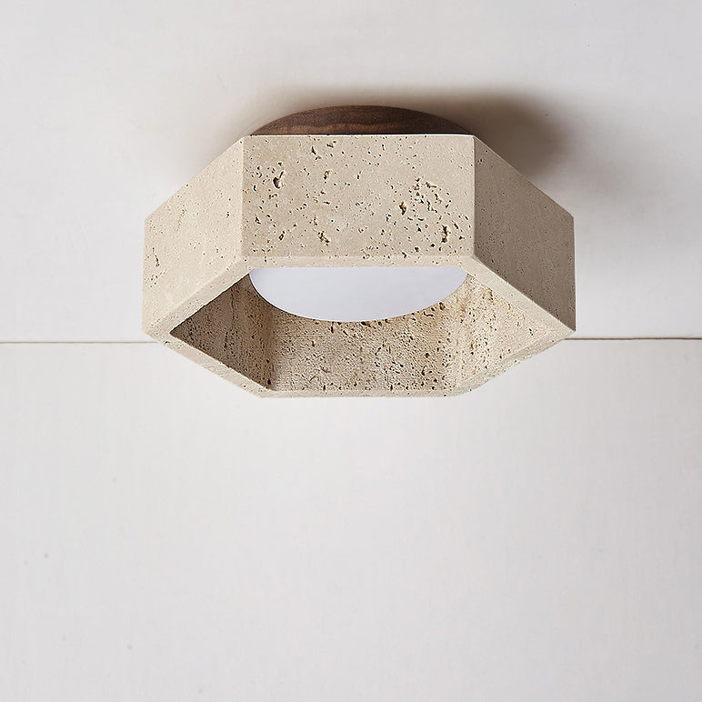 Traditional Japanese Travertine Hexagon 1-Light Semi-Flush Mount Ceiling Light For Hallway