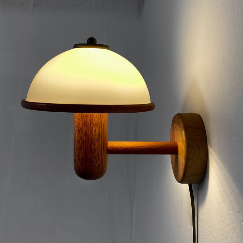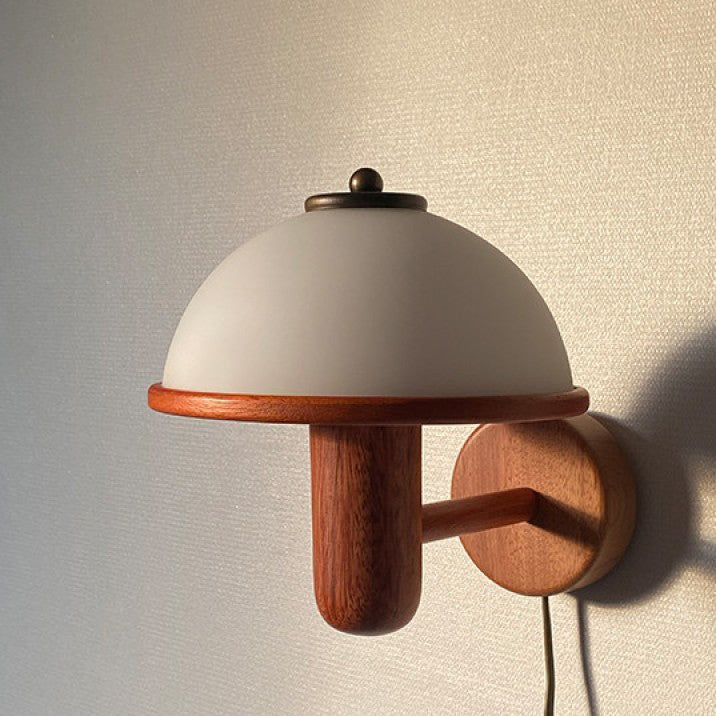 Traditional Japanese Wood Mushroom Design 1-Light Wall Sconce Lamp For Living Room