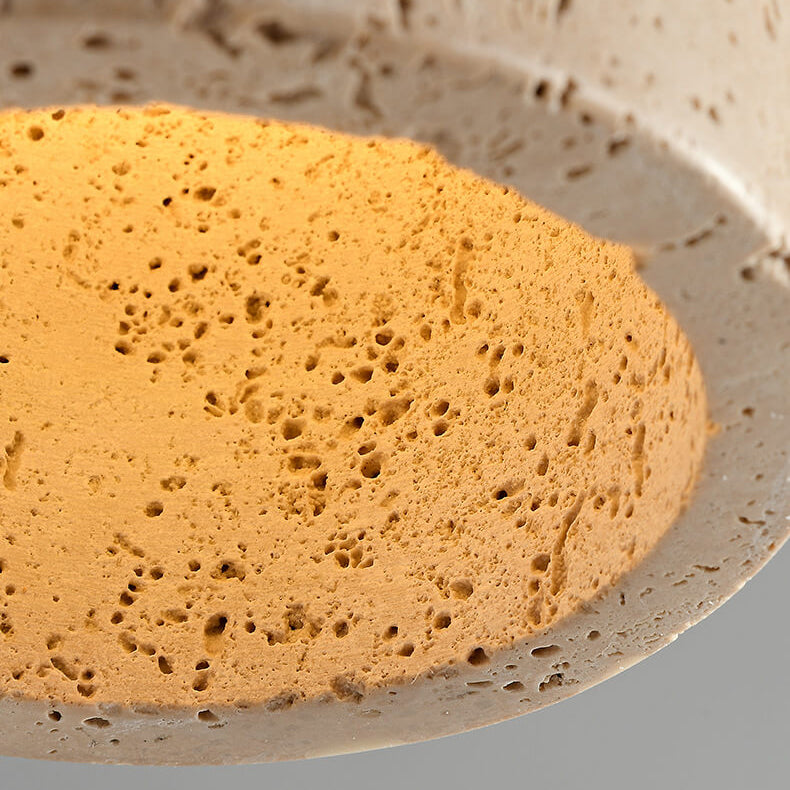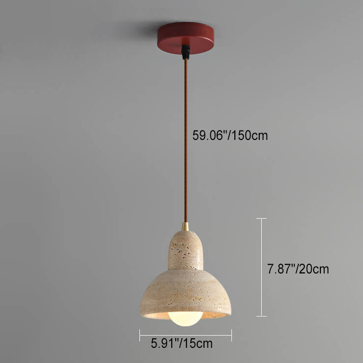 Traditional Japanese Yellow Travertine Semicircle 1-Light Pendant Light For Bedroom