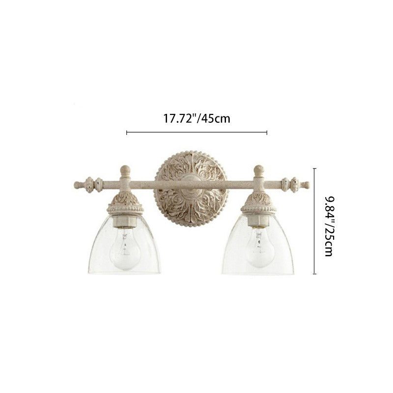Traditional Rustic Distressed Carved Iron Glass Cup Shade 2-Light Mirror Front Wall Sconce Lamp For Bathroom