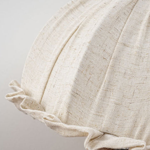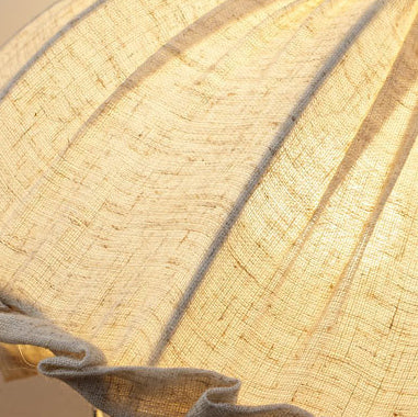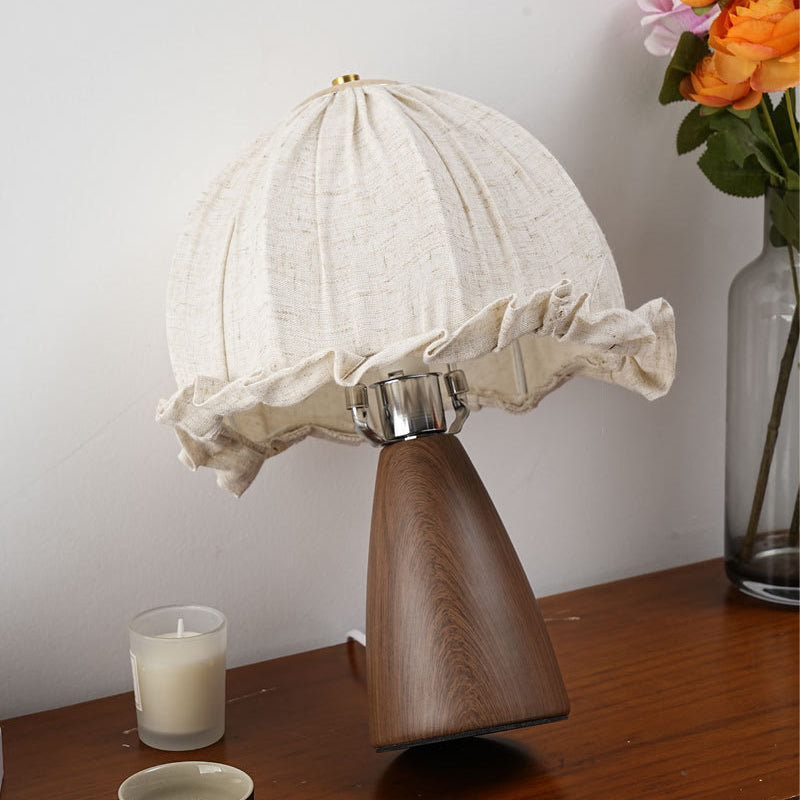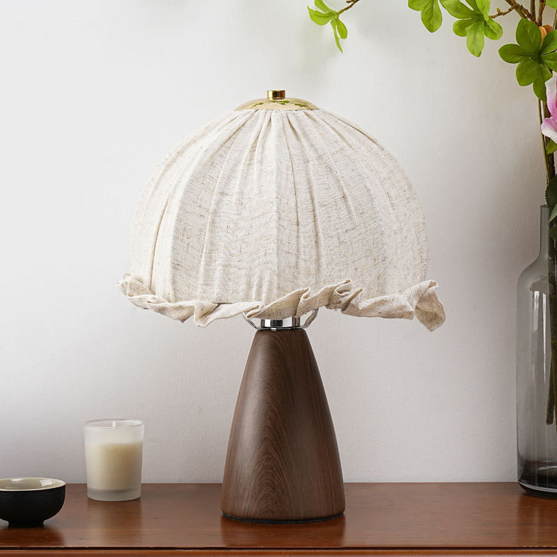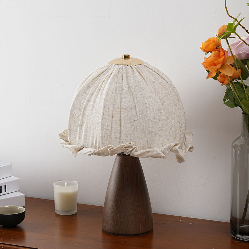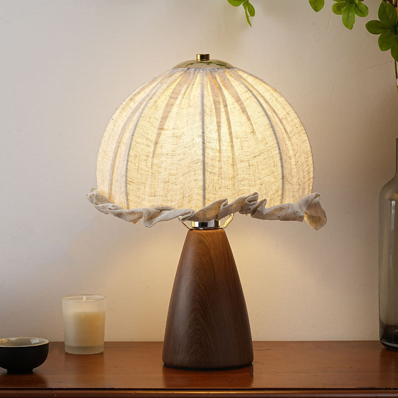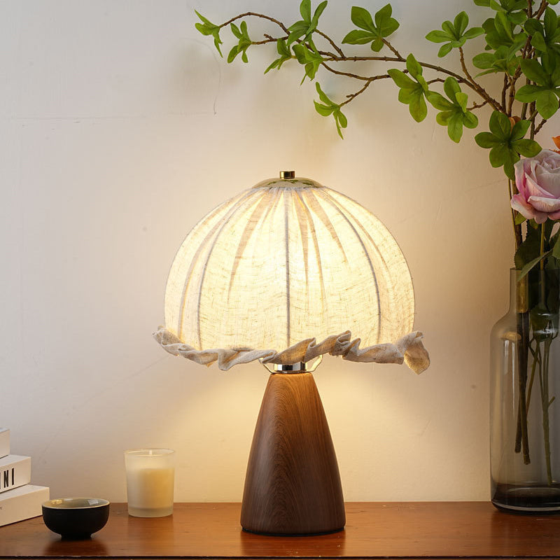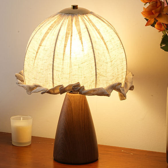 Traditional Rustic Dome Iron Walnut Wood Fabric 1-Light Table Lamp For Bedroom