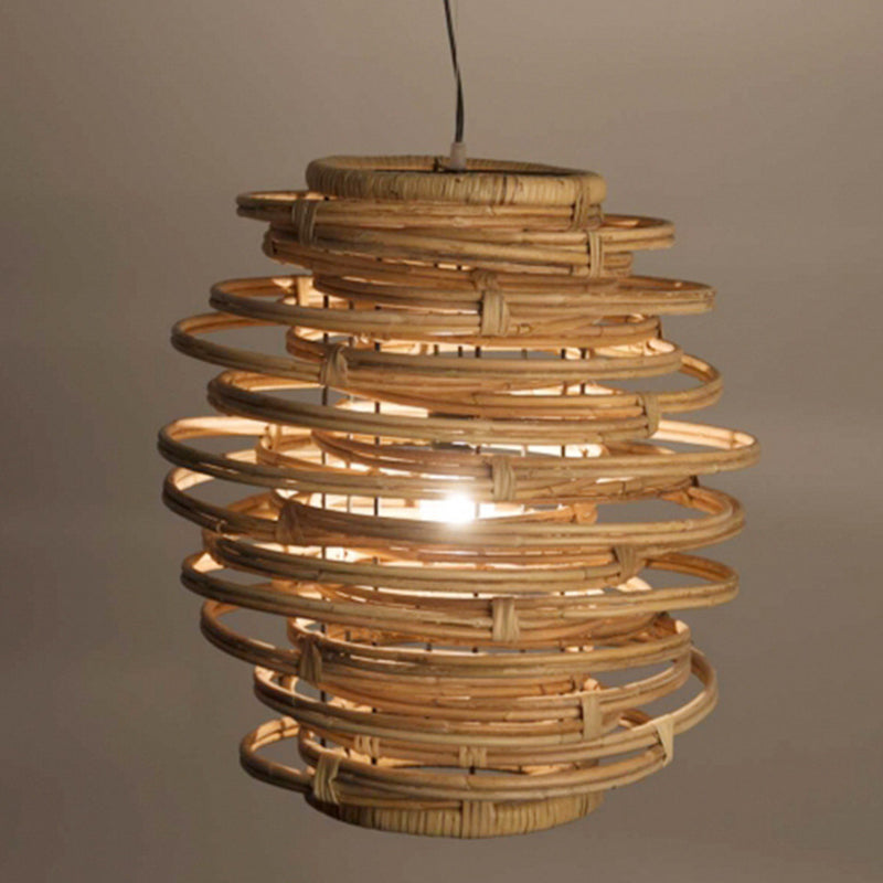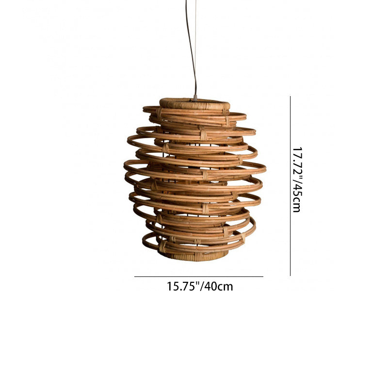 Traditional Rustic Entangled Rattan Weaving Circular Ring 1-Light Pendant Light For Living Room