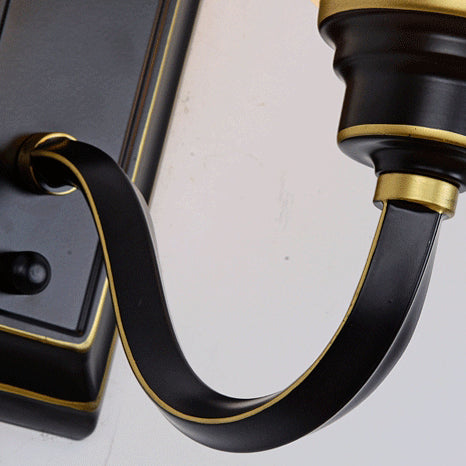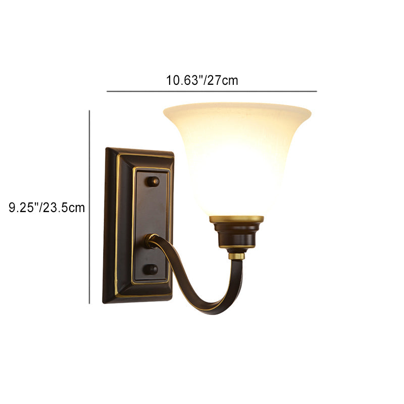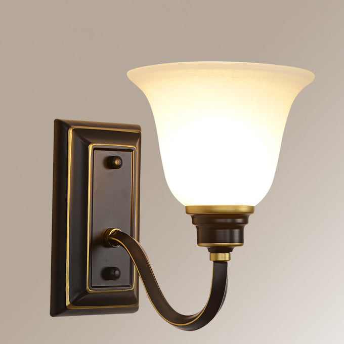 Traditional Rustic Floral Glass Shade Iron 1-Light Wall Sconce Lamp For Bedroom