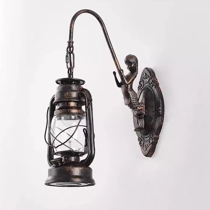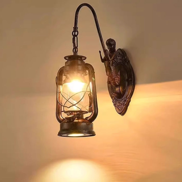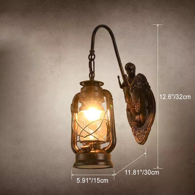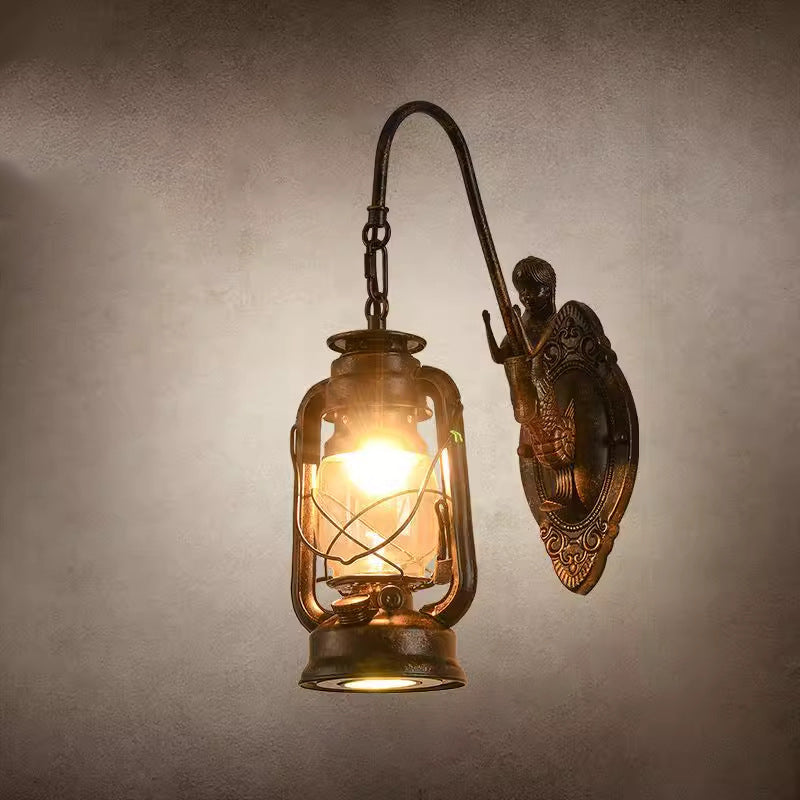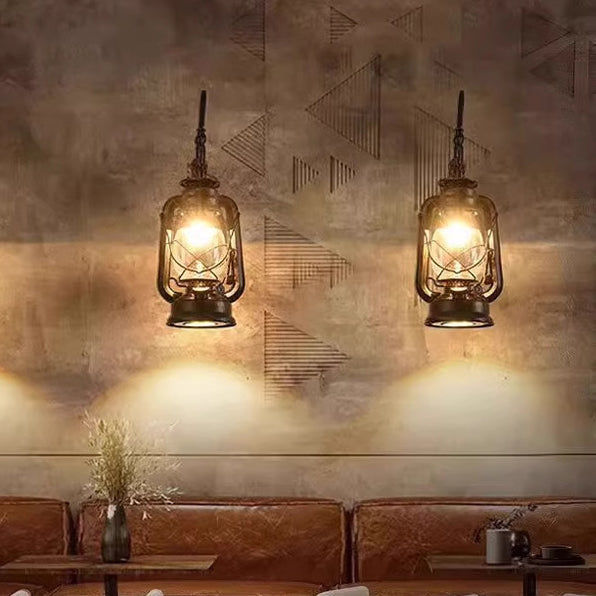 Traditional Rustic Glass Iron Lampshade 1/2 - Light Wall Sconce Lamp For Dining Room