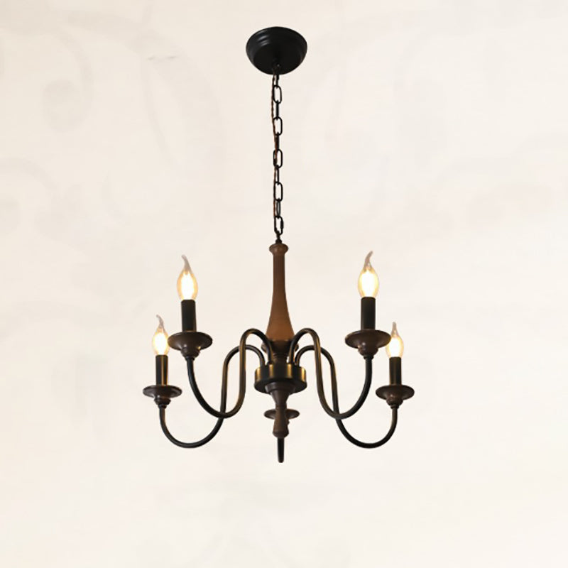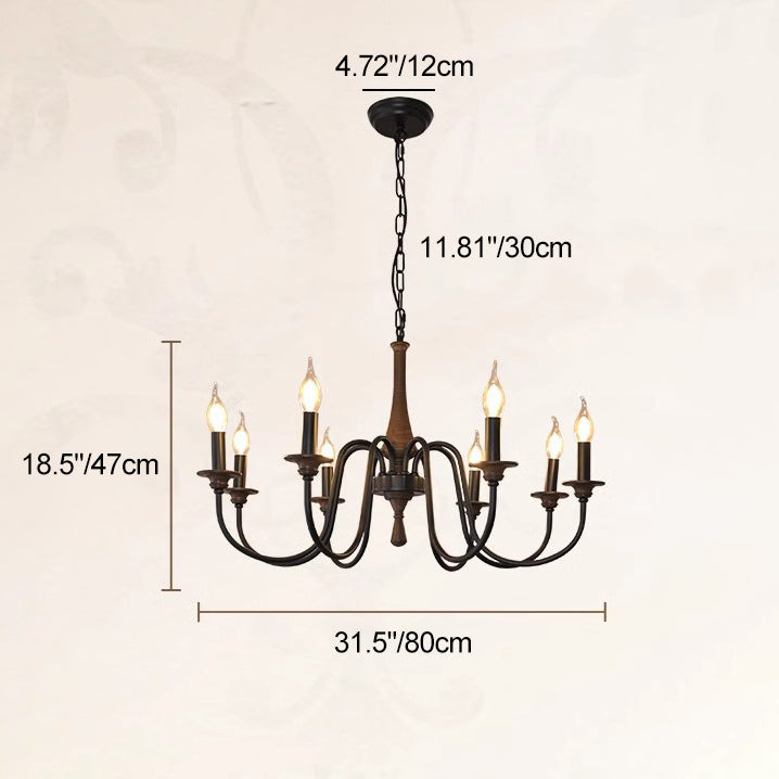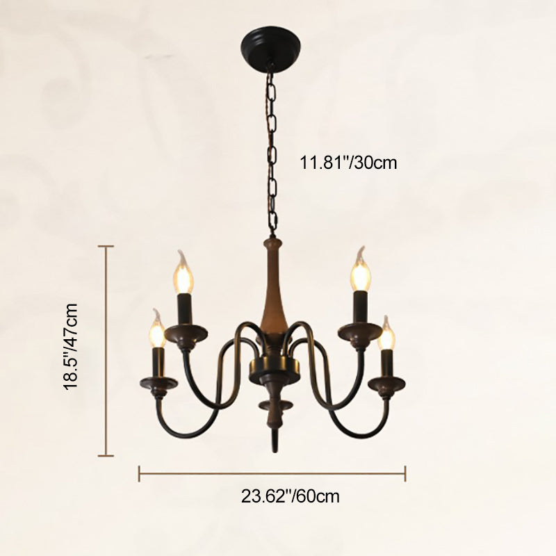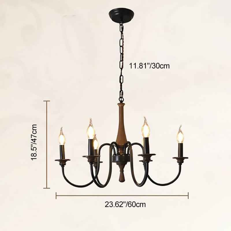Traditional Rustic Wood & Iron Candle Holder Branching Iron Rod 5/6/8 Light Chandelier For Living Room