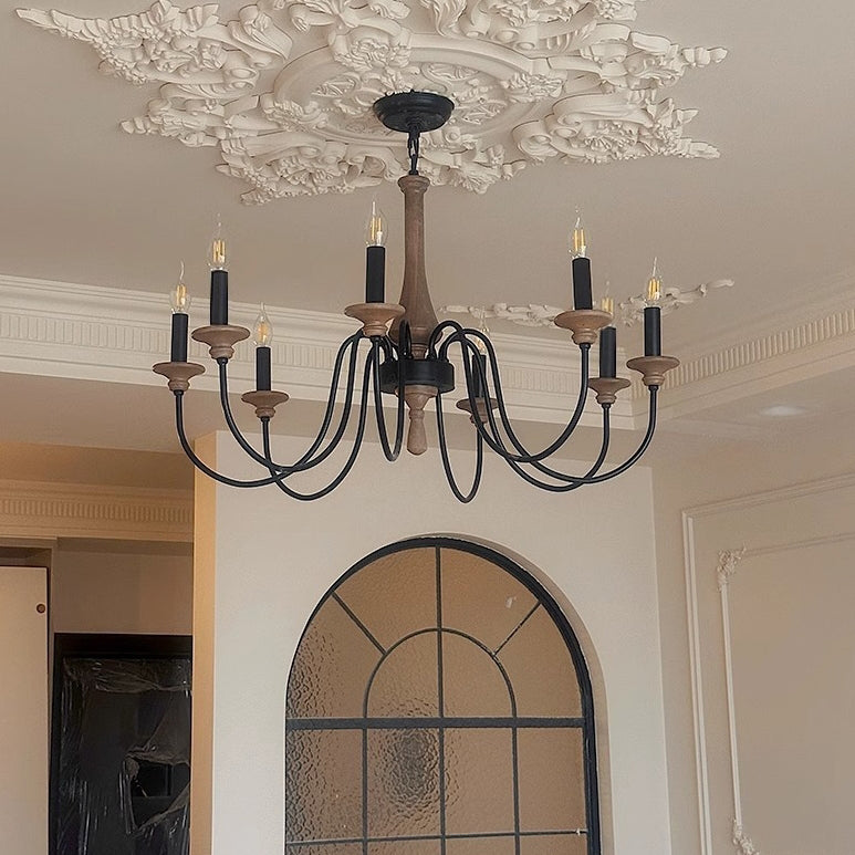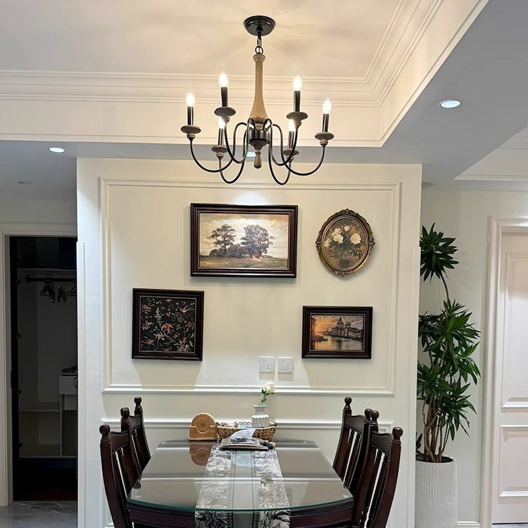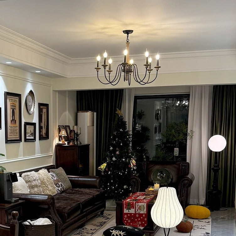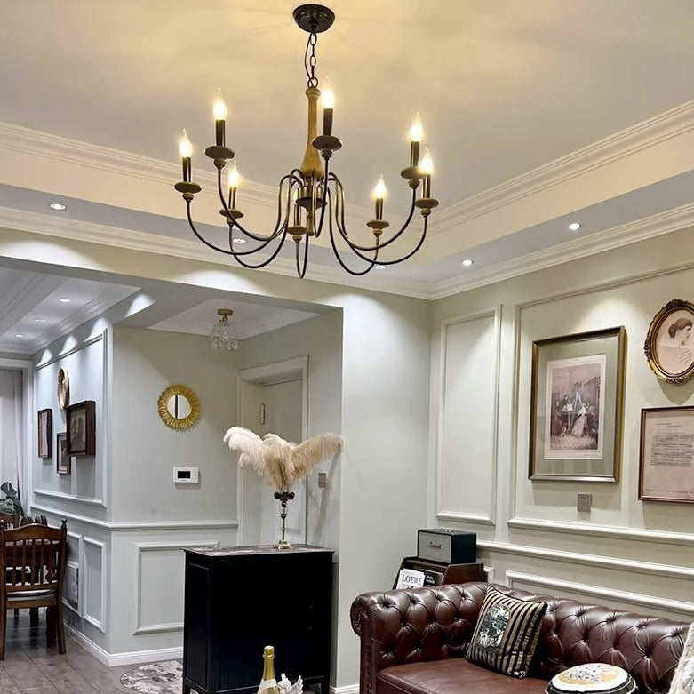 Elevate your living room with our Traditional Rustic Wood & Iron Candle Chandelier featuring a unique branching iron rod design and versatile 5/6/8 light configuration. Enjoy adjustable chain functionality and a sleek black finish that exudes high-end French countryside charm, perfect for sophisticated interiors.