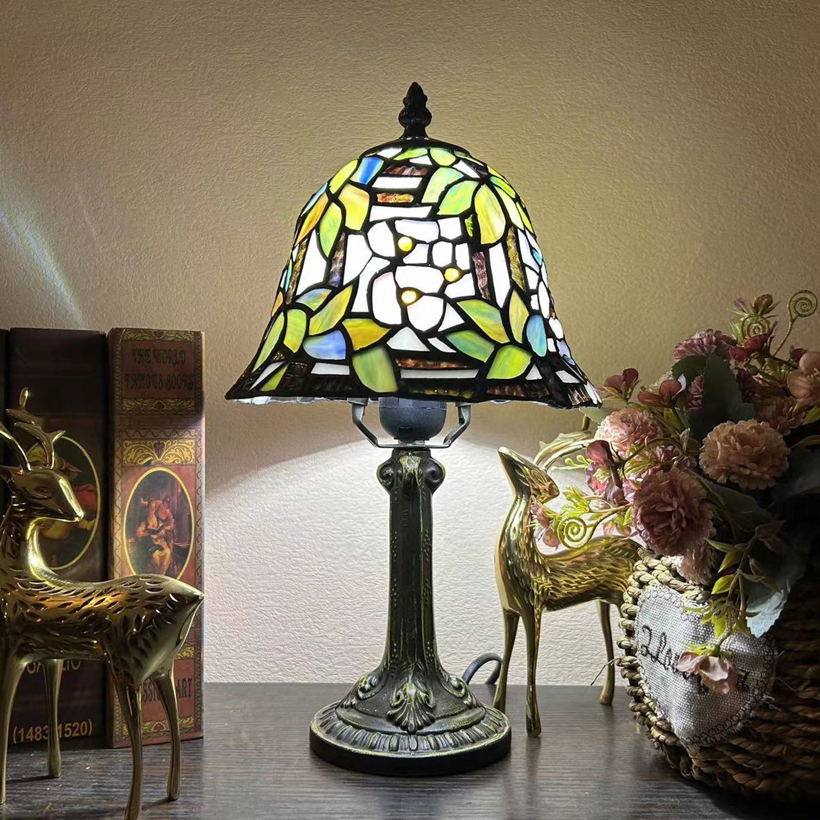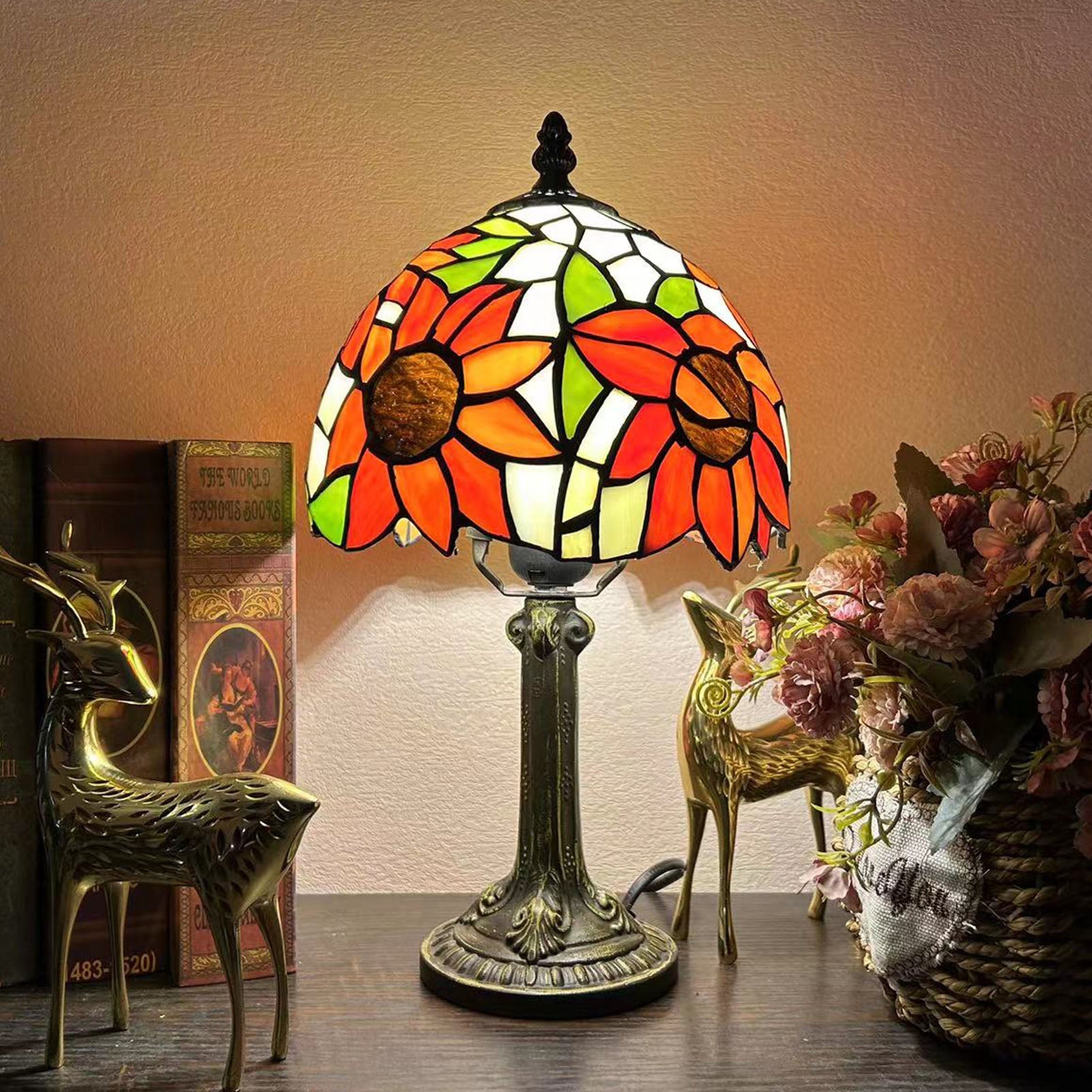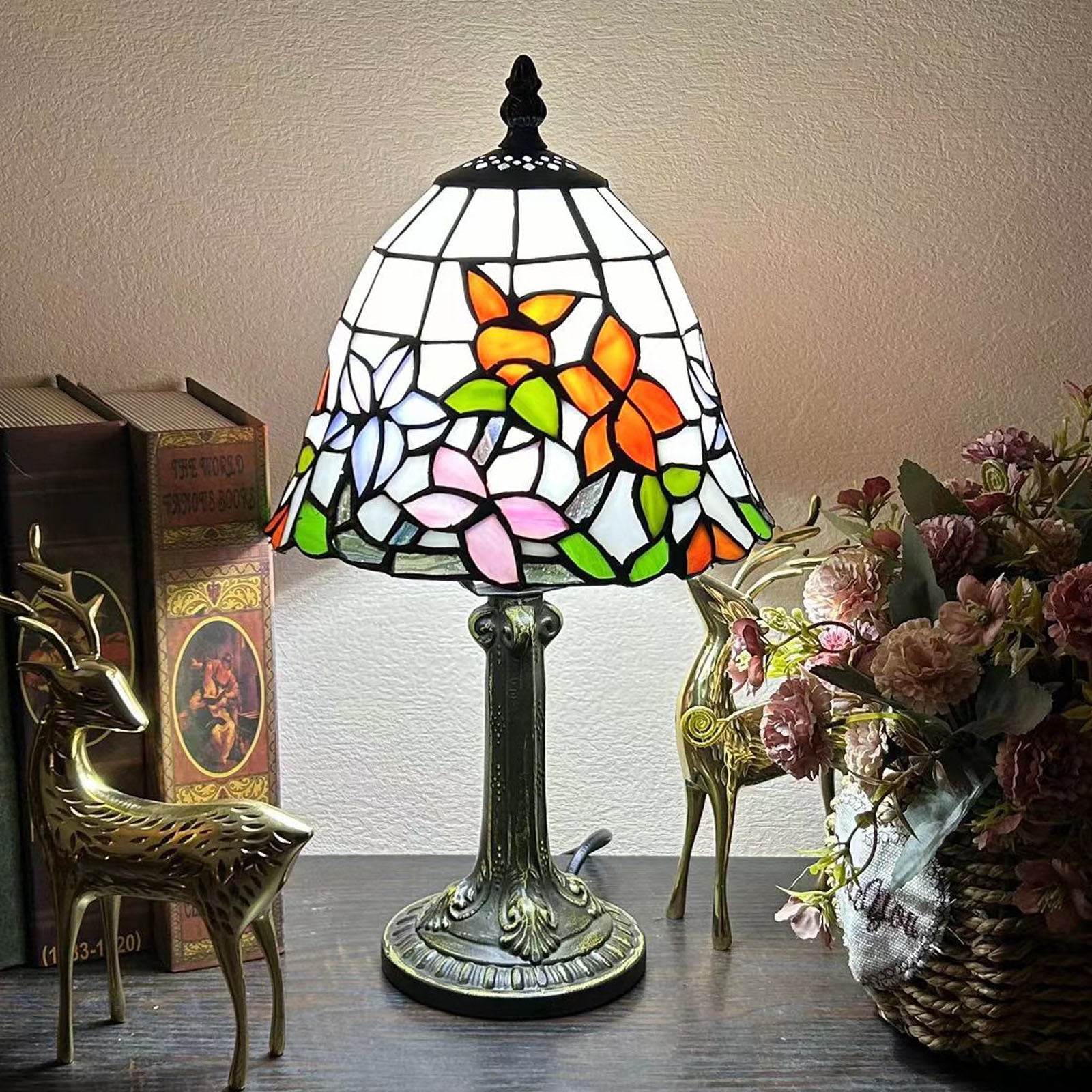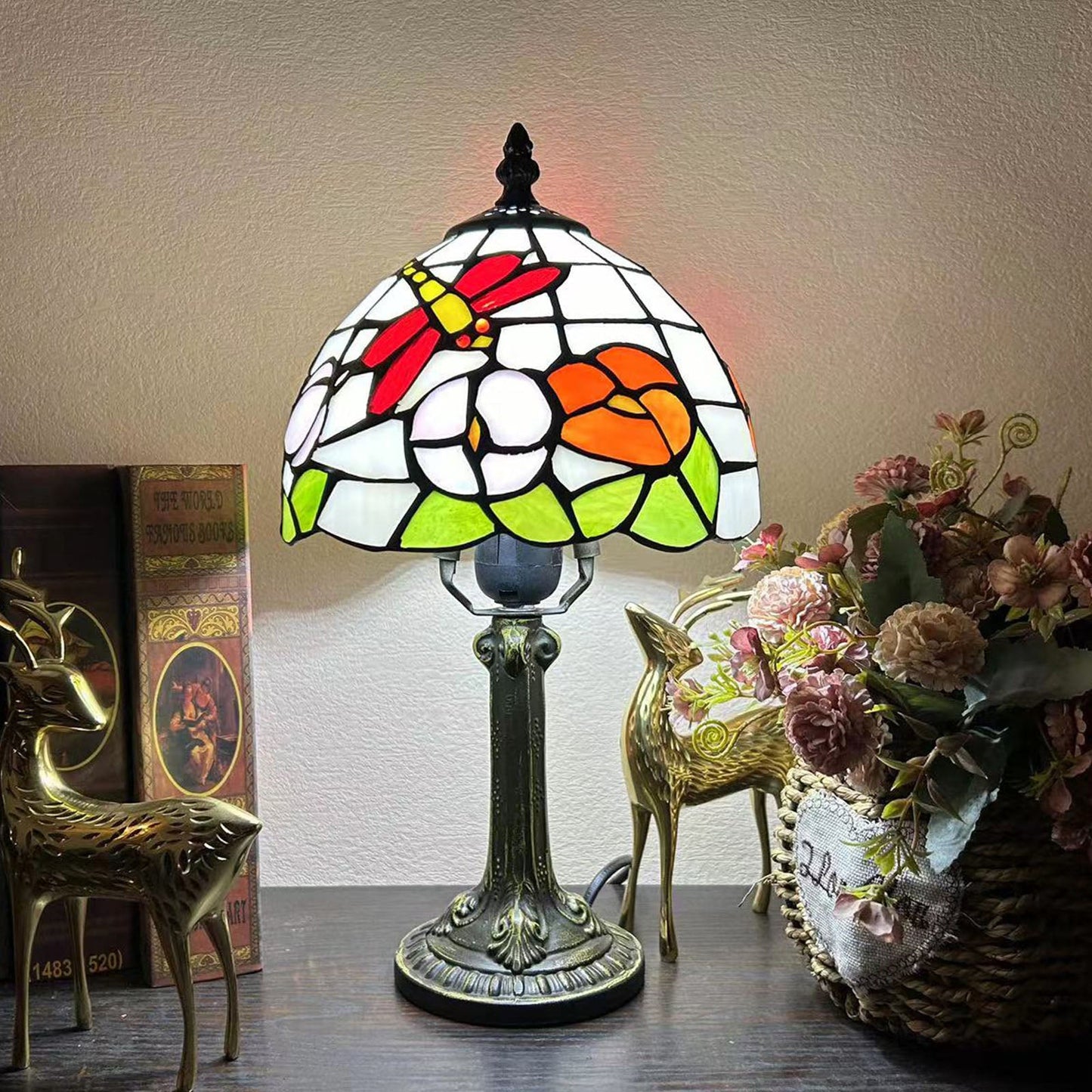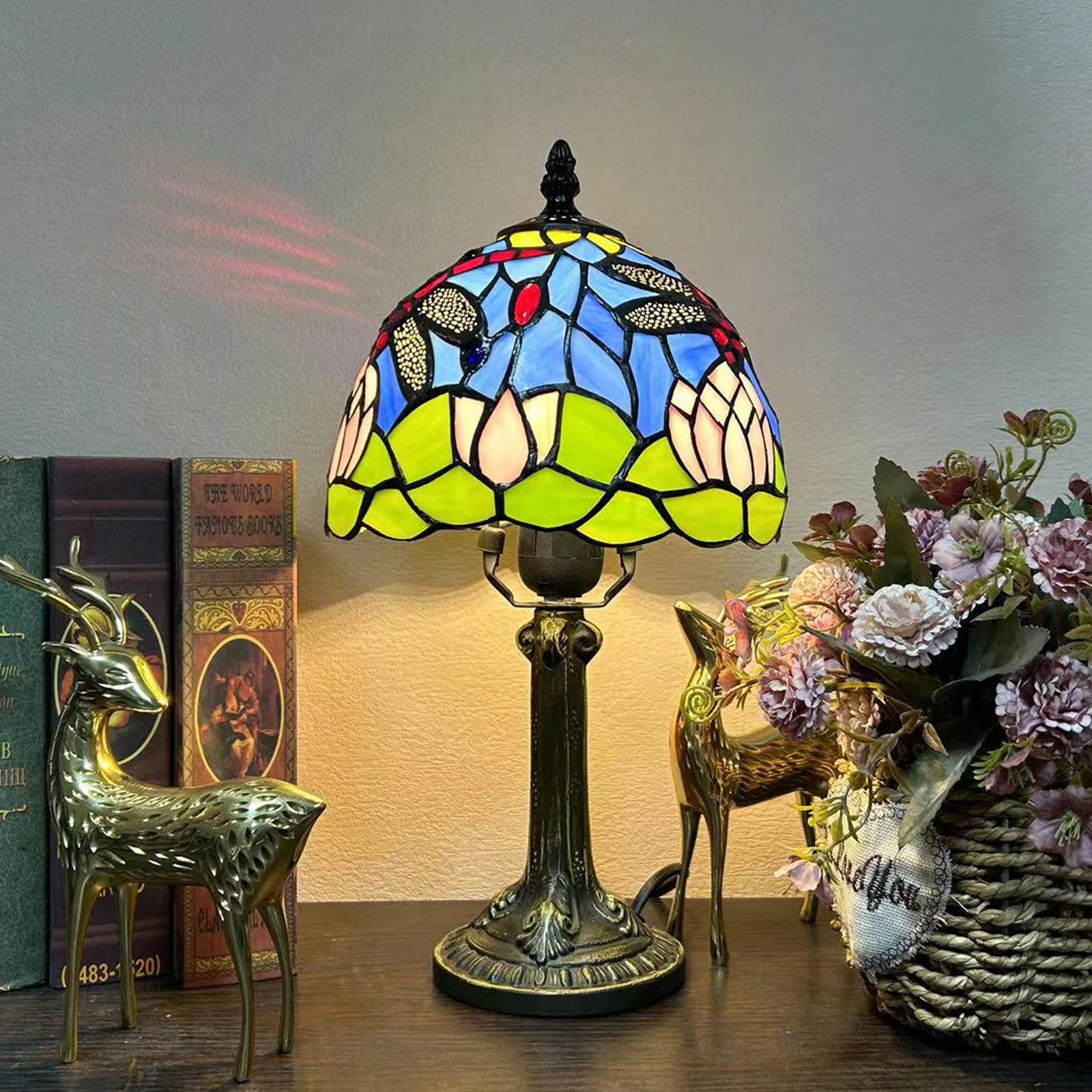 Traditional Tiffany Alloy Glass Dome Flower 1-Light Table Lamp For Bedside