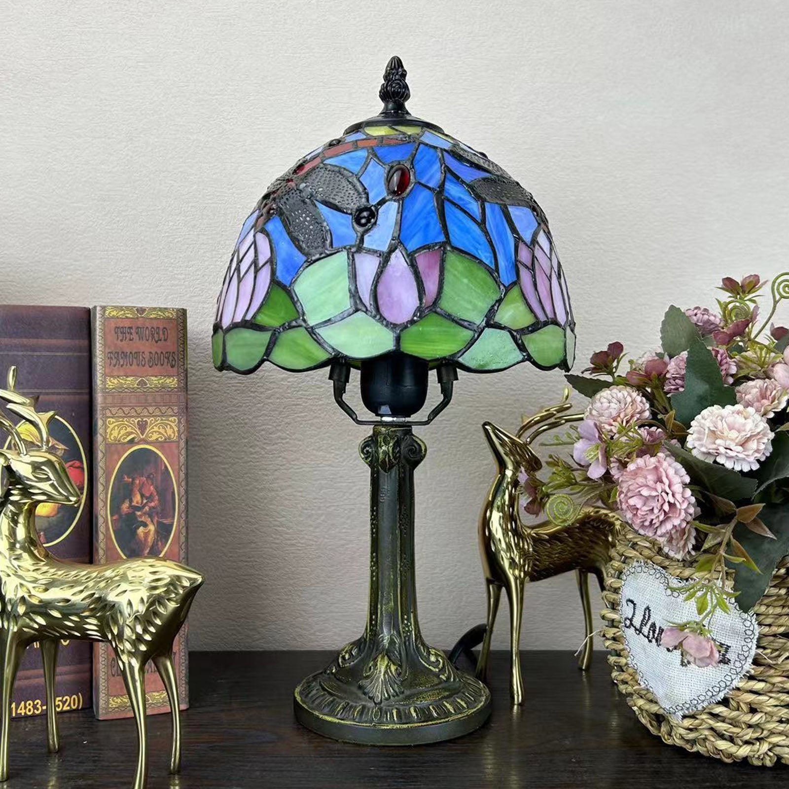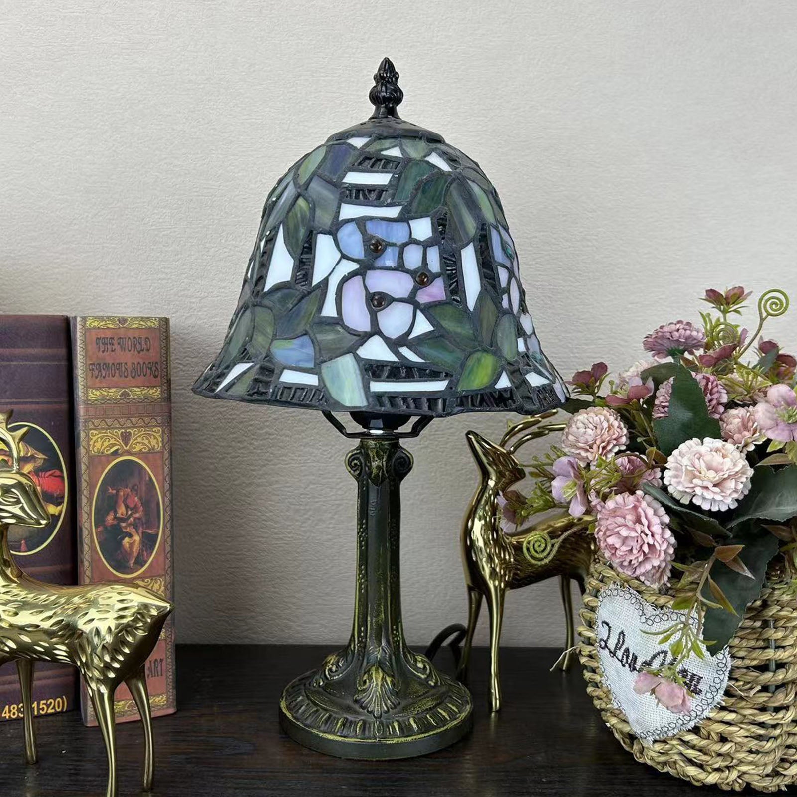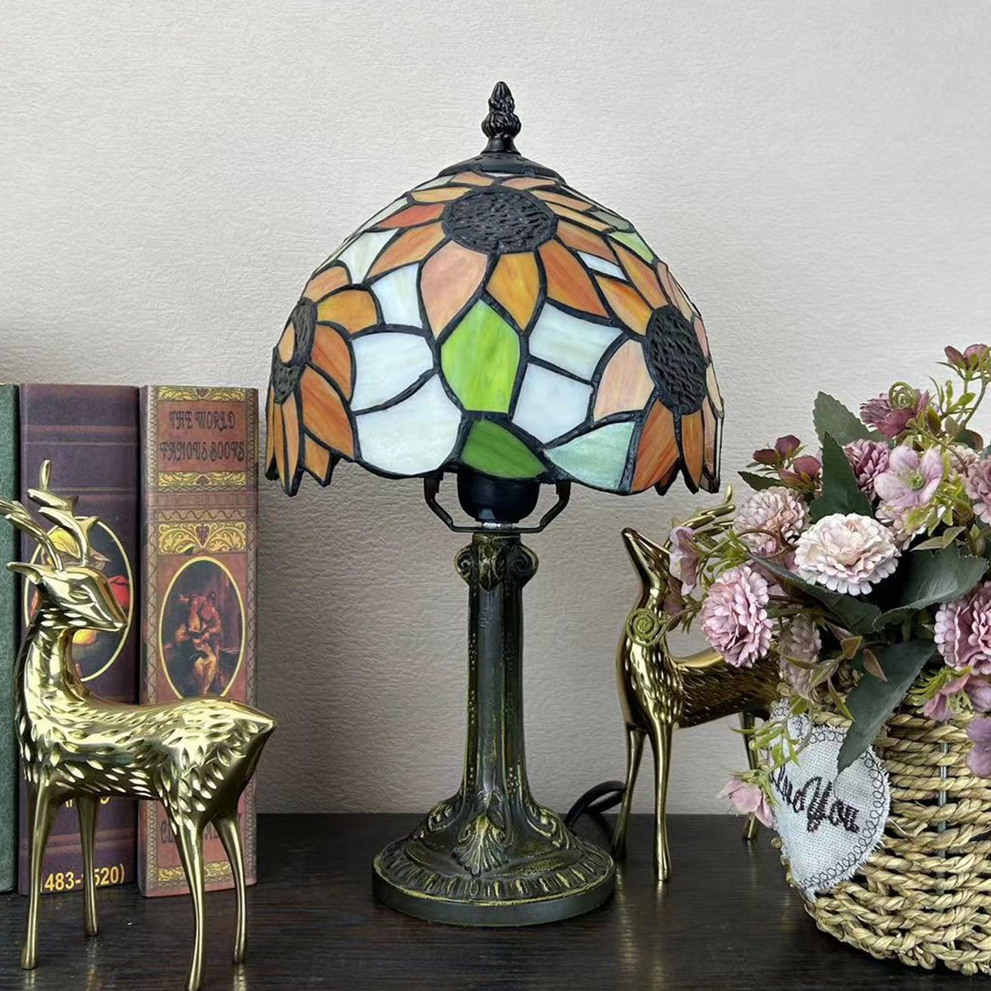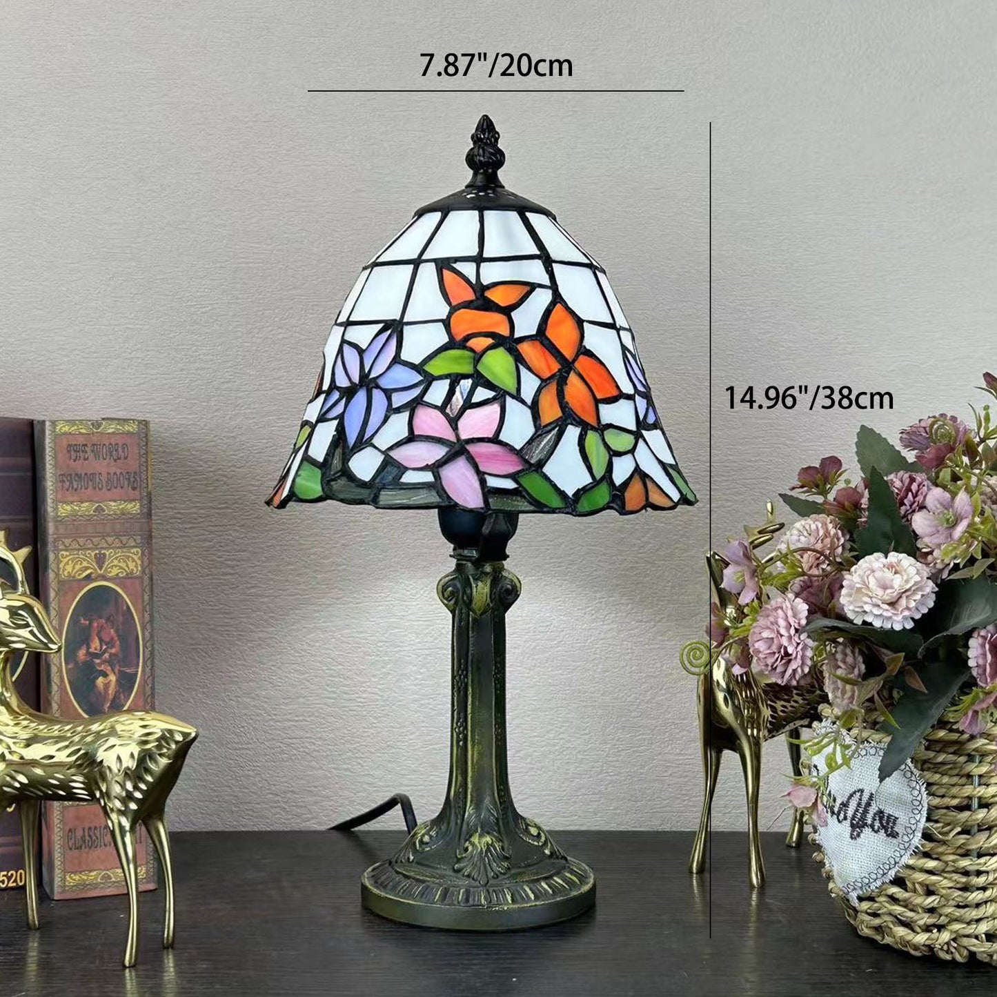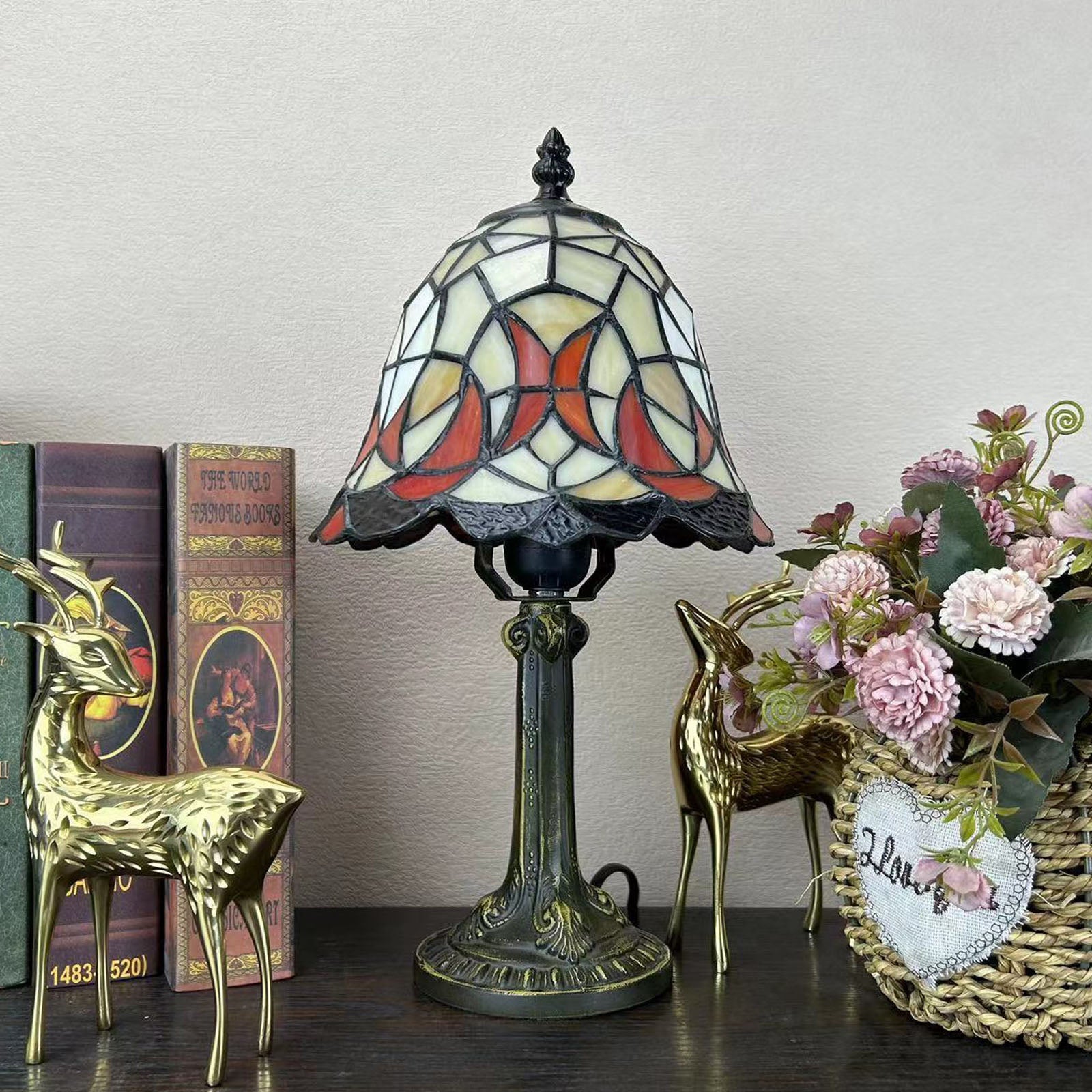 Traditional Tiffany Alloy Glass Dome Flower 1-Light Table Lamp For Bedside