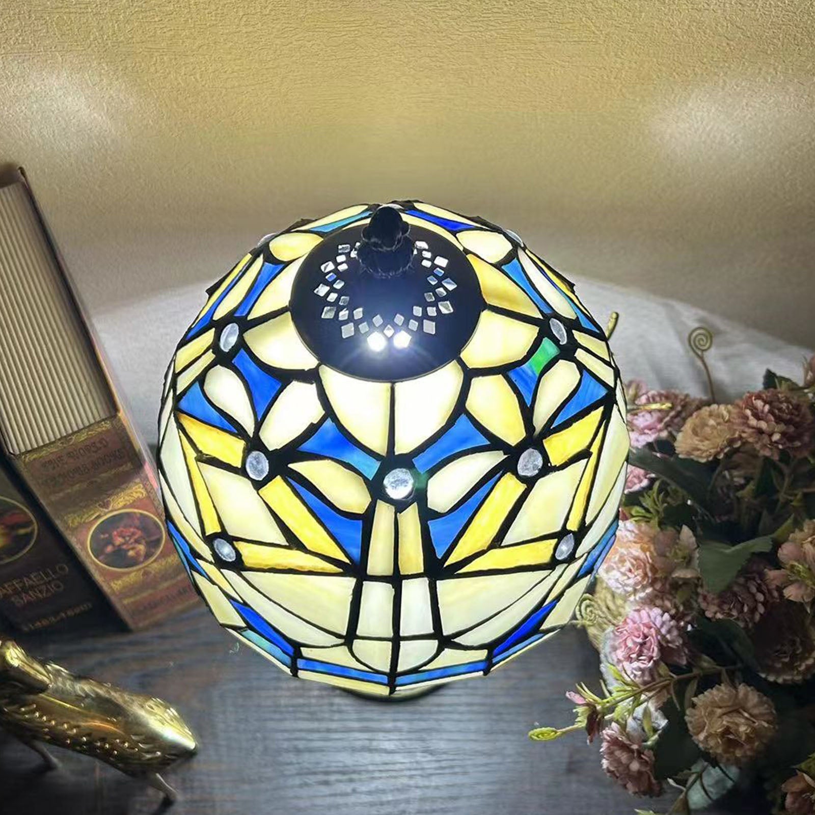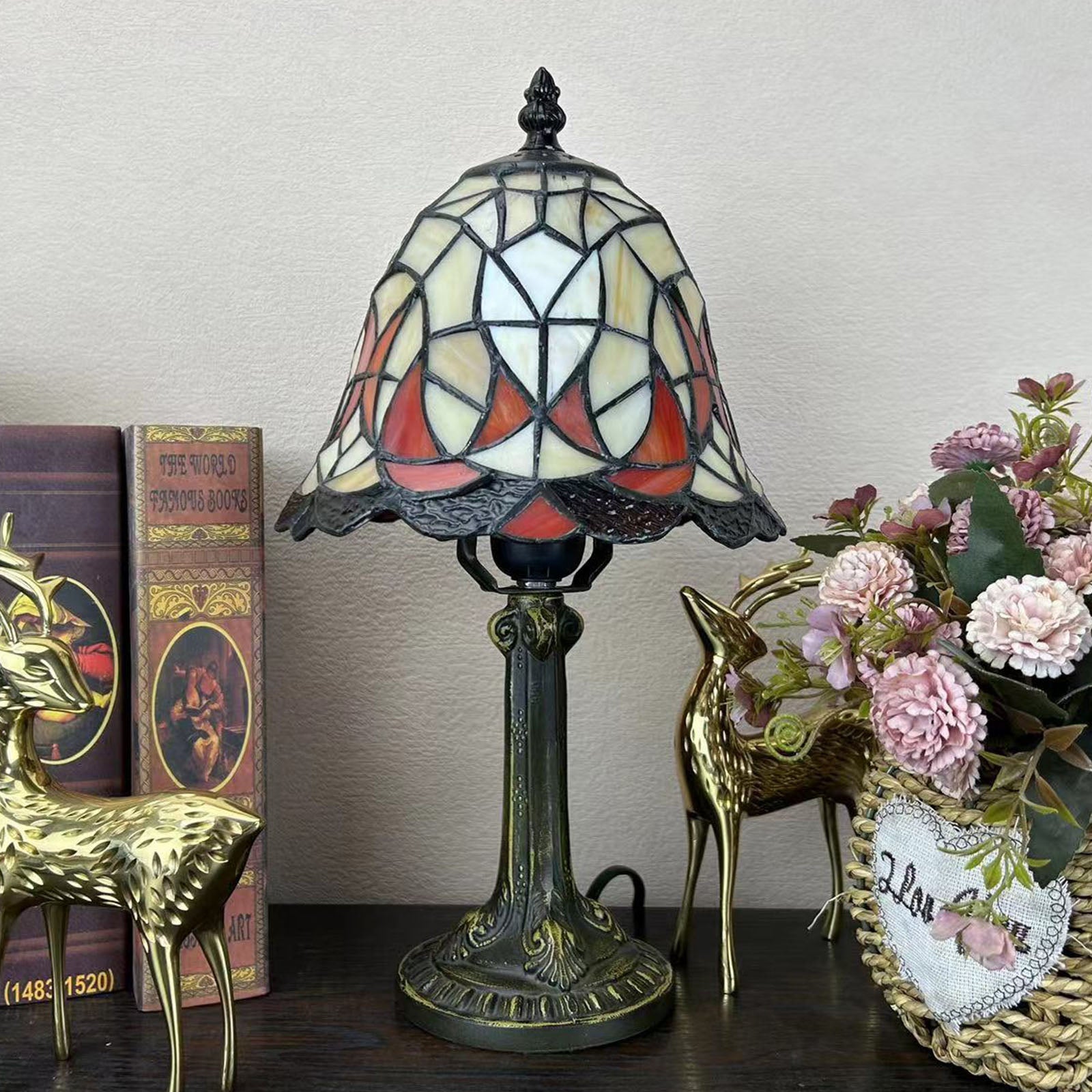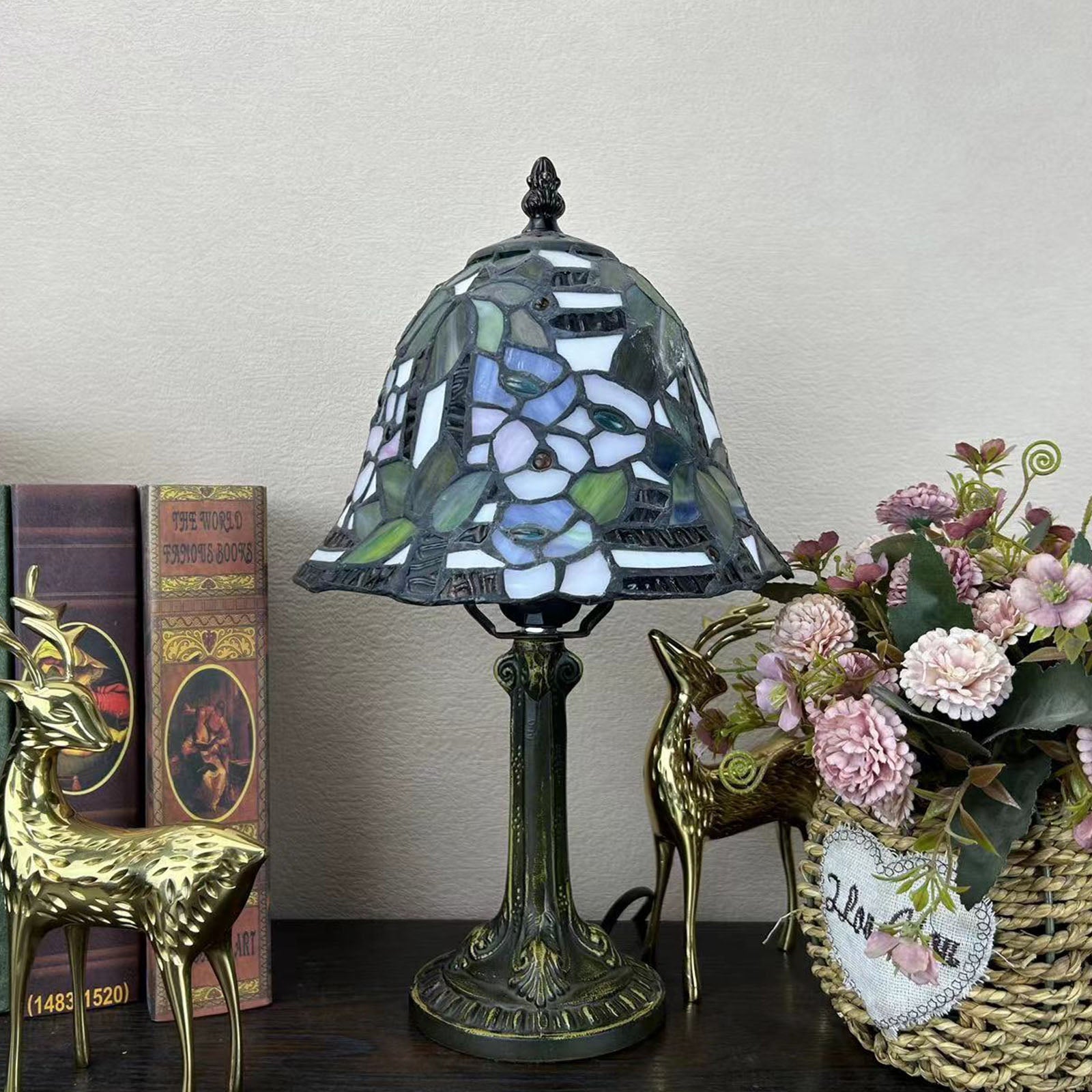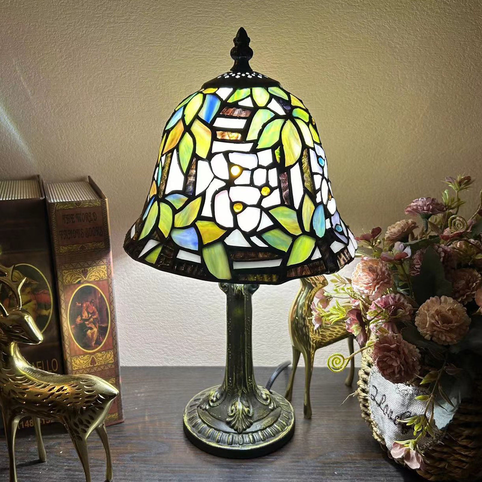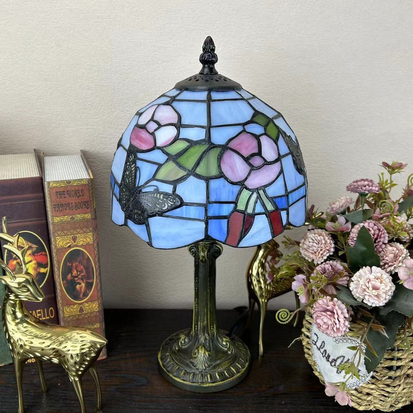 Traditional Tiffany Alloy Glass Dome Flower 1-Light Table Lamp For Bedside