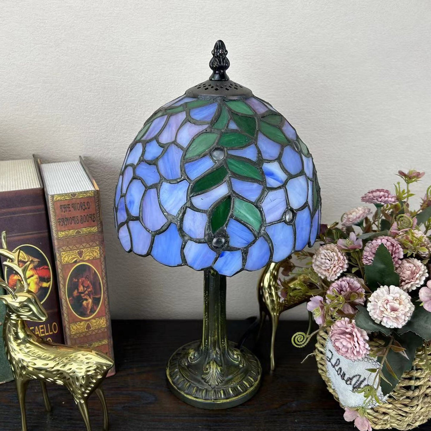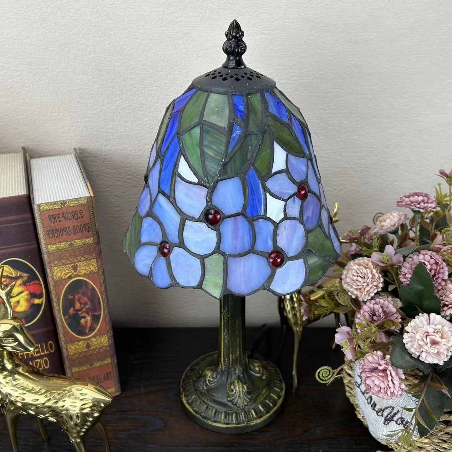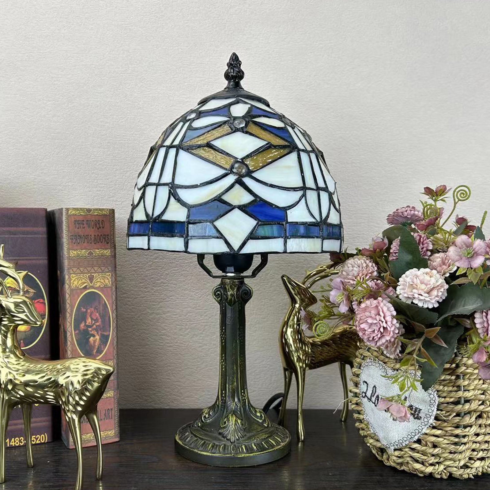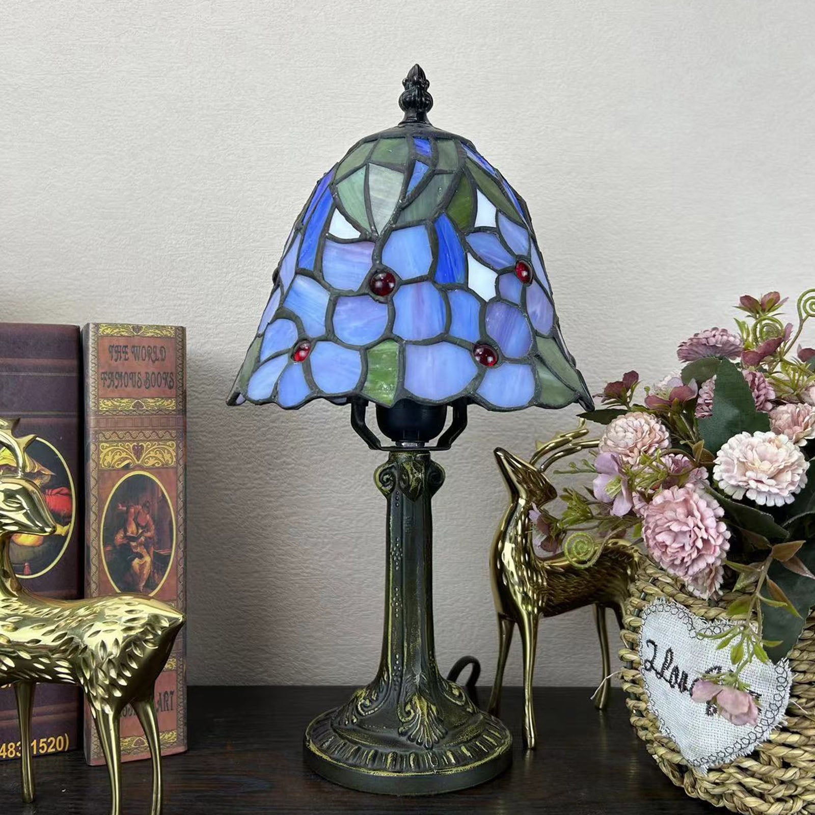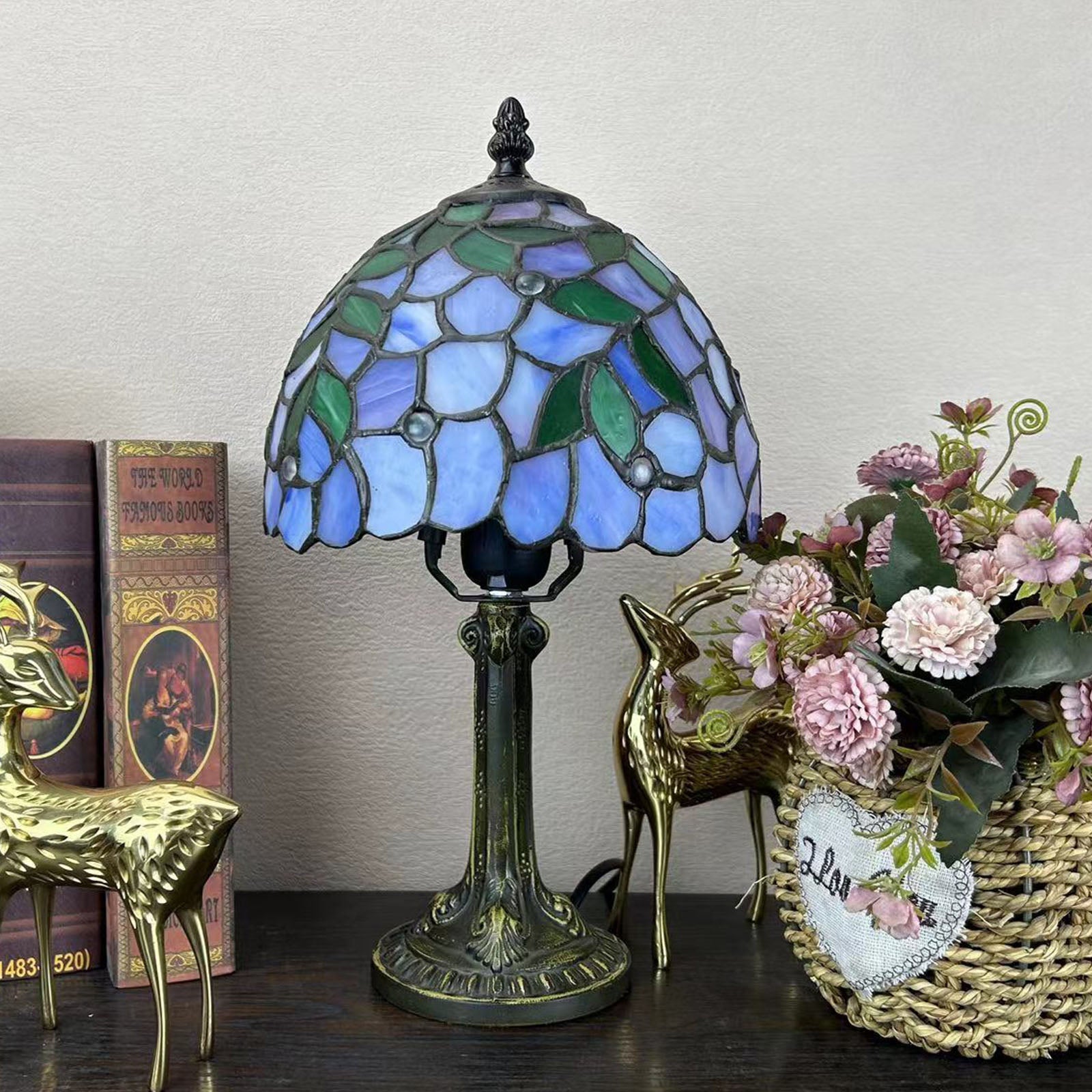 Traditional Tiffany Alloy Glass Dome Flower 1-Light Table Lamp For Bedside