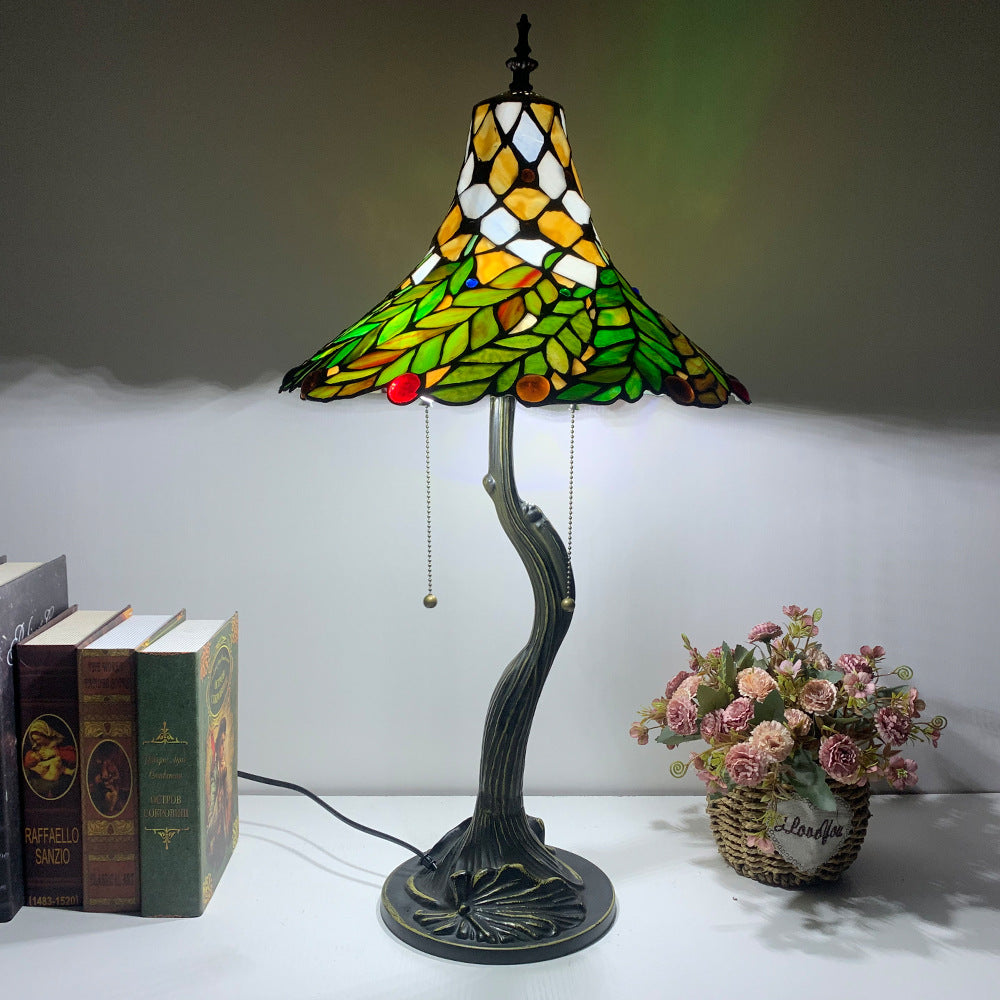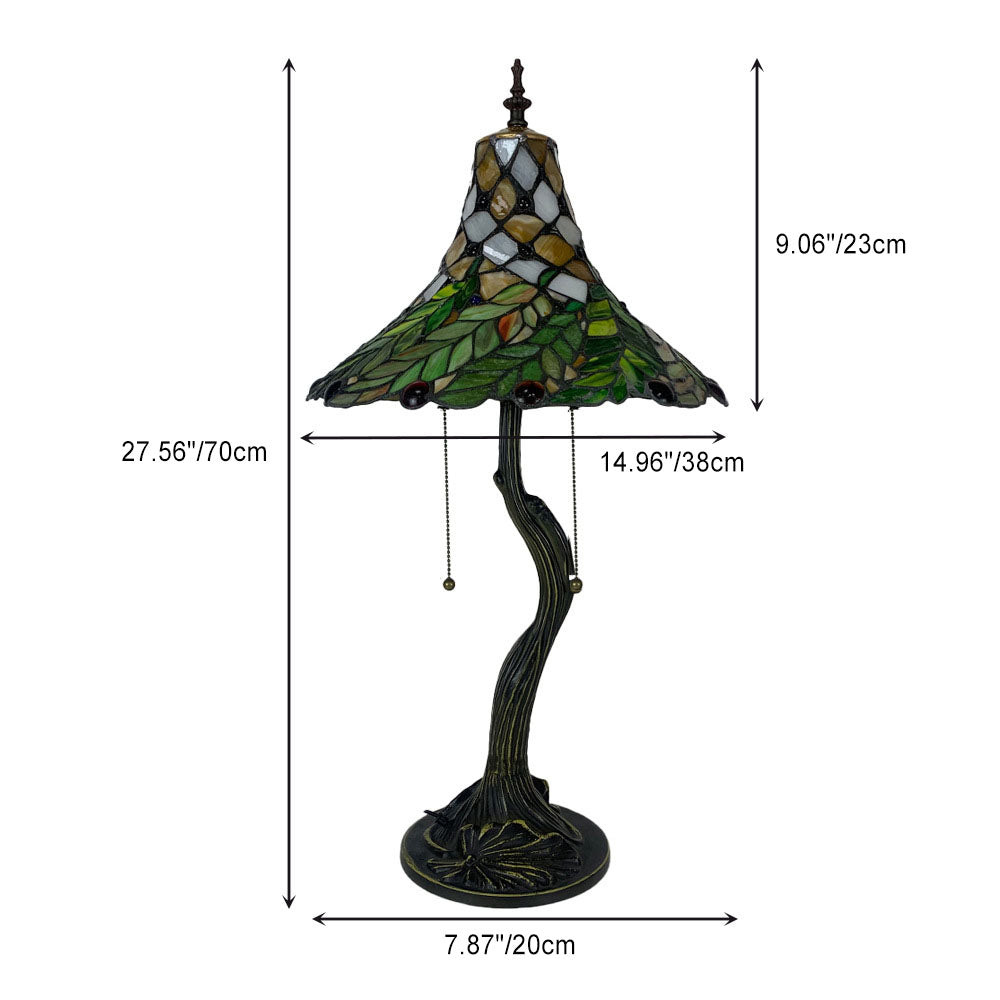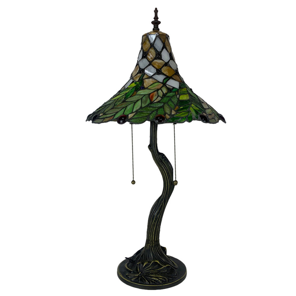 Traditional Tiffany Alloy Glass Horn Flower Leave 2-Light Table Lamp For Bedside