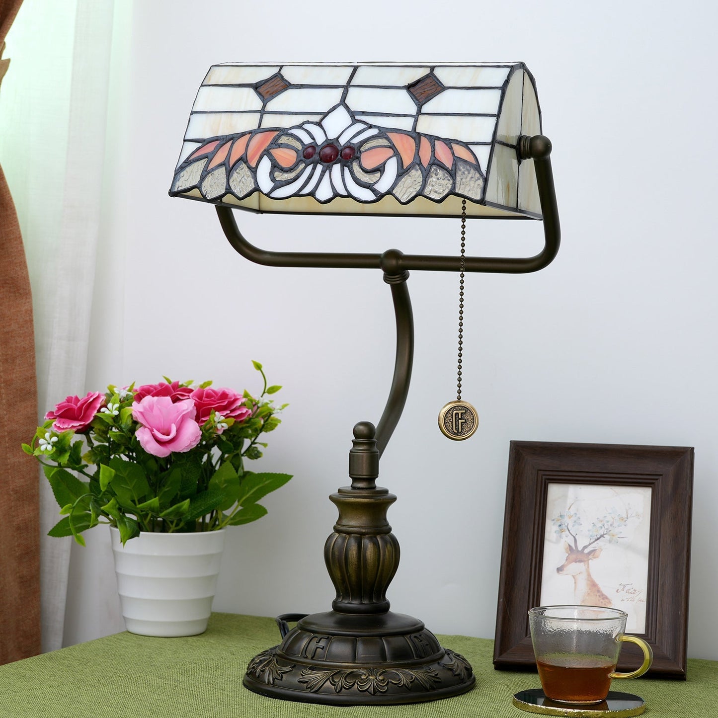 Traditional Tiffany Angel Wings Stained Glass Resin Iron 1-Light Table Lamp For Living Room