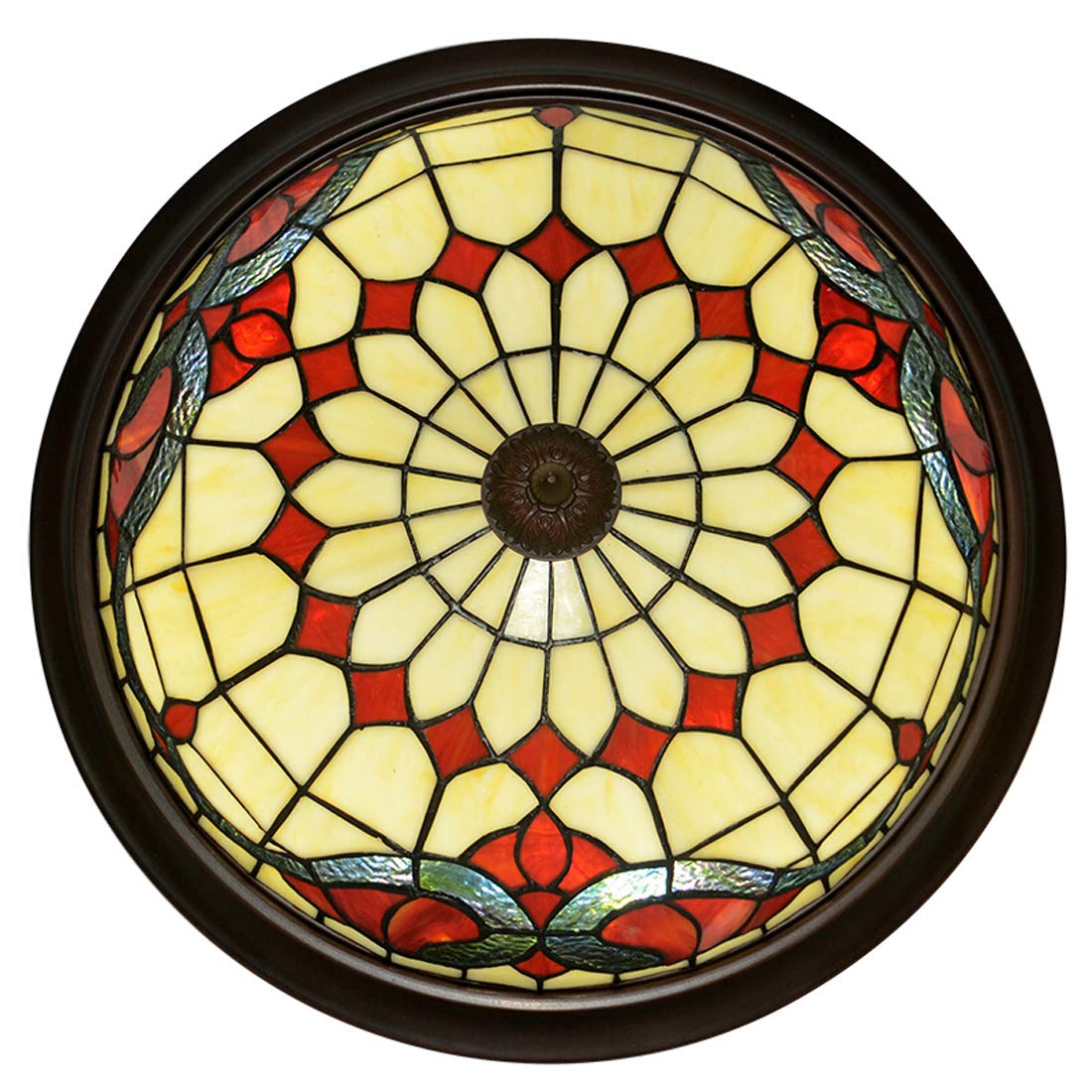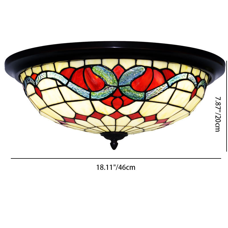 Traditional Tiffany Baroque Stained Glass Hardware Dome 3-Light Flush Mount Ceiling Light For Living Room