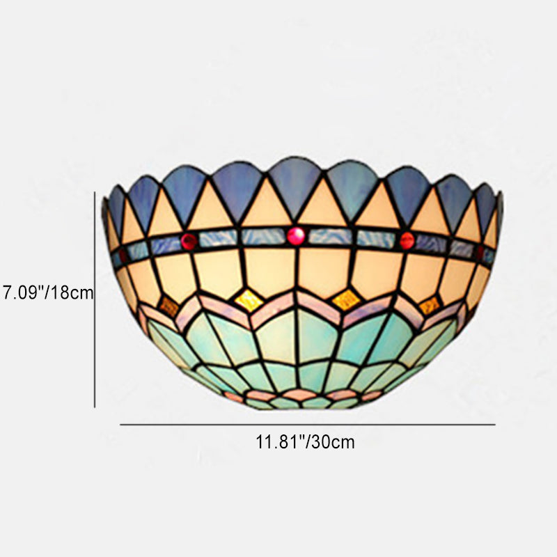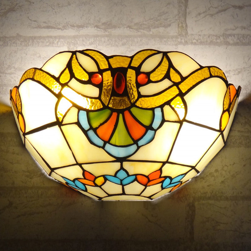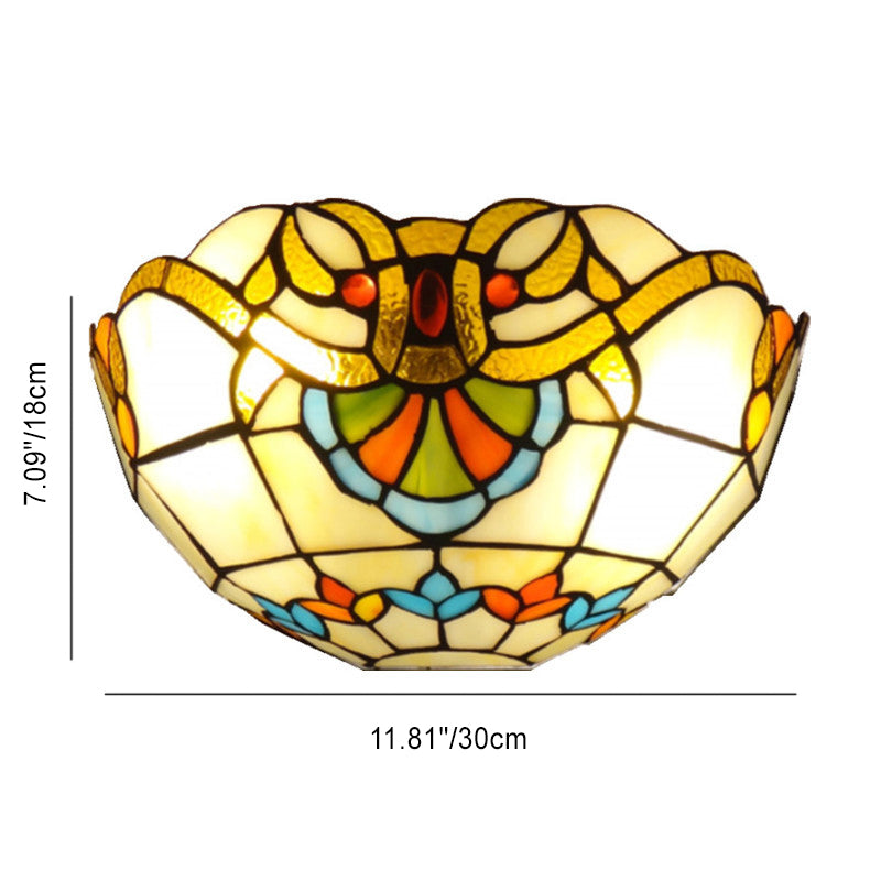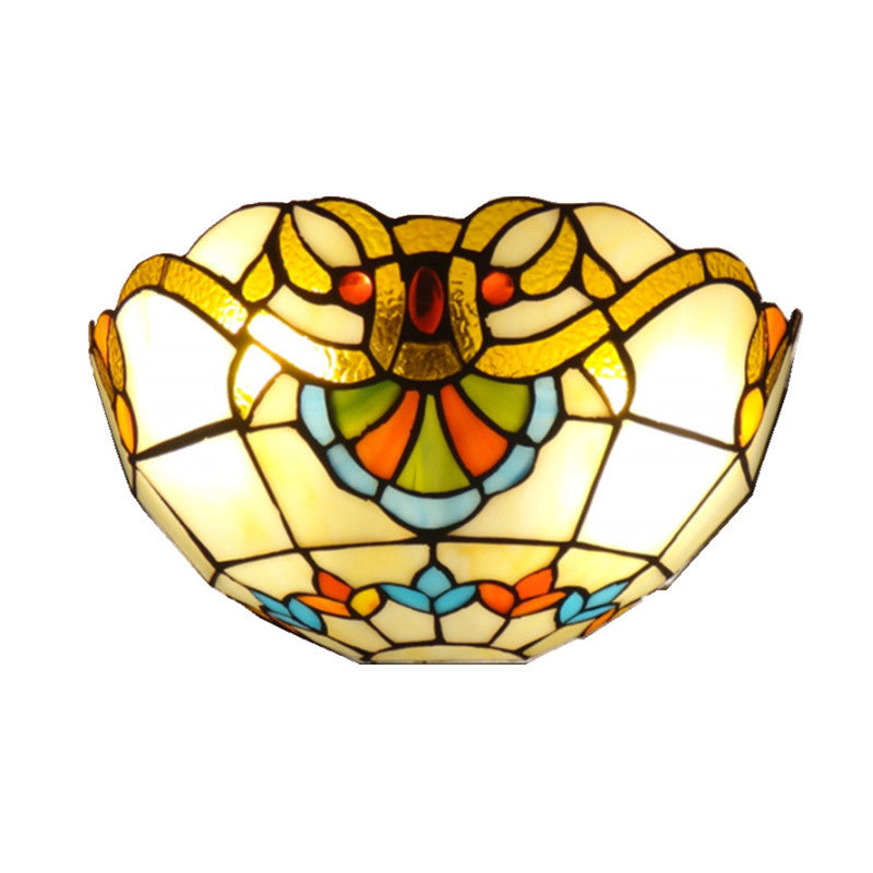 Traditional Tiffany Baroque Stained Glass Semi-circular Shade 2-Light Wall Sconce Lamp For Living Room