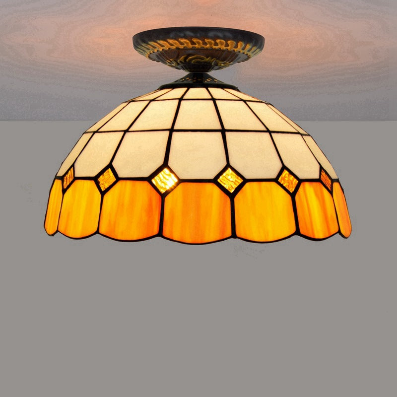 Traditional Tiffany Stained Glass Dome Shade 1-Light Semi-Flush Mount Ceiling Light For Living Room