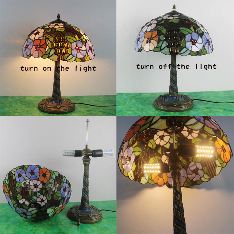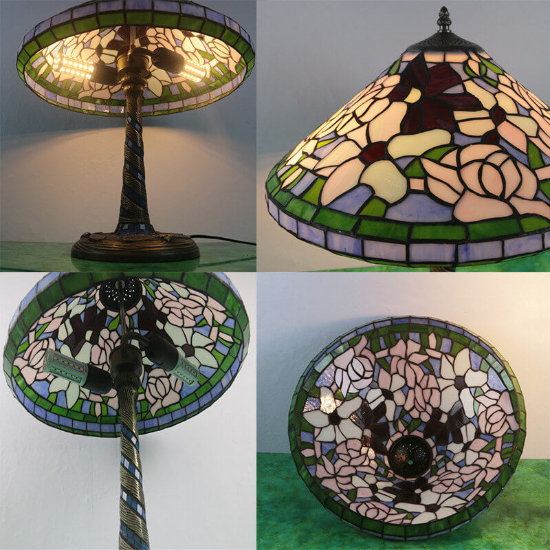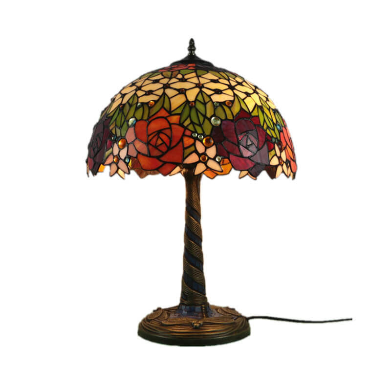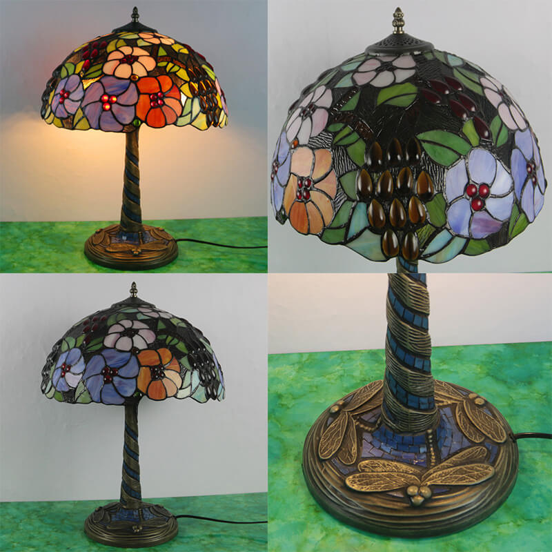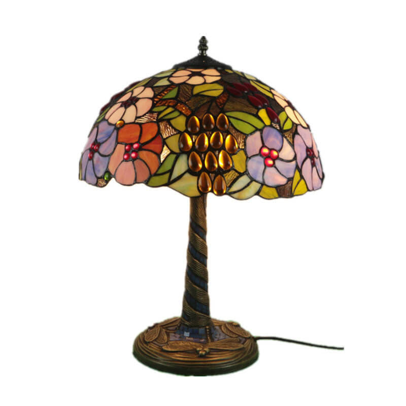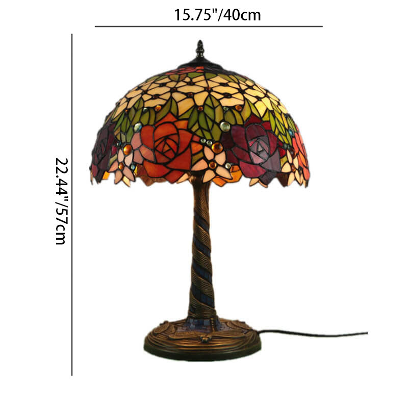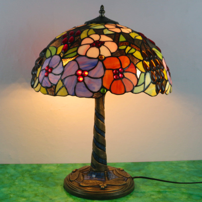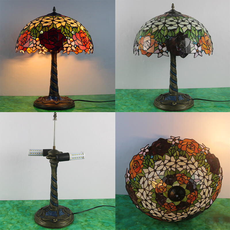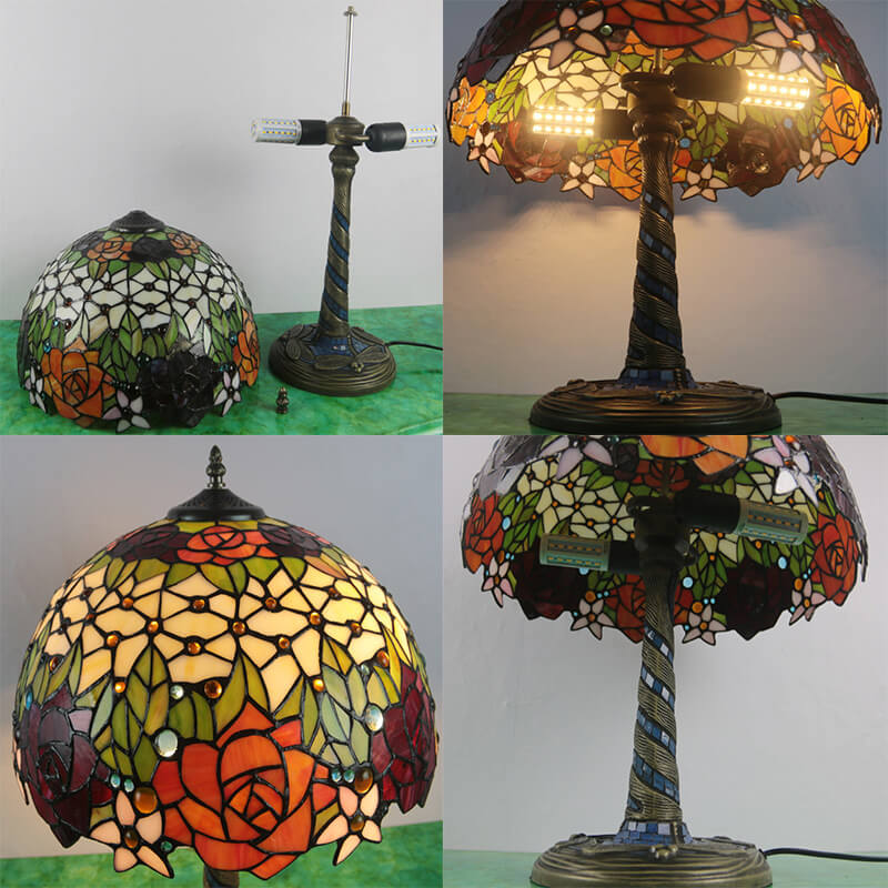 Traditional Tiffany Flower Decor Stained Glass Dome 2-Light Table Lamp For Bedroom