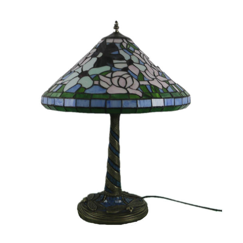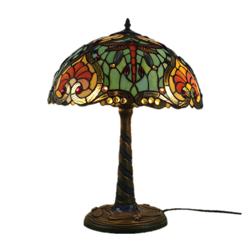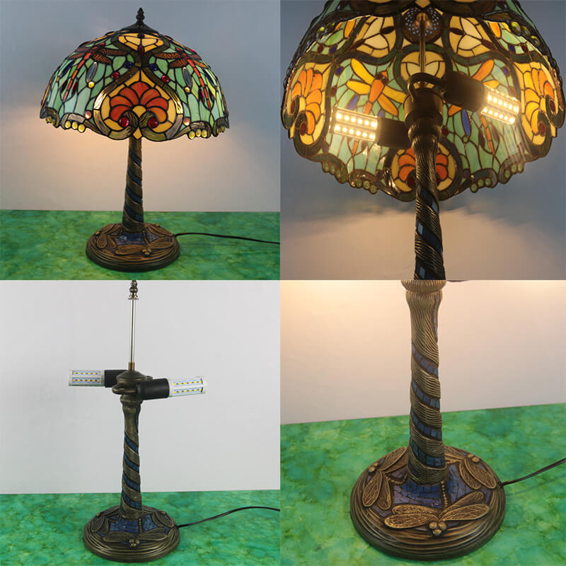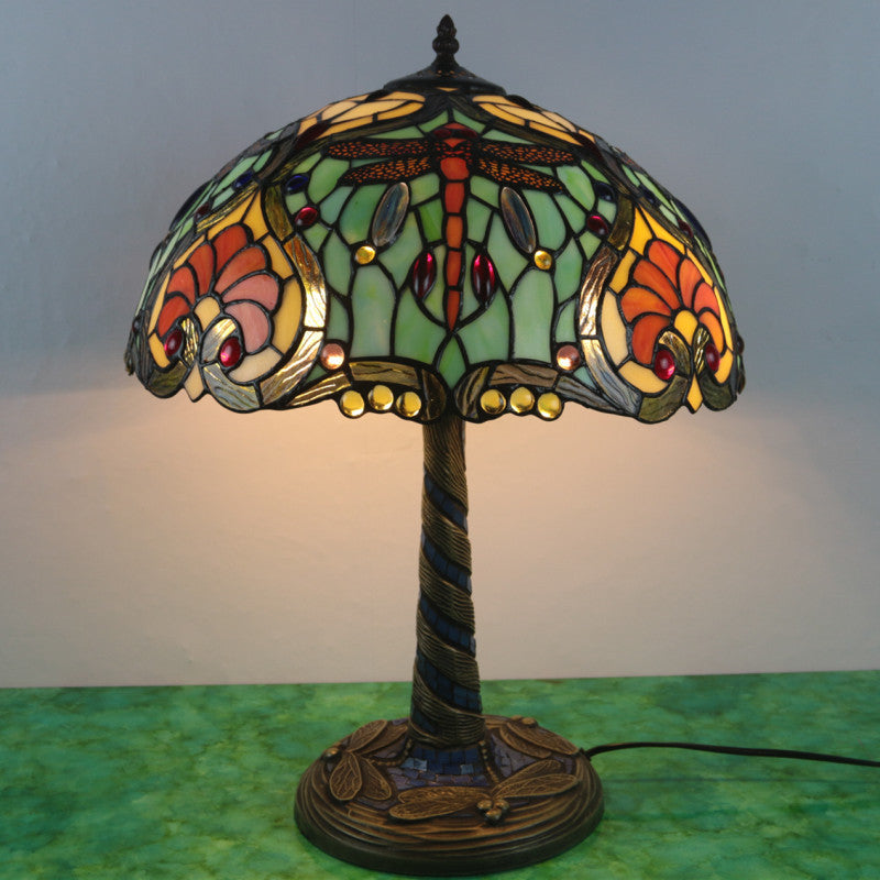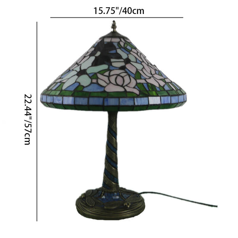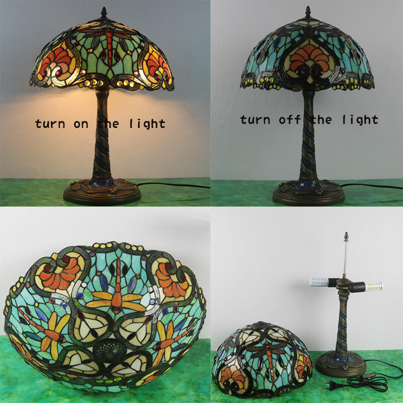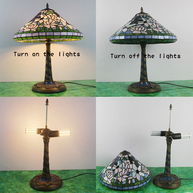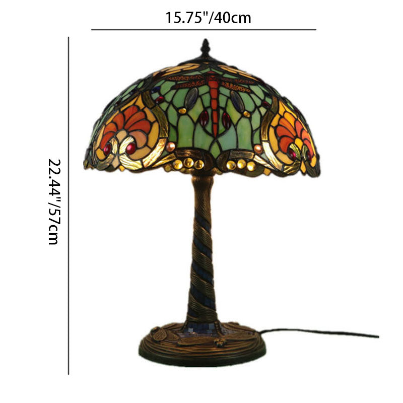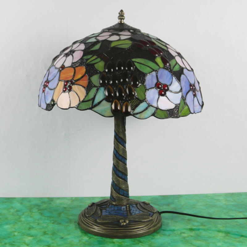 Traditional Tiffany Flower Decor Stained Glass Dome 2-Light Table Lamp For Bedroom