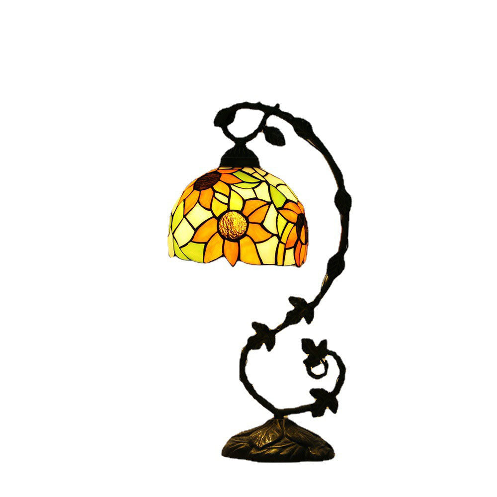 Traditional Tiffany Half Round Flower Vine Resin Stained Glass 1 Light Table Lamp For Bedroom