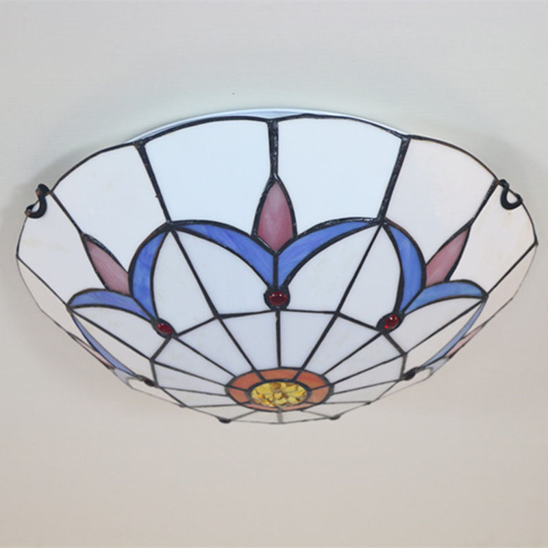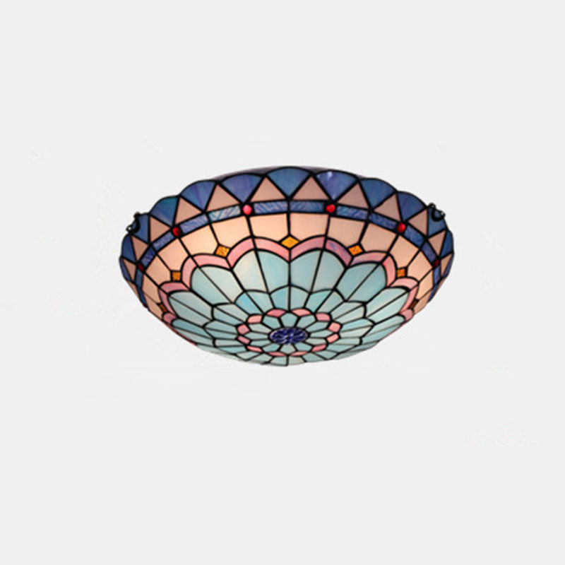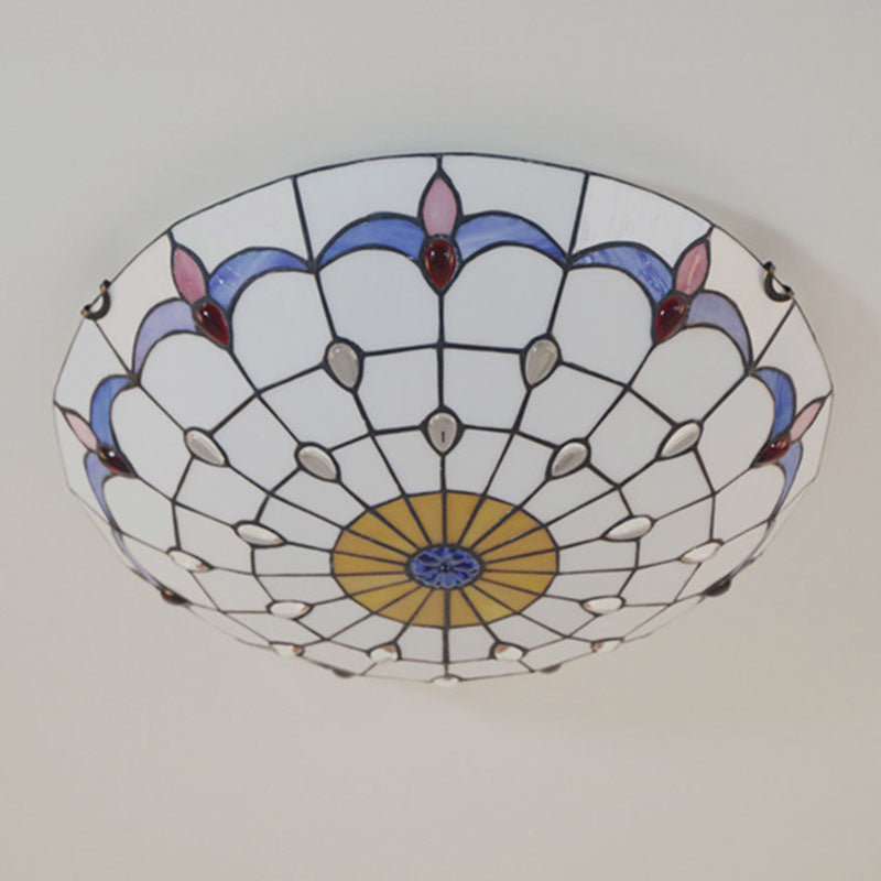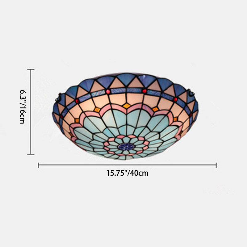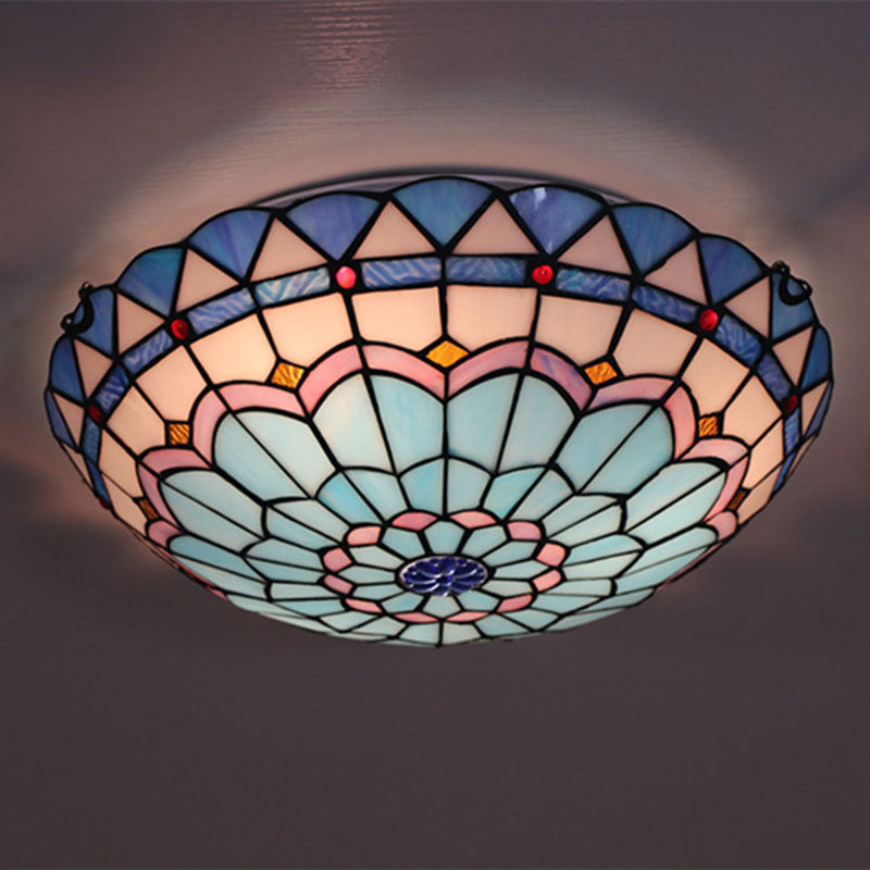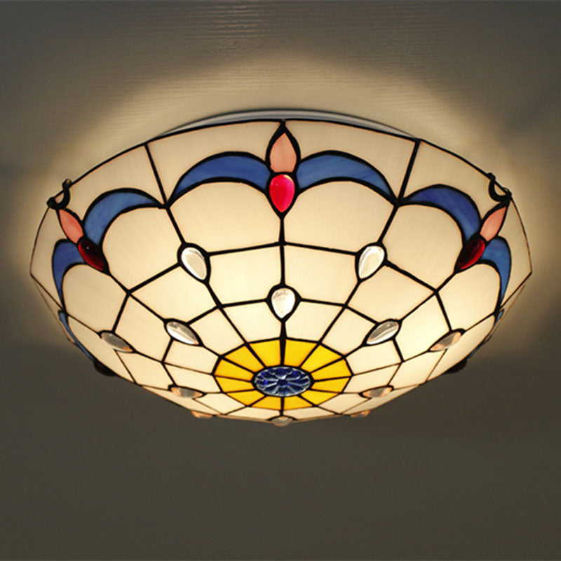 Traditional Tiffany Mediterranean Round Stained Glass 3-Light Flush Mount Ceiling Light For Living Room