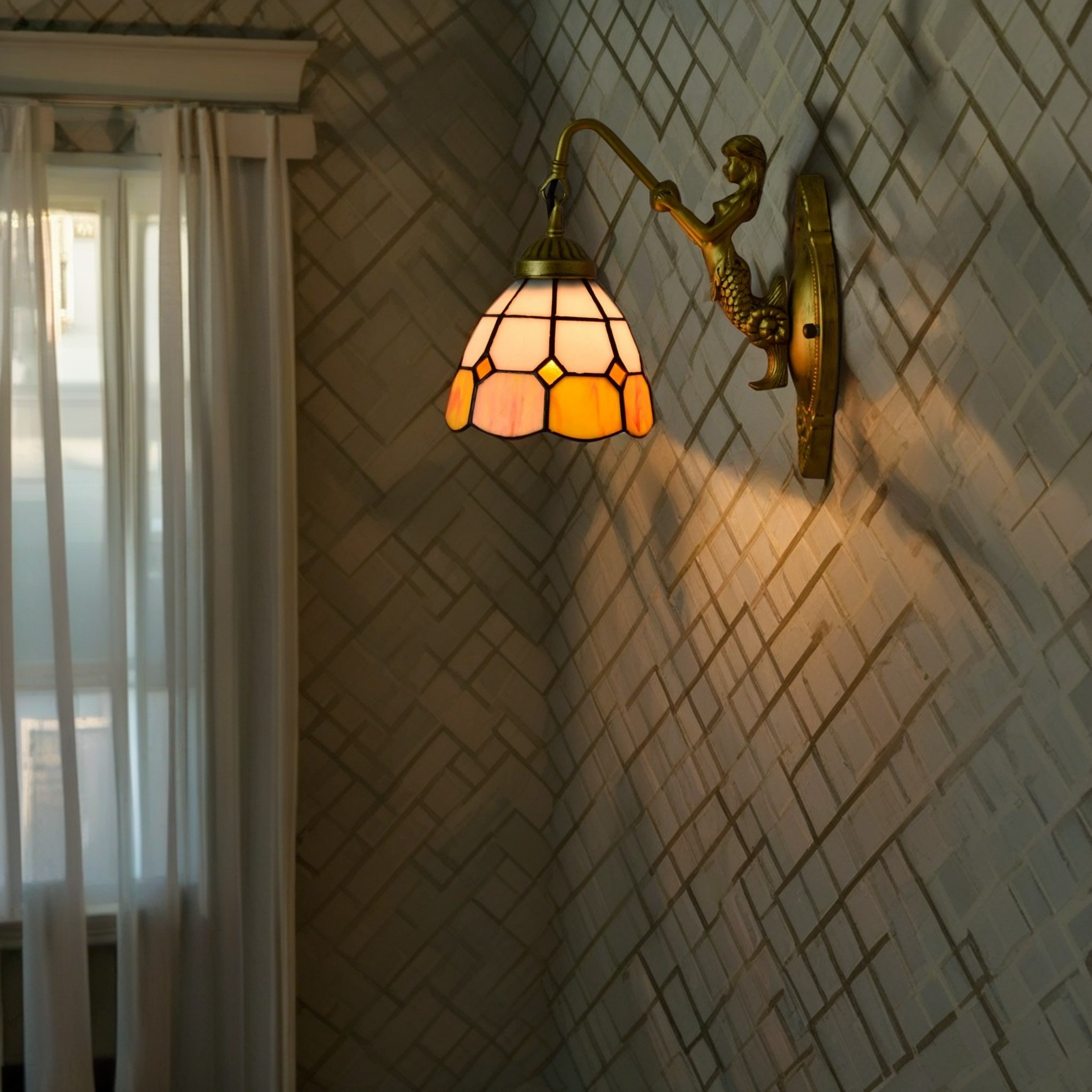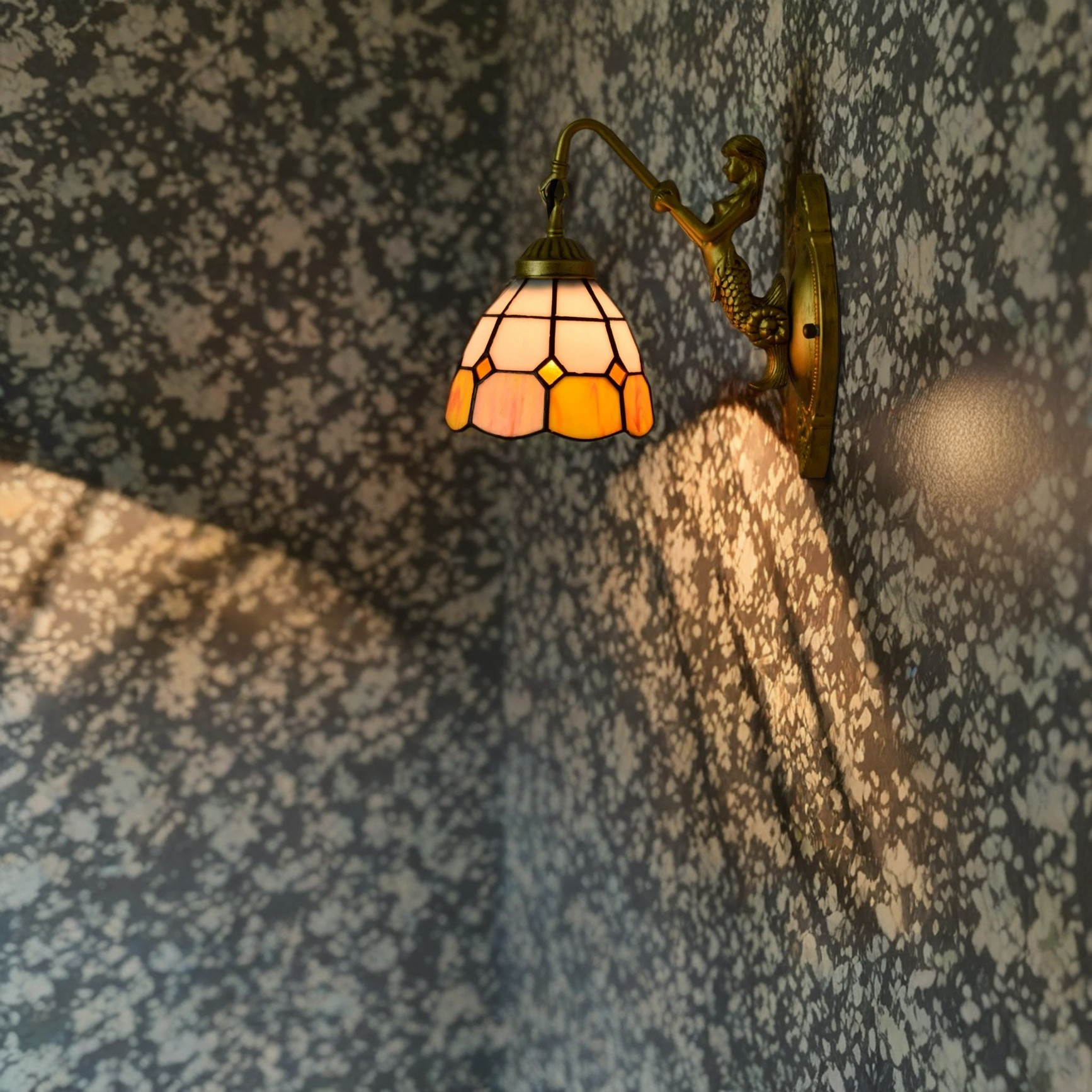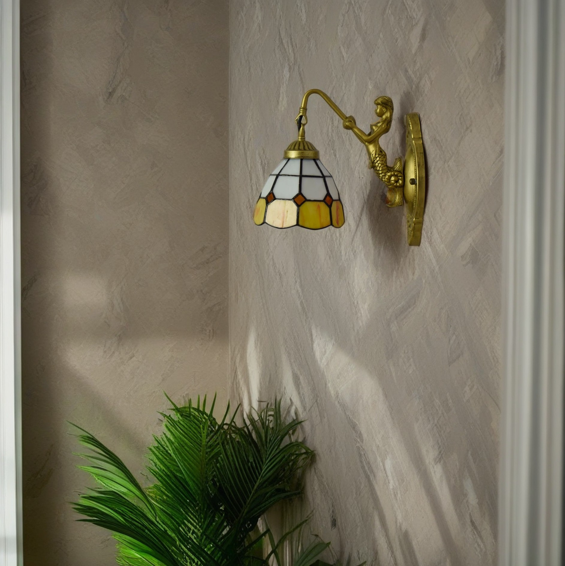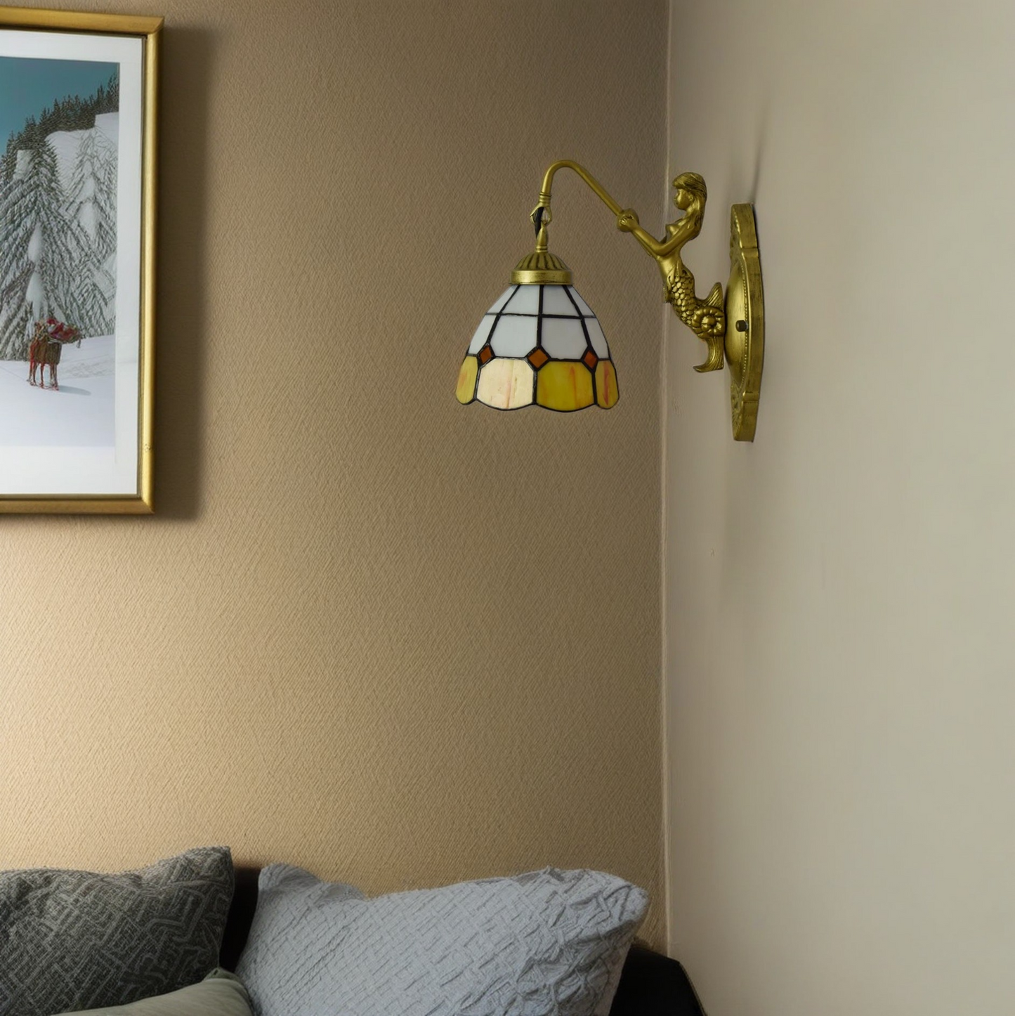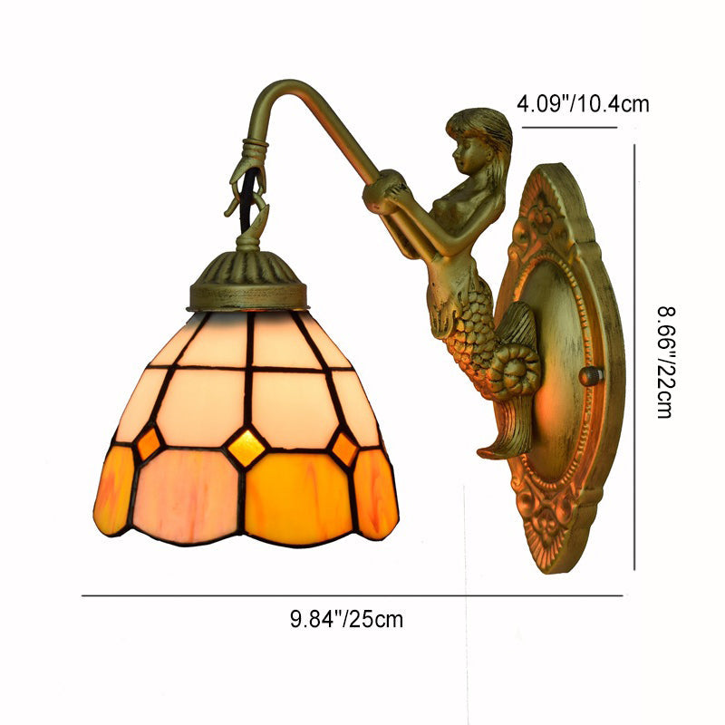 Traditional Tiffany Mermaid Hardware Glass 1-Light Wall Sconce Lamp For Living Room