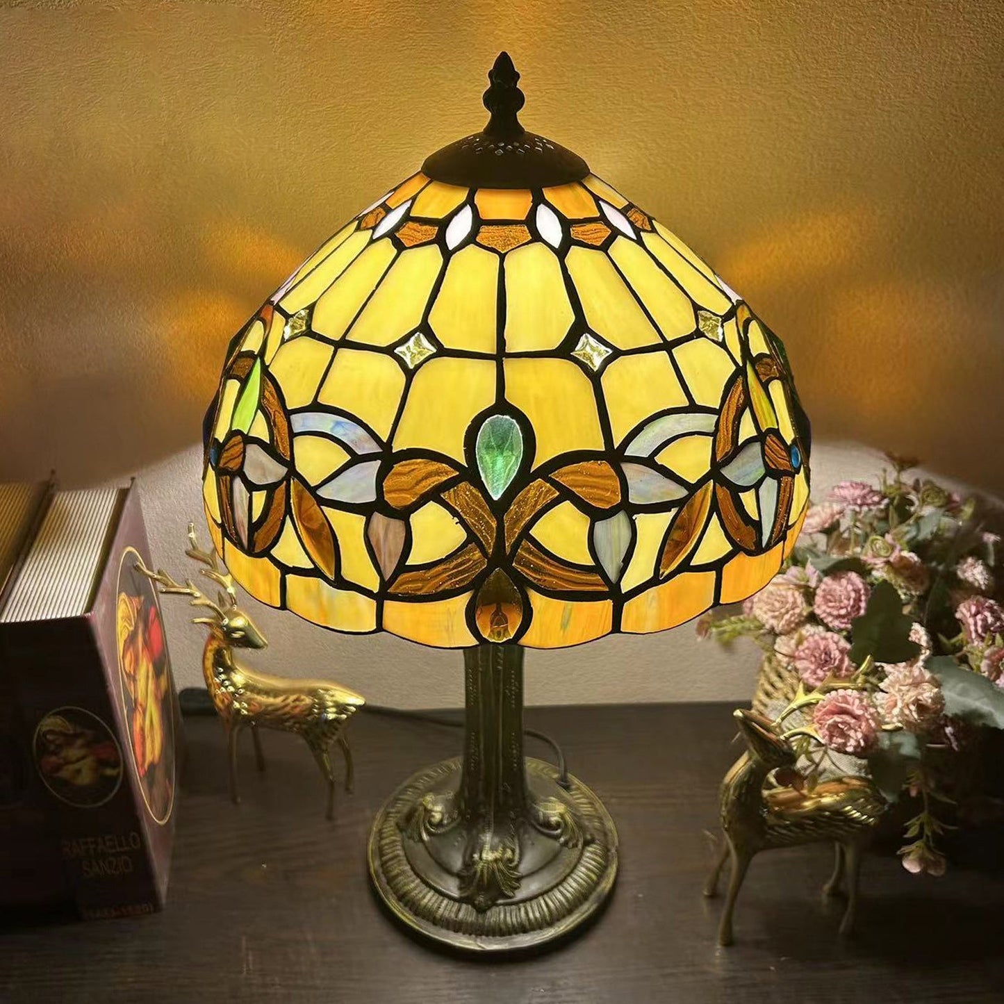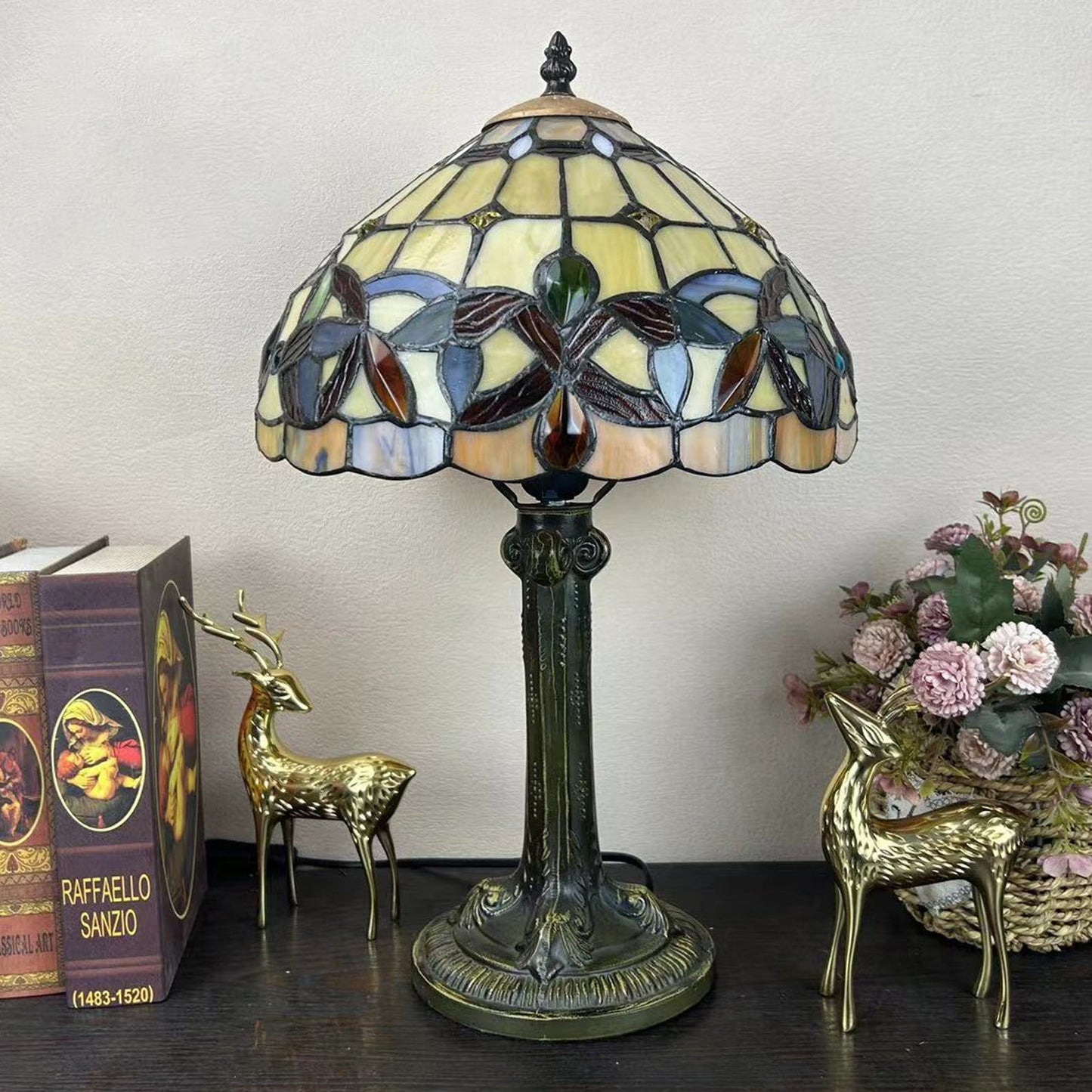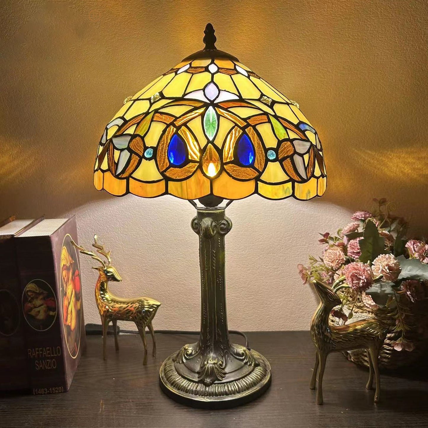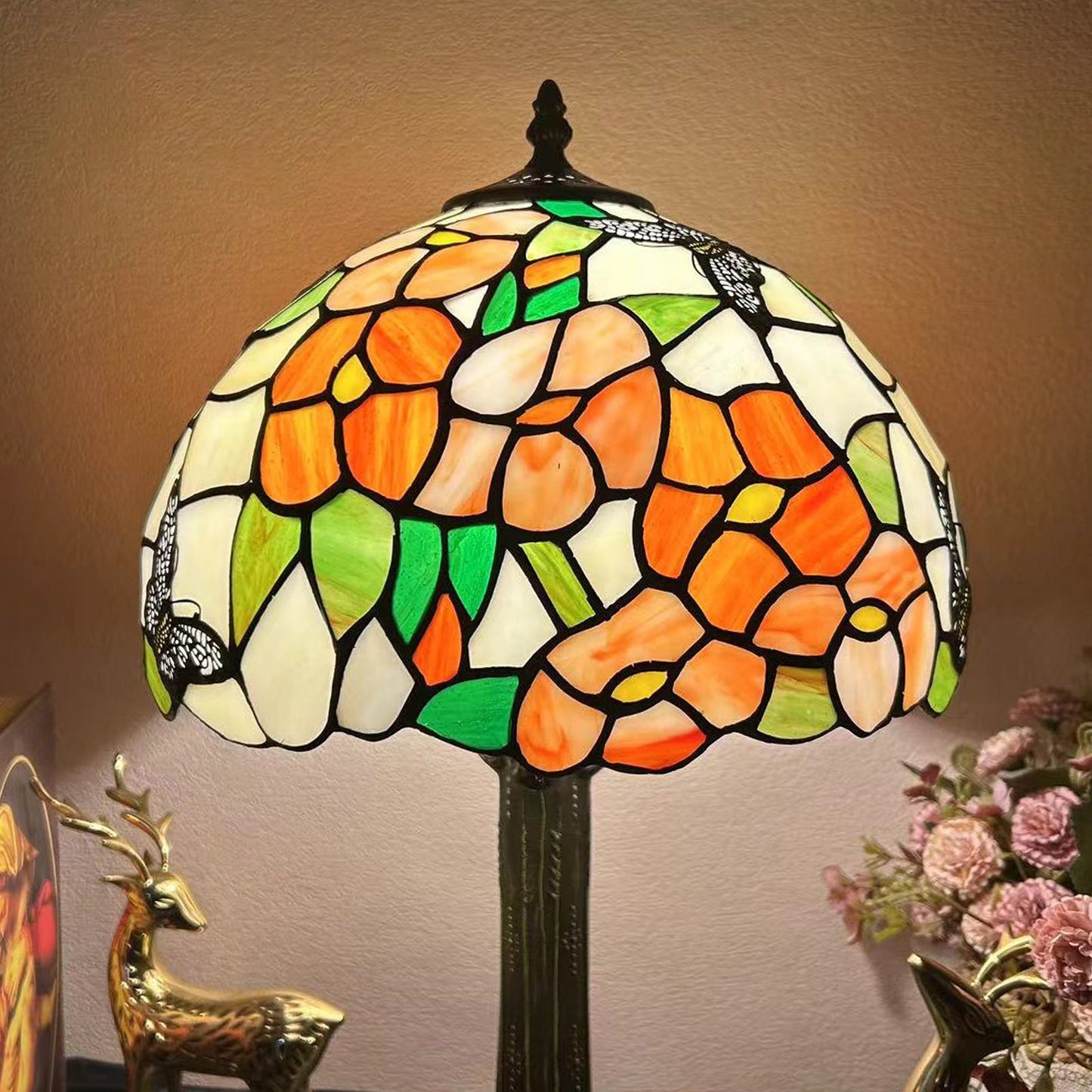 Traditional Tiffany Metal Hardware Glass Semicircular Dragonfly Flower Water Drop 1-Light Table Lamp For Bedroom