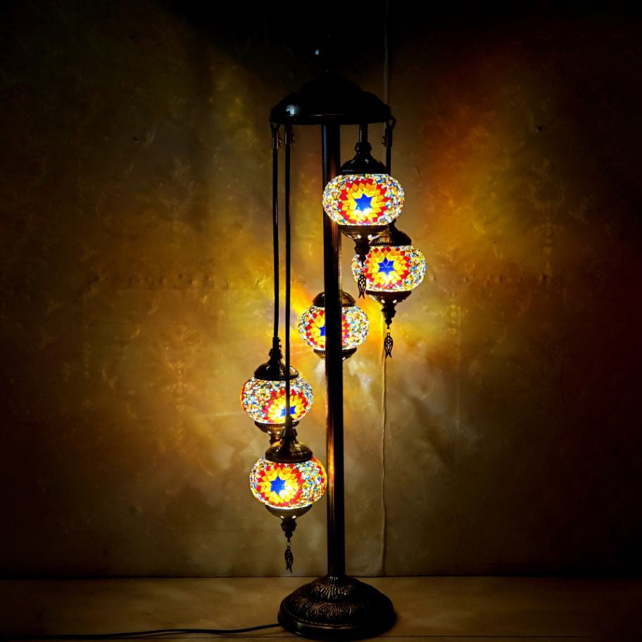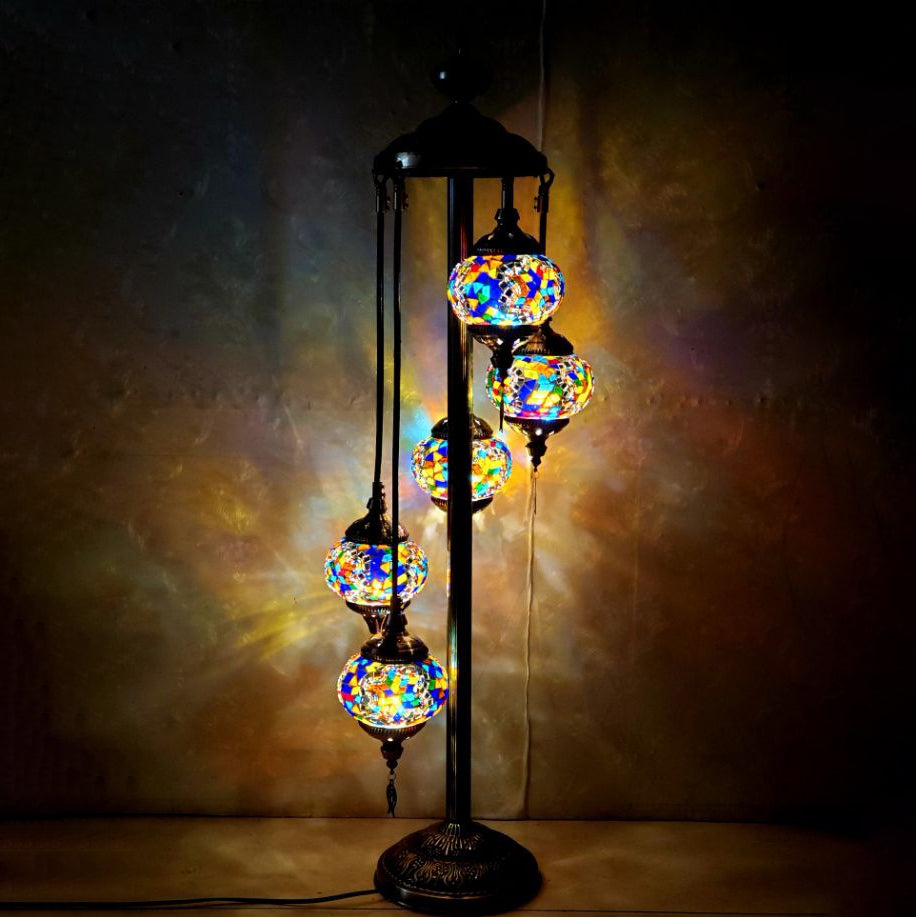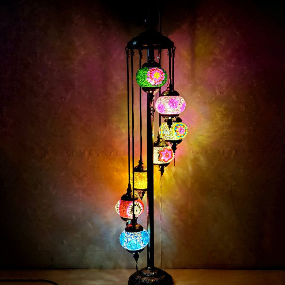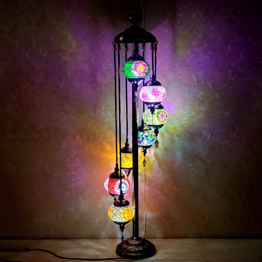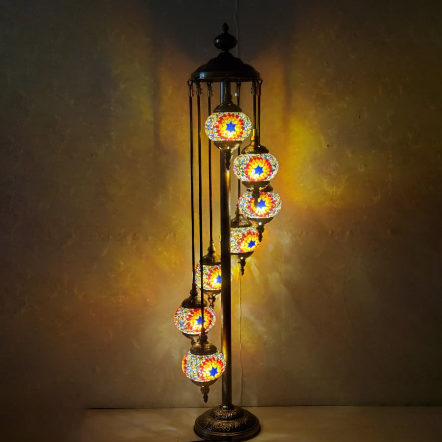 Traditional Tiffany Oval Ball Iron Stained Glass 5/7 Light Standing Floor Lamp For Living Room