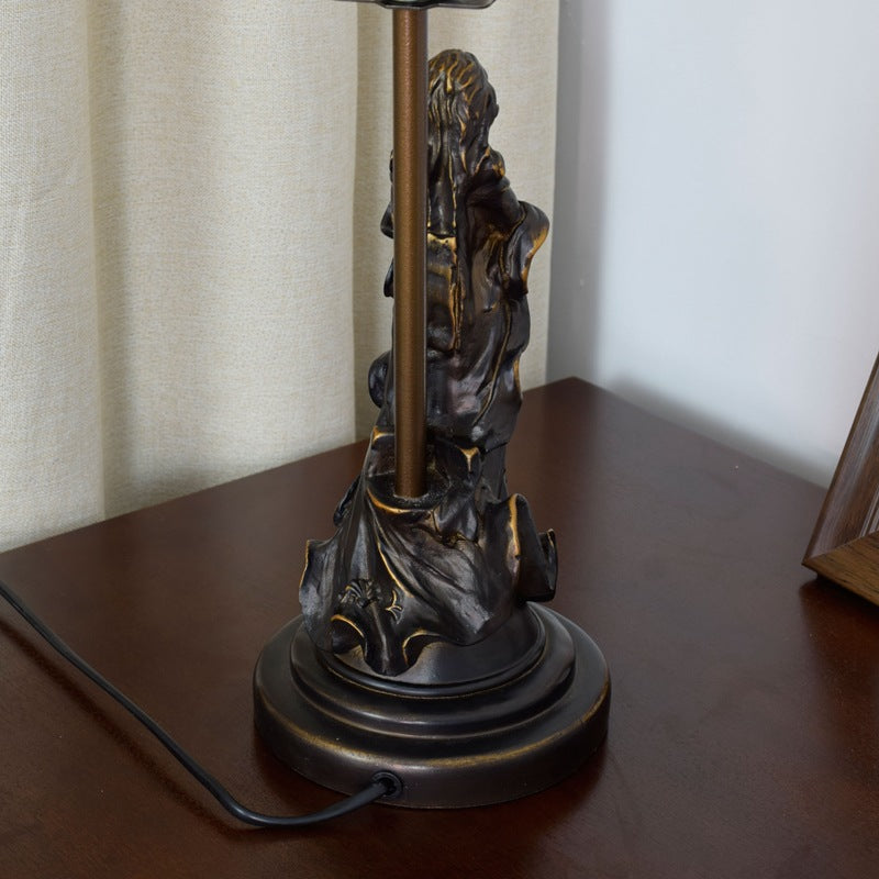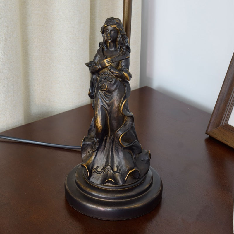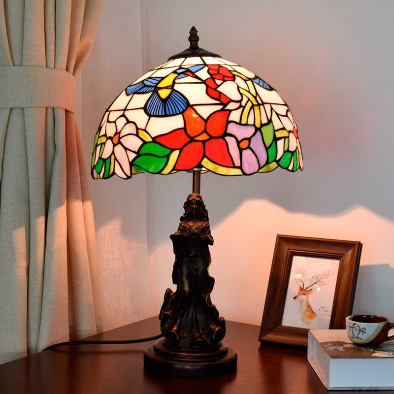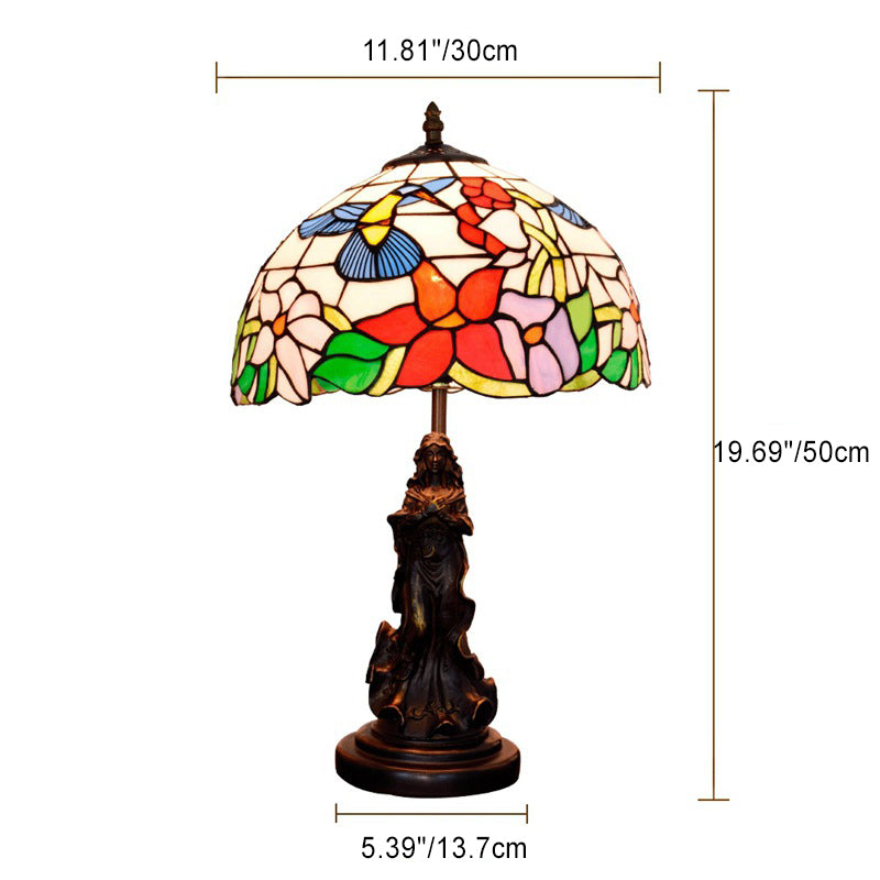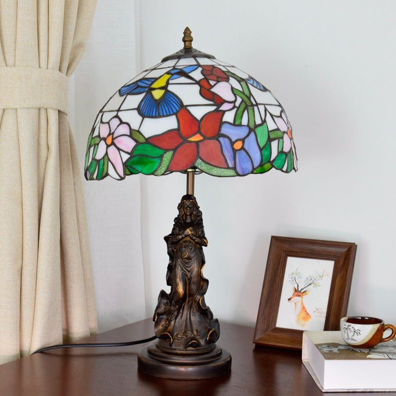 Traditional Tiffany Pastoral Bird Stained Glass Angel Resin Base 1-Light Table Lamp For Home Office