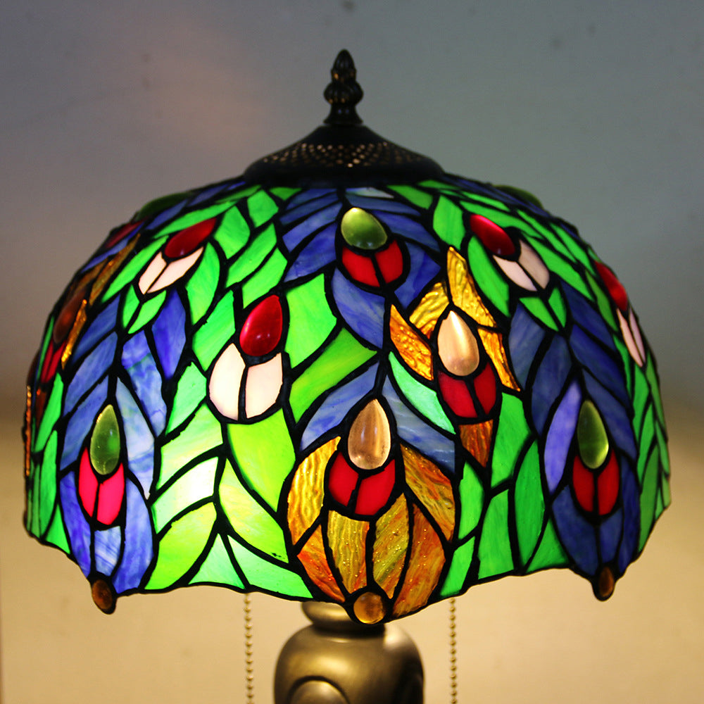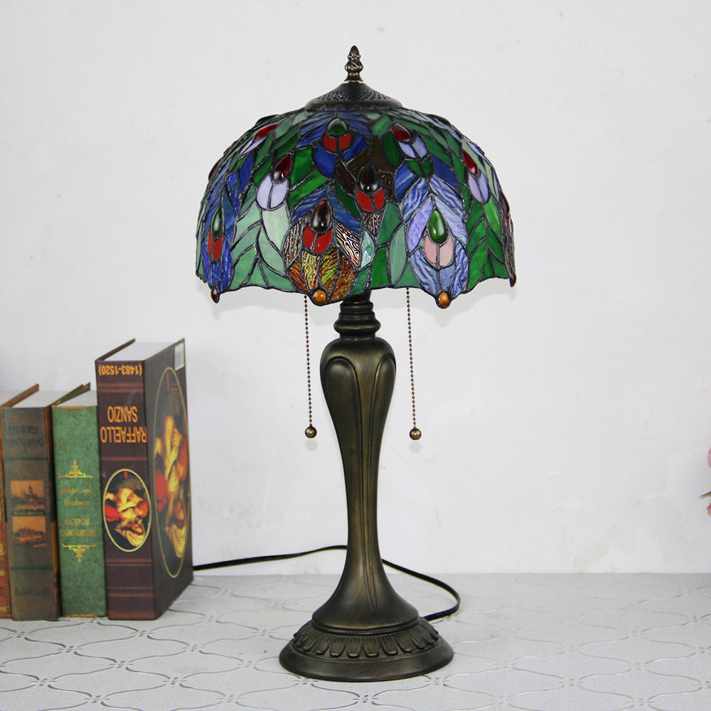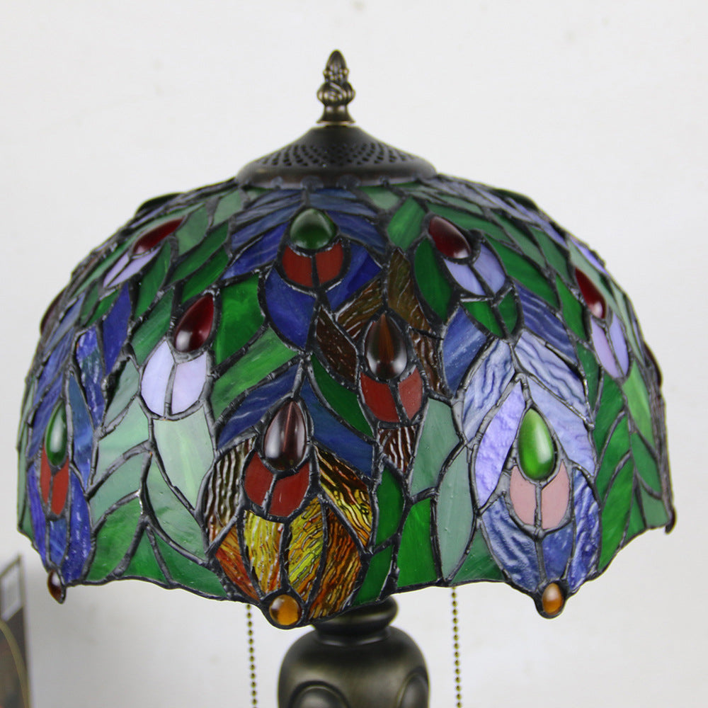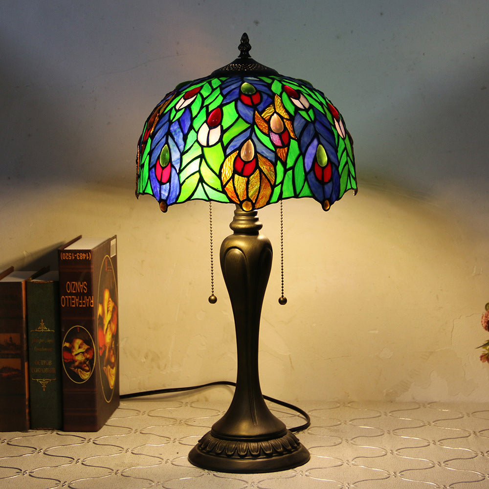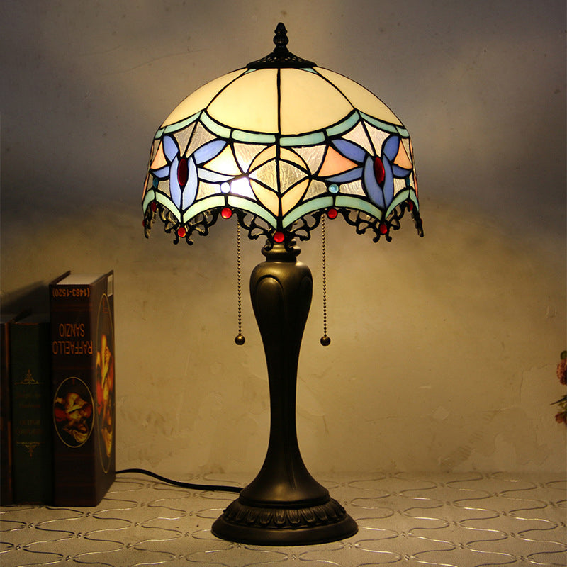 Traditional Tiffany Petal Glass Resin 1-Light Table Lamp For Living Room