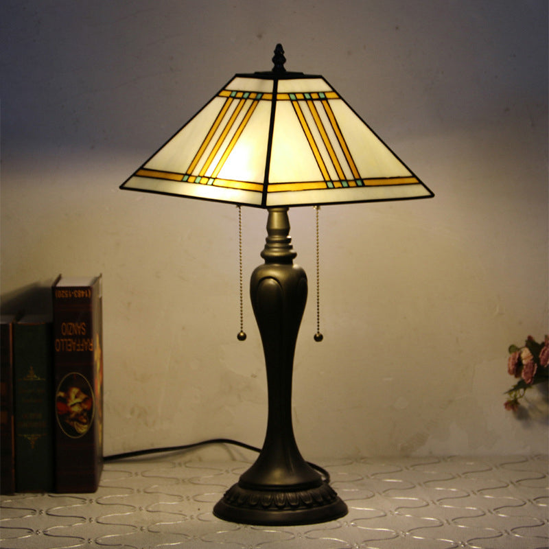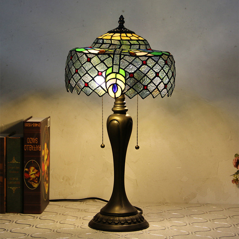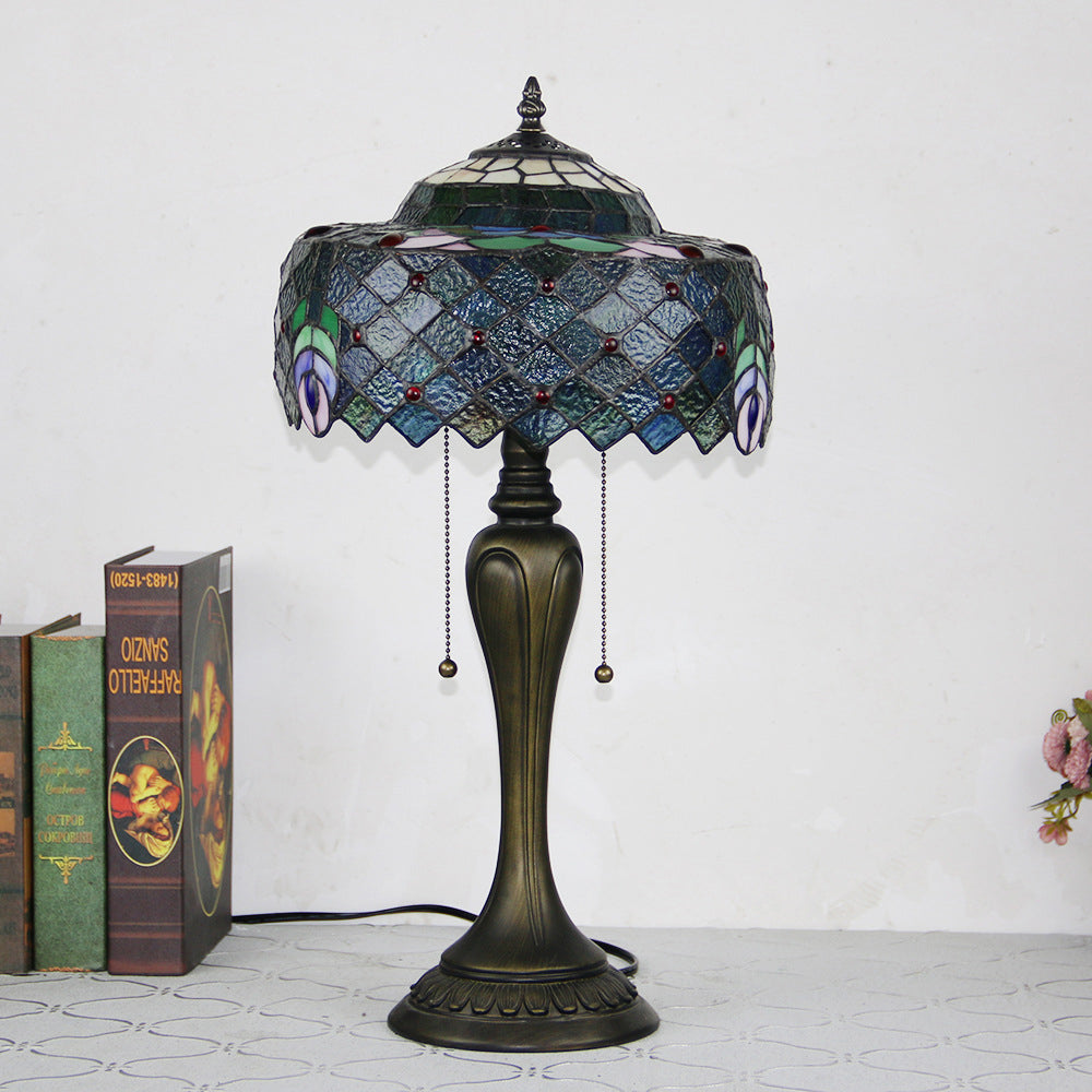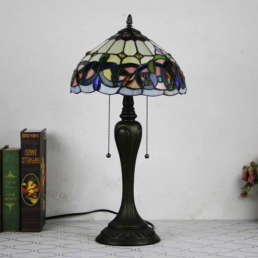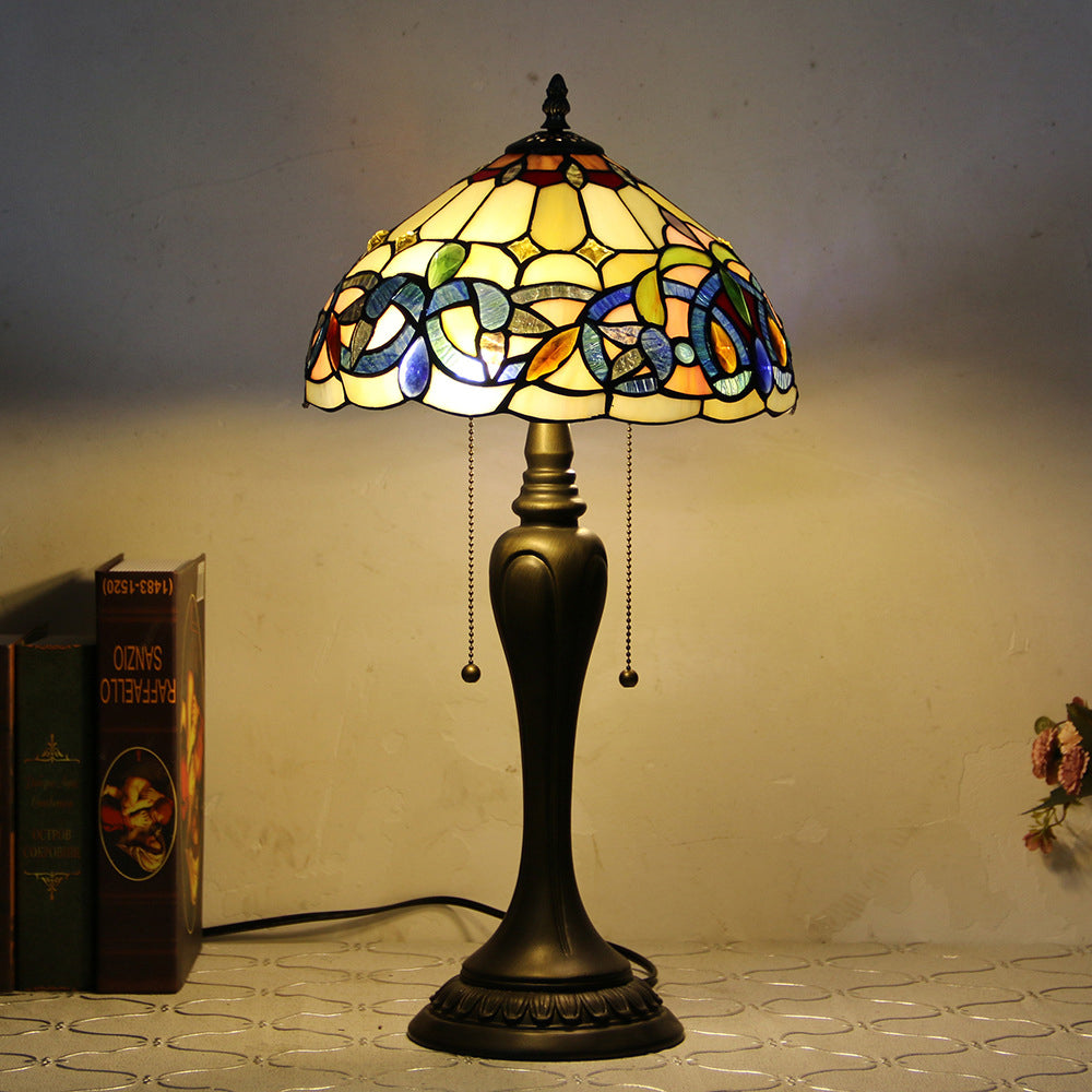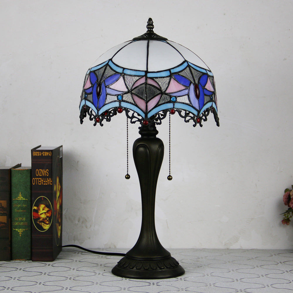 Traditional Tiffany Petal Glass Resin 1-Light Table Lamp For Living Room