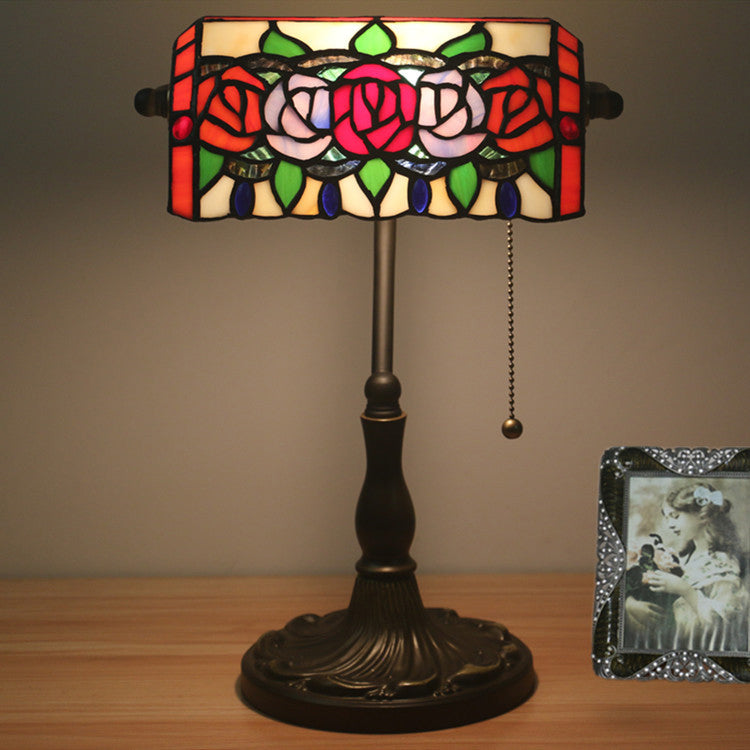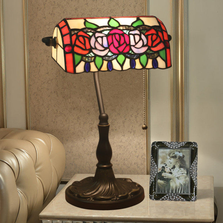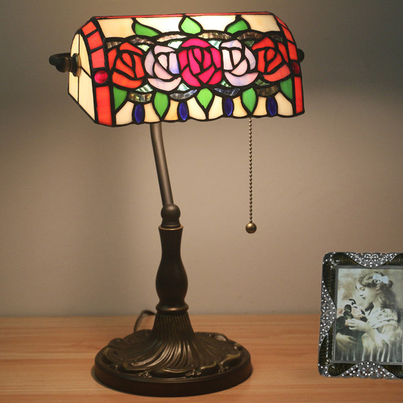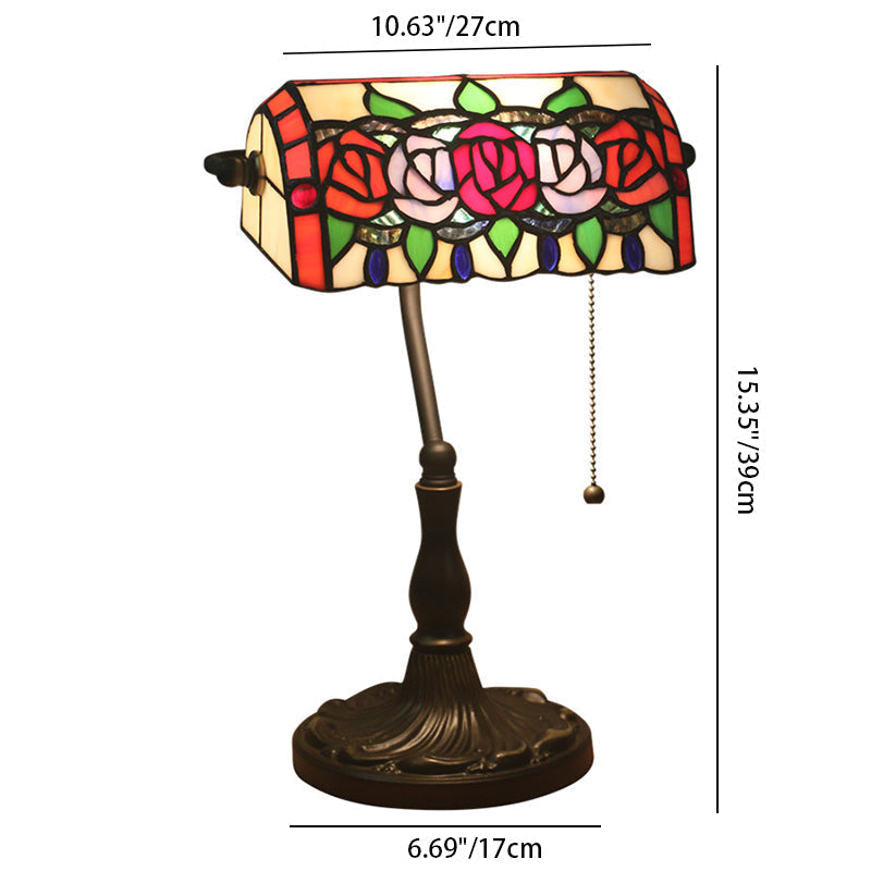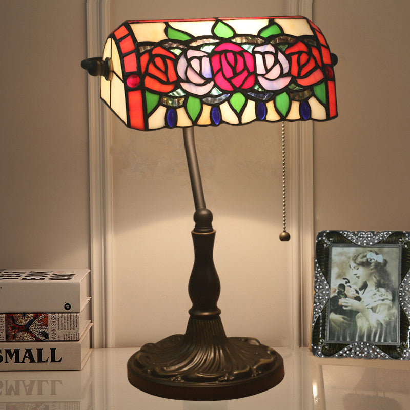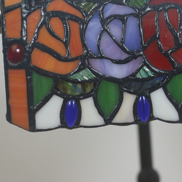 Traditional Tiffany Rectangle Rose Zinc Alloy Stained Glass 1-Light Table Lamp For Living Room