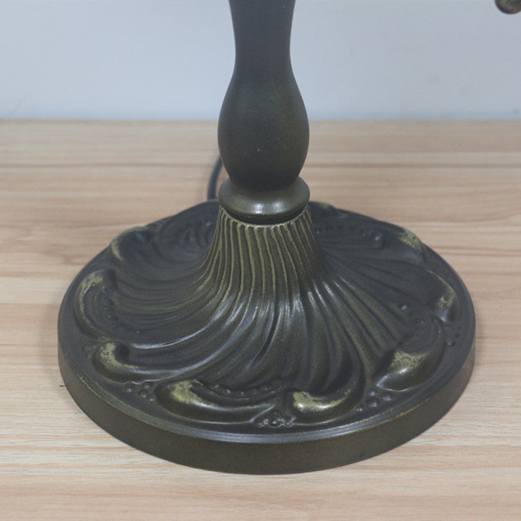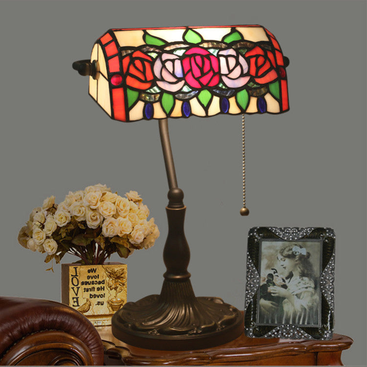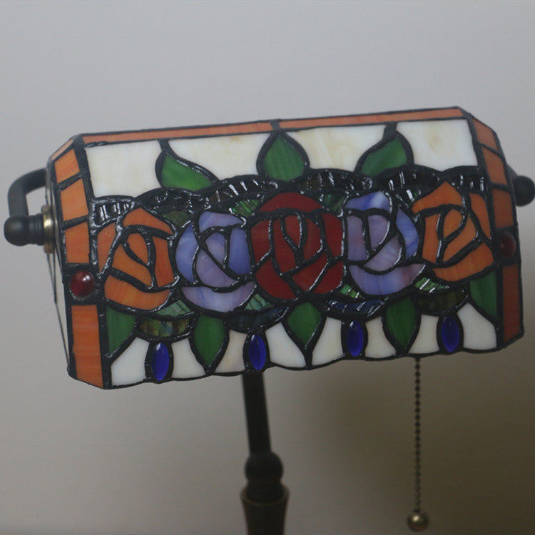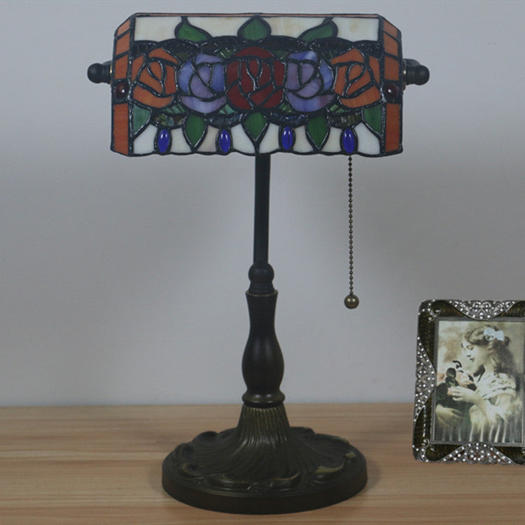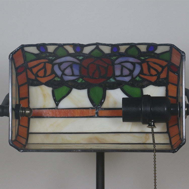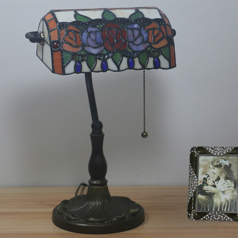 Traditional Tiffany Rectangle Rose Zinc Alloy Stained Glass 1-Light Table Lamp For Living Room