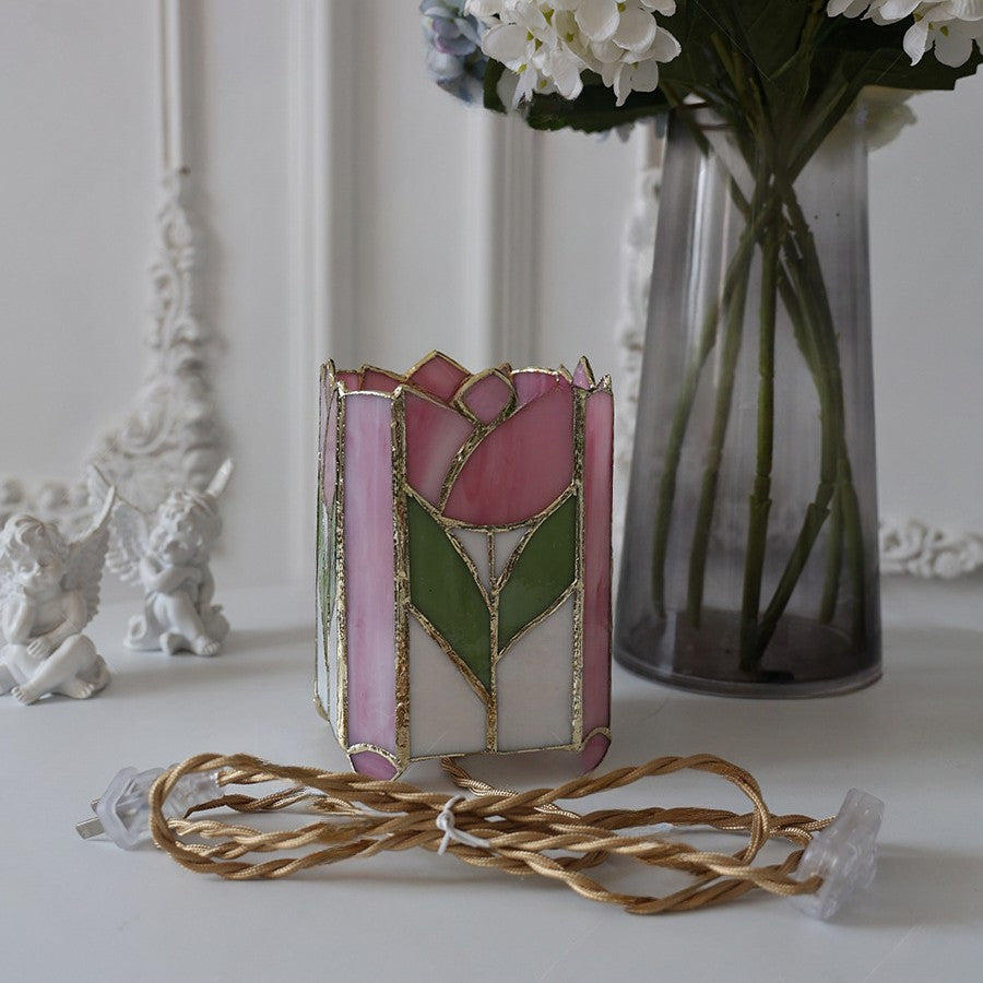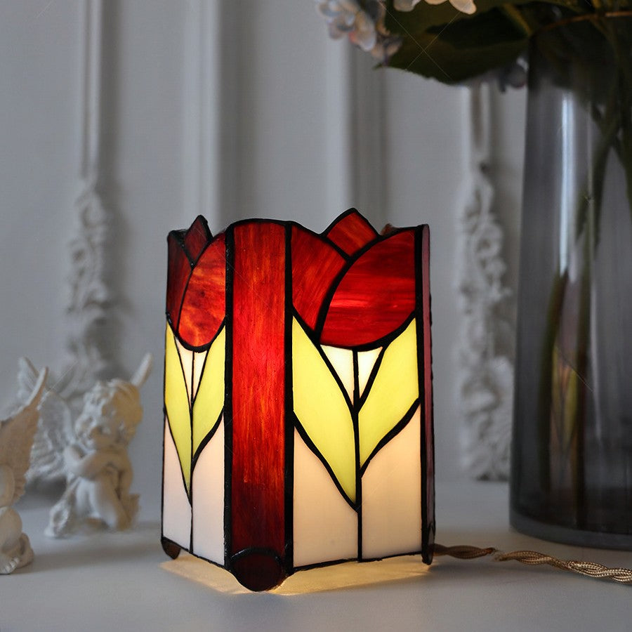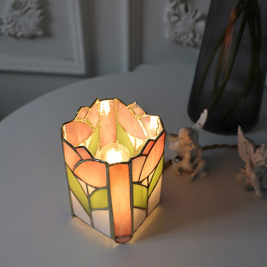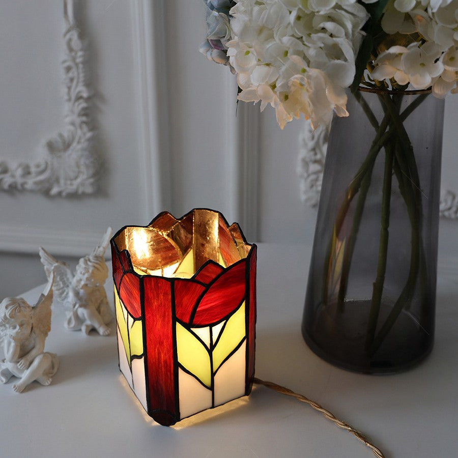 Traditional Tiffany Square Glass 1-Light Table Lamp For Bedroom