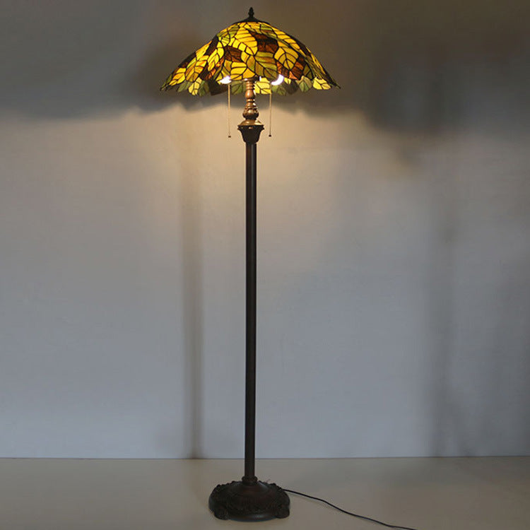 Traditional Tiffany Stained Glass Alloy 2-Light Standing Floor Lamp For Bedroom