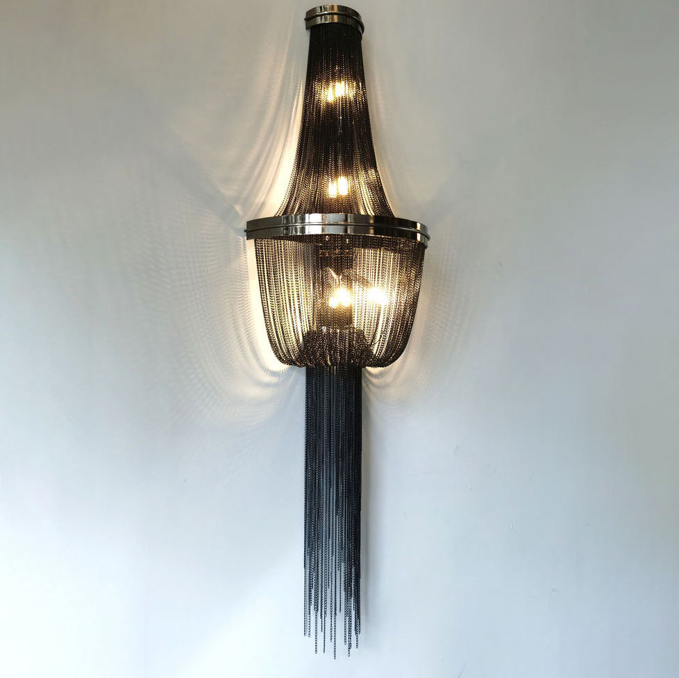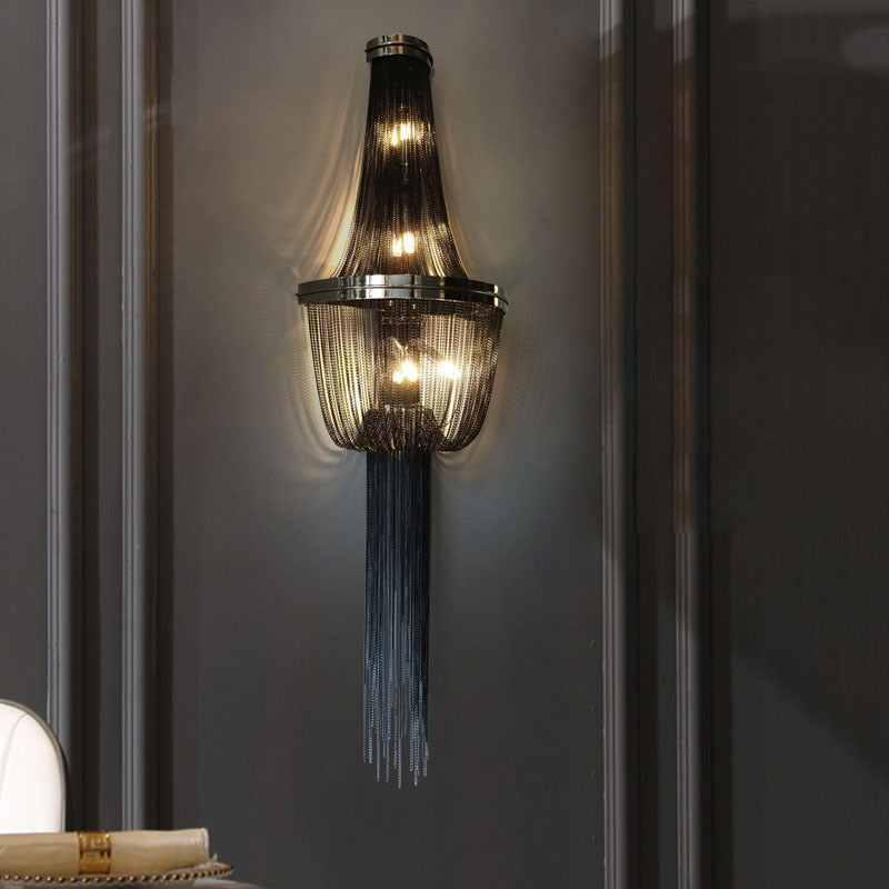 Traditional Vintage Aluminum Iron Tassel Sprocket 4-Light Wall Sconce Lamp For Living Room