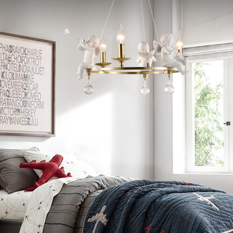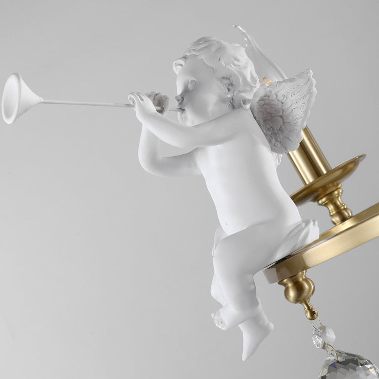 Traditional Vintage Angel Candle Crystal Round ABS Copper 3/6/8 Light Chandelier For Living Room